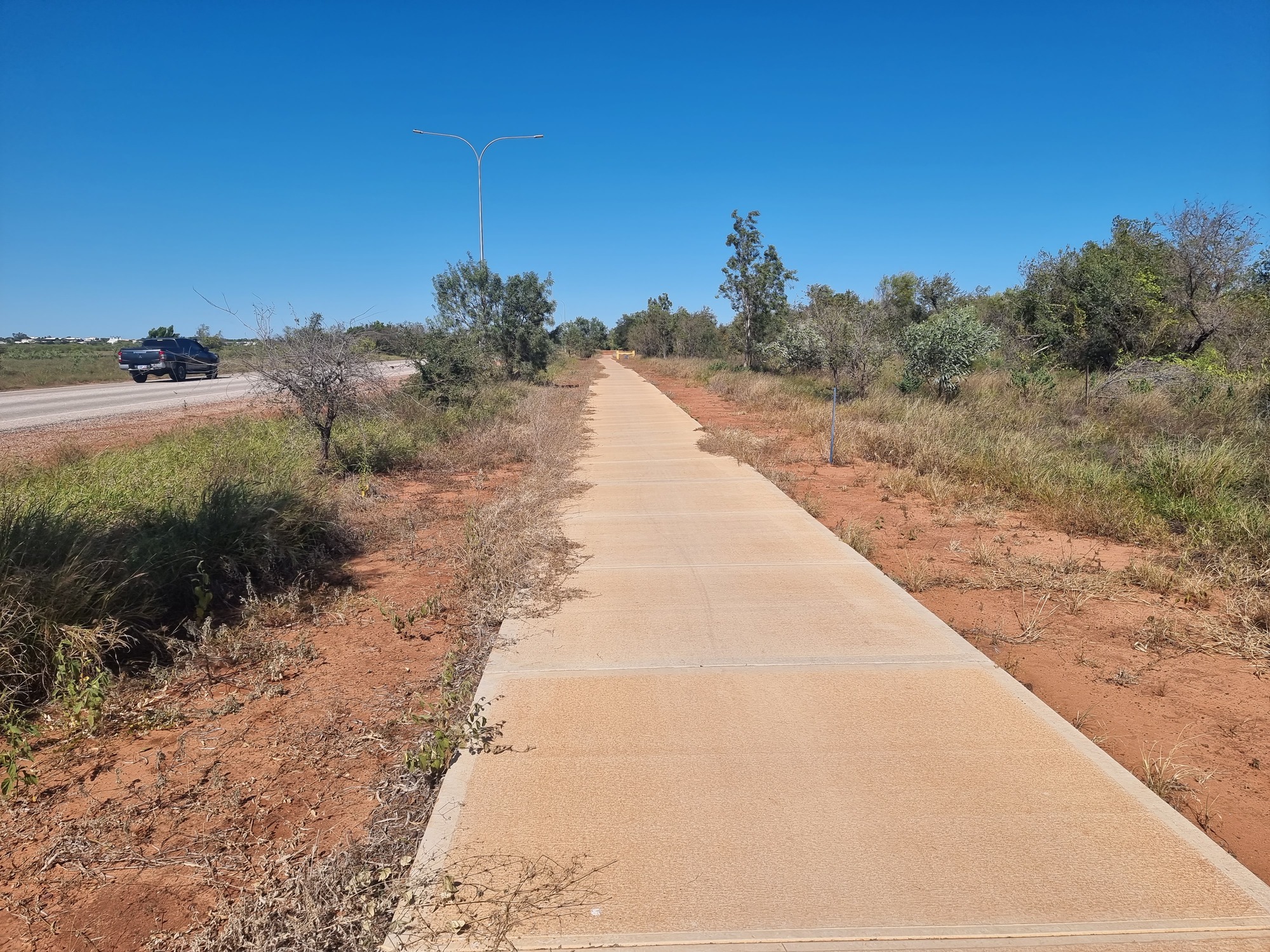 Most of the streets in Broome are narrow without any shoulder.