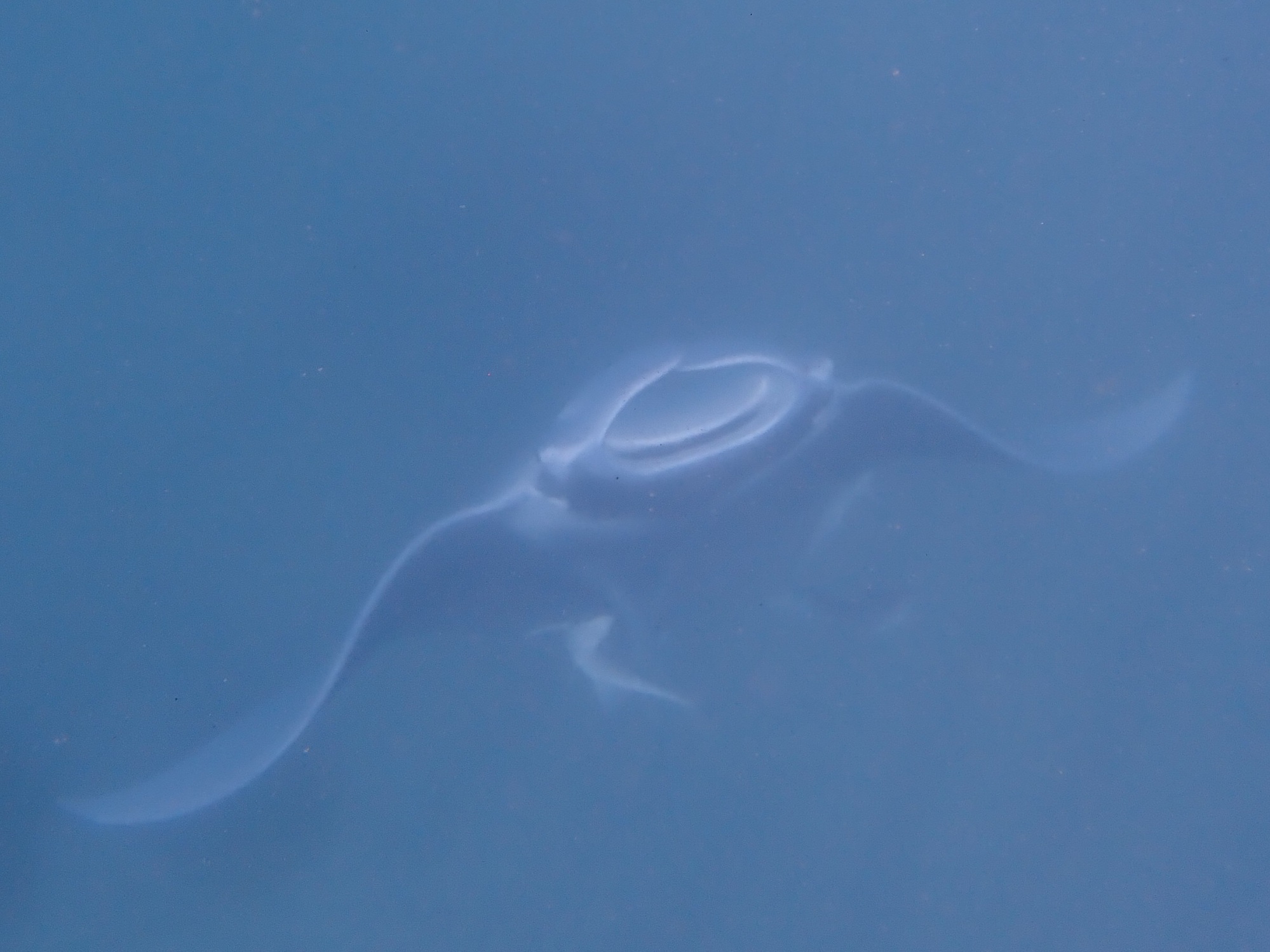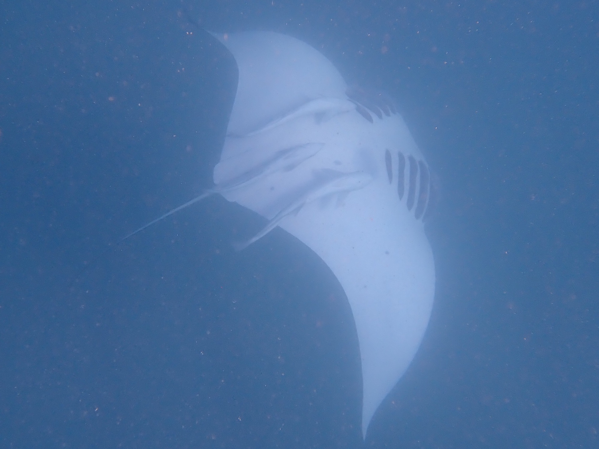 The manta was about 4 metres across. In the open ocean they may be 8 metres across.