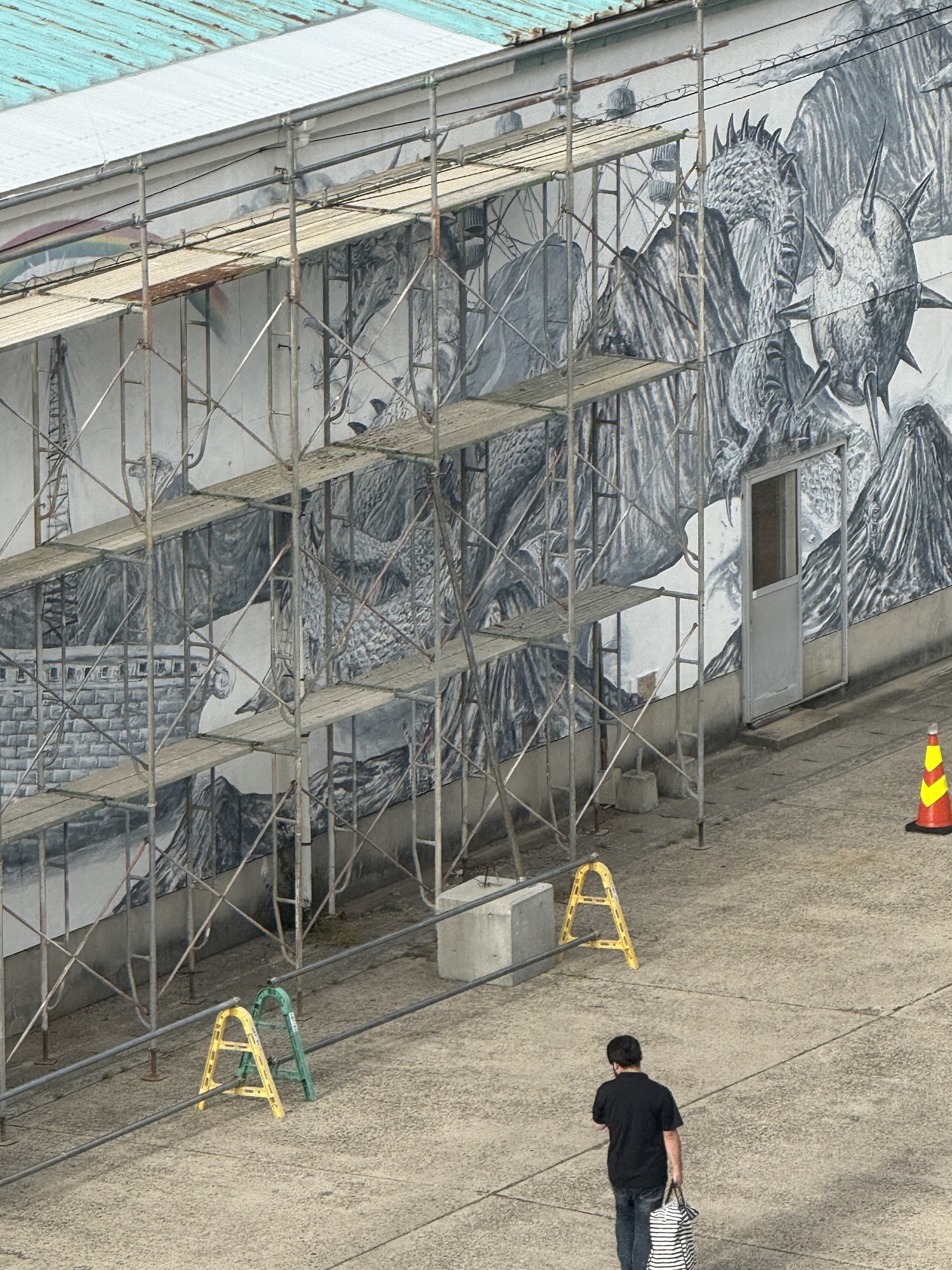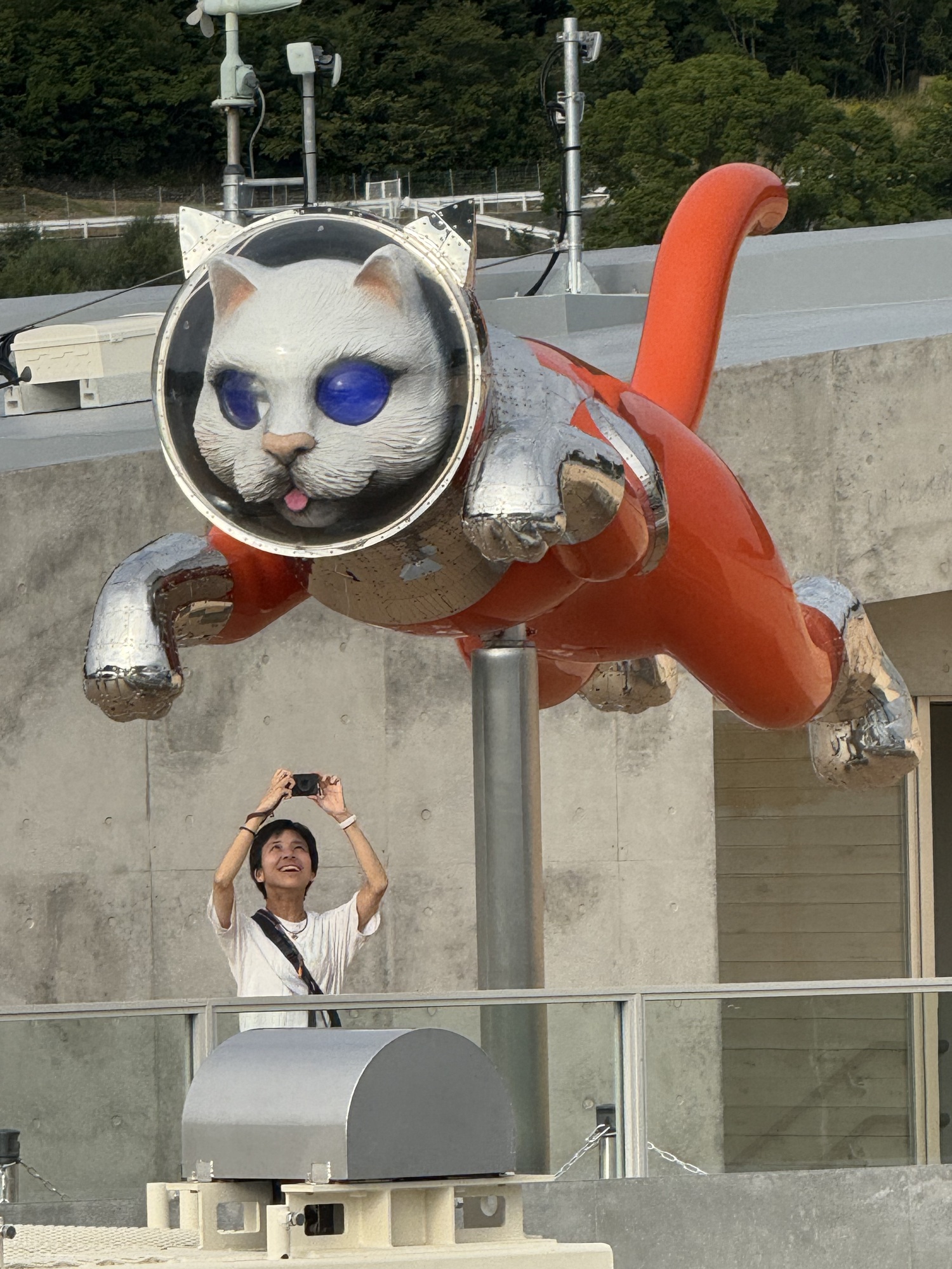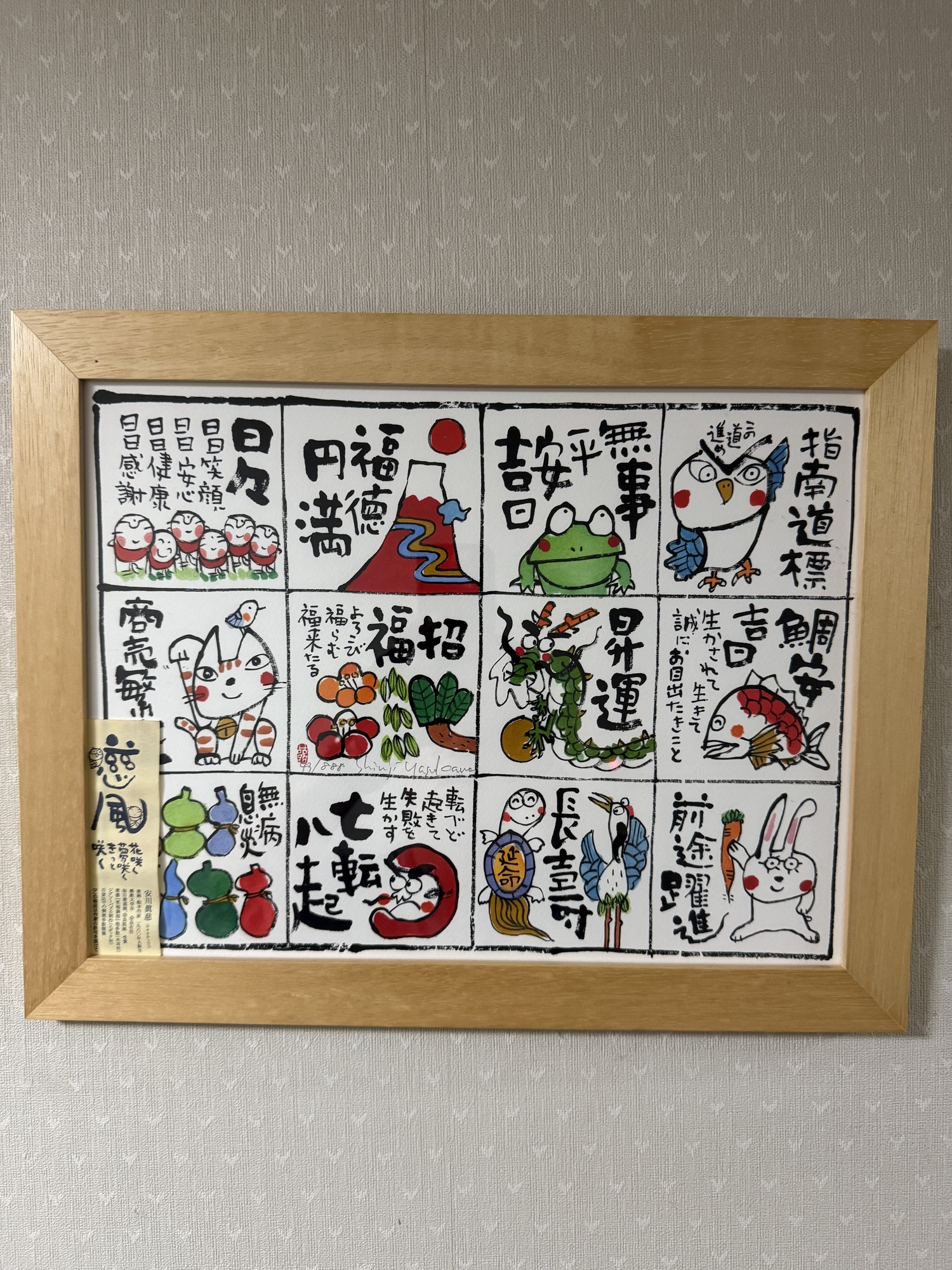 Every year, we buy a calendar in Japan with artwork by Hajime. We love his artwork, especially his quirky drawings of cats. This framed piece, in the hallway of the Ryokan, is not by Hajime, but it is very similar. It made us feel at home and welcome.