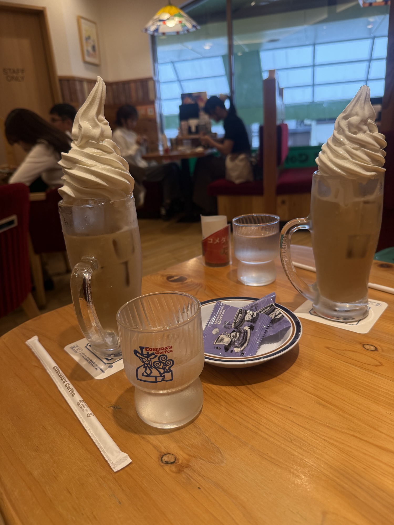 Our treat of the day at Komeda was a cold coffee/ice cream concoction with cookies. They cleverly place ice cubes below the ice cream so that it doesn’t melt.