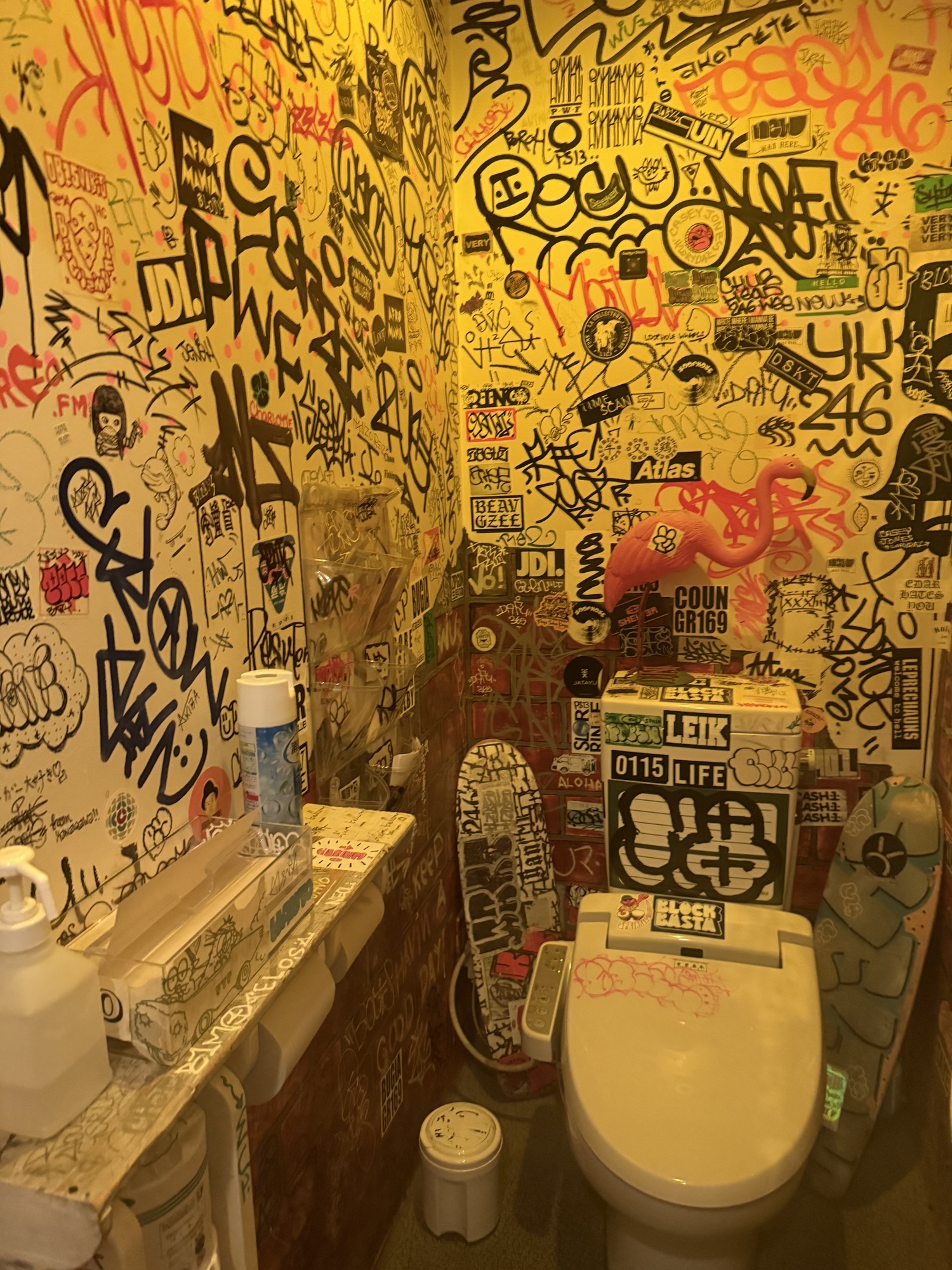 The bathroom at the cafe is where the fellows who own it really express their creativity, complete with skateboards. One doesn’t need a book to read in the bathroom…all the entertainment is provided on the walls.