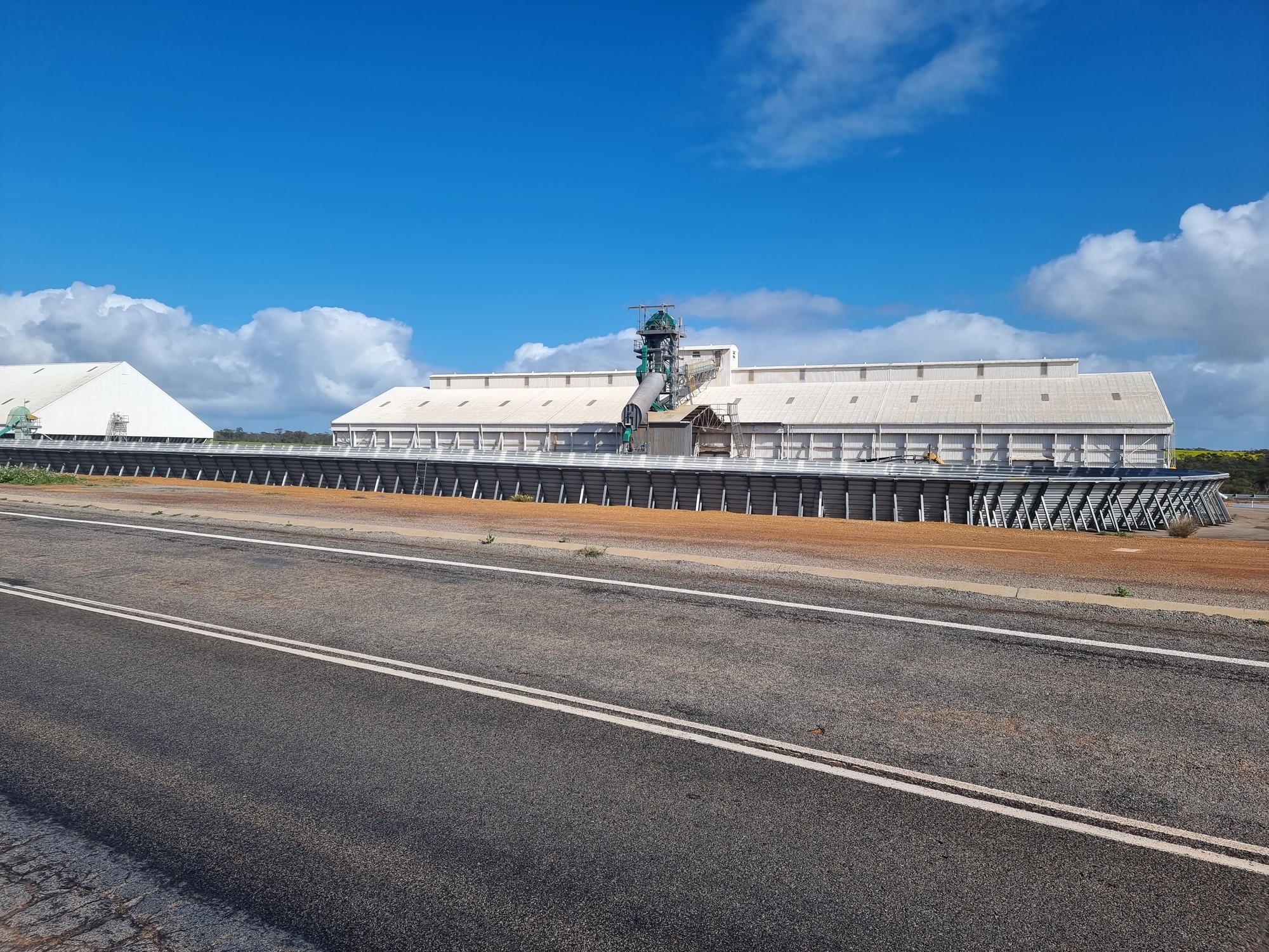 In front of the silos is a fenced oval shaped enclosure. Perhaps this is to dry the grain?
