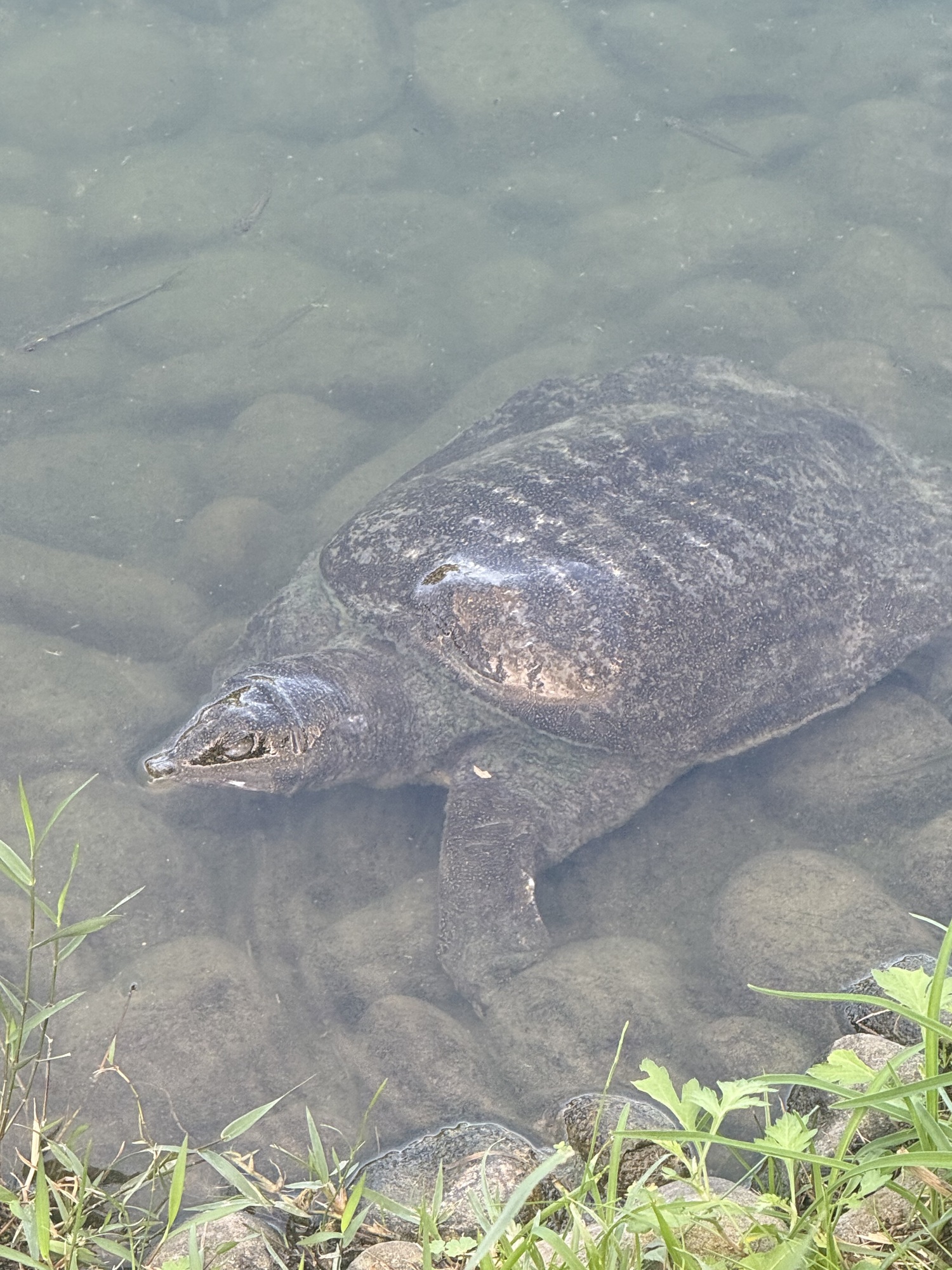 A happy turtle cruising around the pond on this humid day. There was a sign warning visitors not to touch the turtles as they would probably try to bite you.
