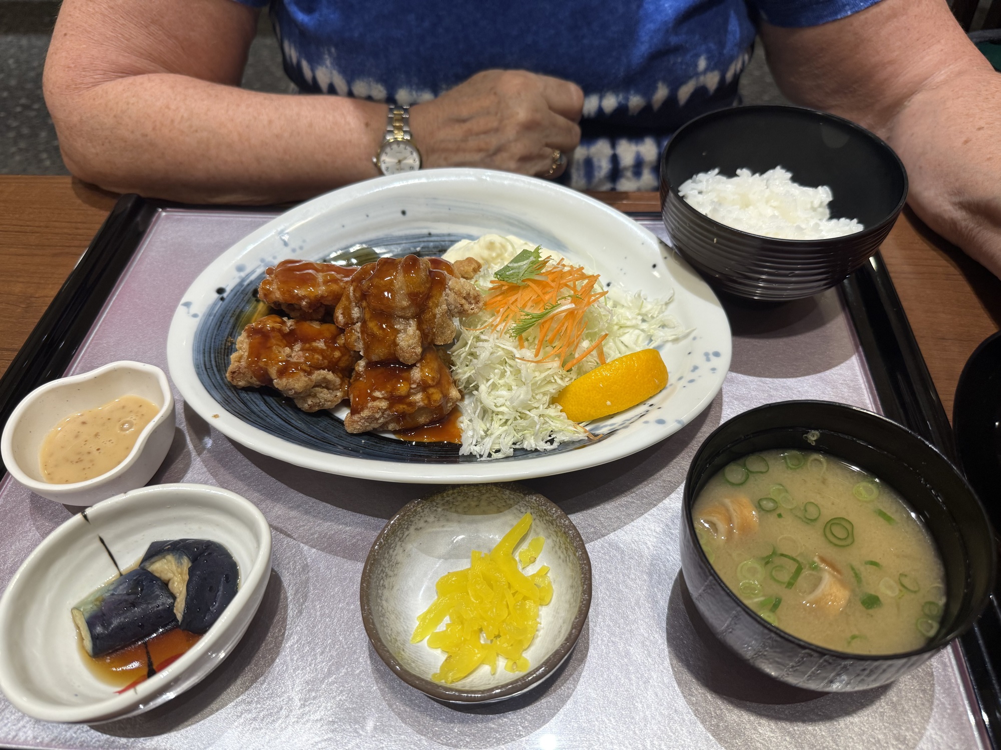We went for a stroll to check out the neighbourhood and had dinner. I can’t say what the restaurant is called as it is always in Japanese, but we liked it. It is a modest place with very good and reasonably priced food. Plus we benefitted from a senior discount! Barry had a delicious set meal. The chef really looked after us as we were struggling how to order the food on the provided iPad. It was completely in Japanese.