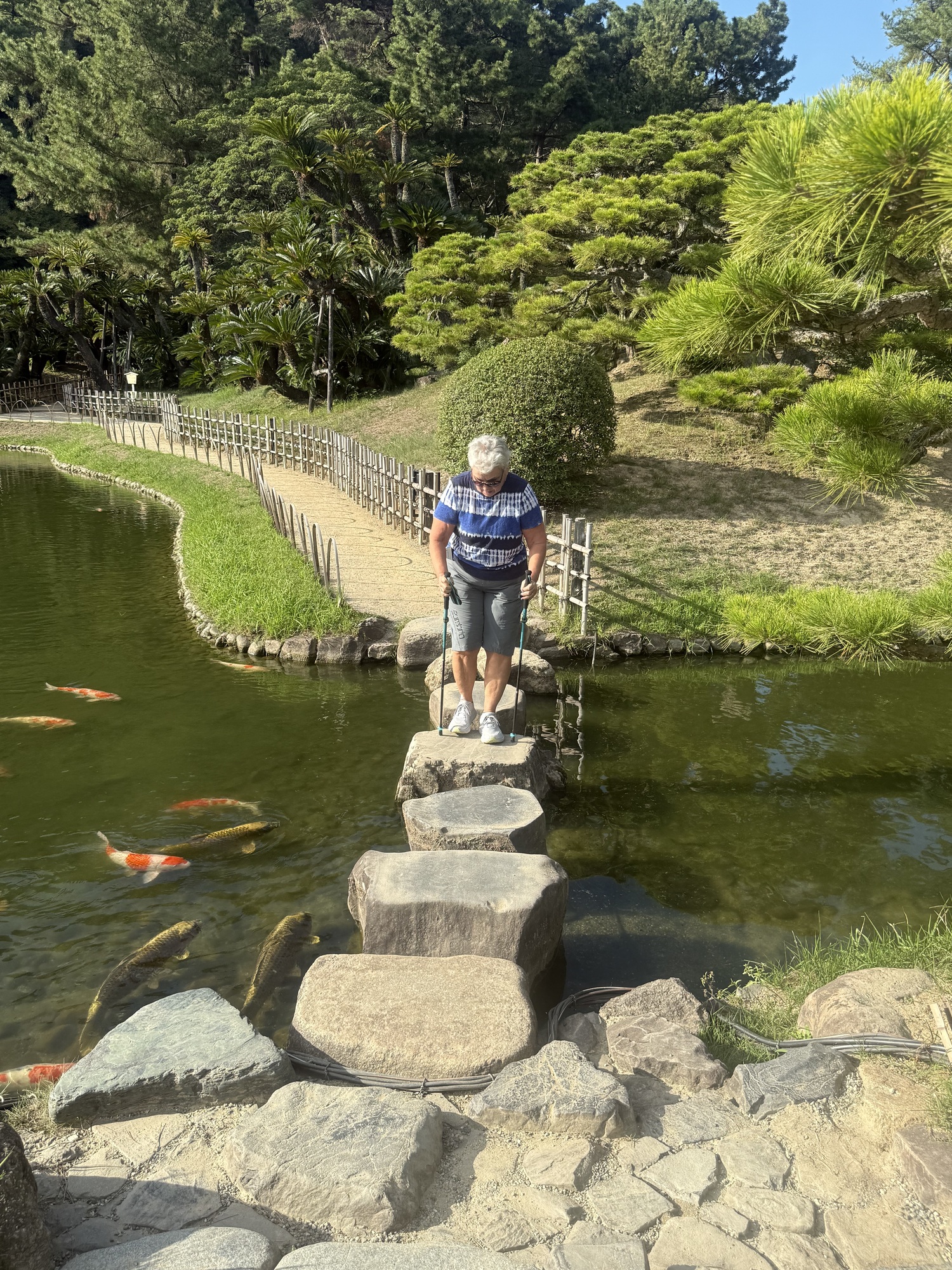 Barry had read about the Ritsurin Garden in Takamatsu. It is reputed to be one of the top 3 gardens in Japan. This is a high endorsement as Japan has many beautiful gardens. It is going to be a hot walk around this vast garden as it continues to be humid and is once again 30 degrees.