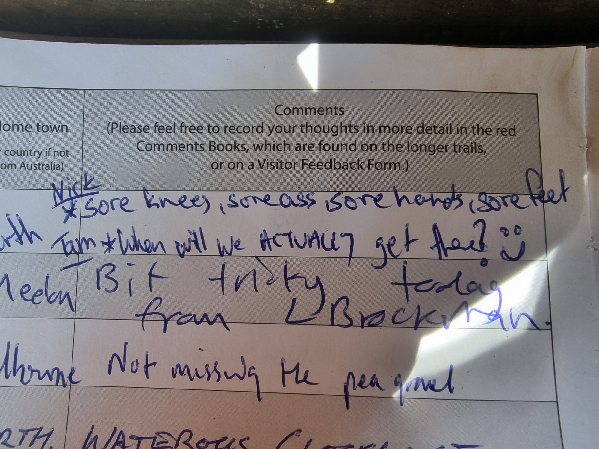 I must be the slowest person on the trail. The fastest couple noted in the book did 150kms in a day. Wow!