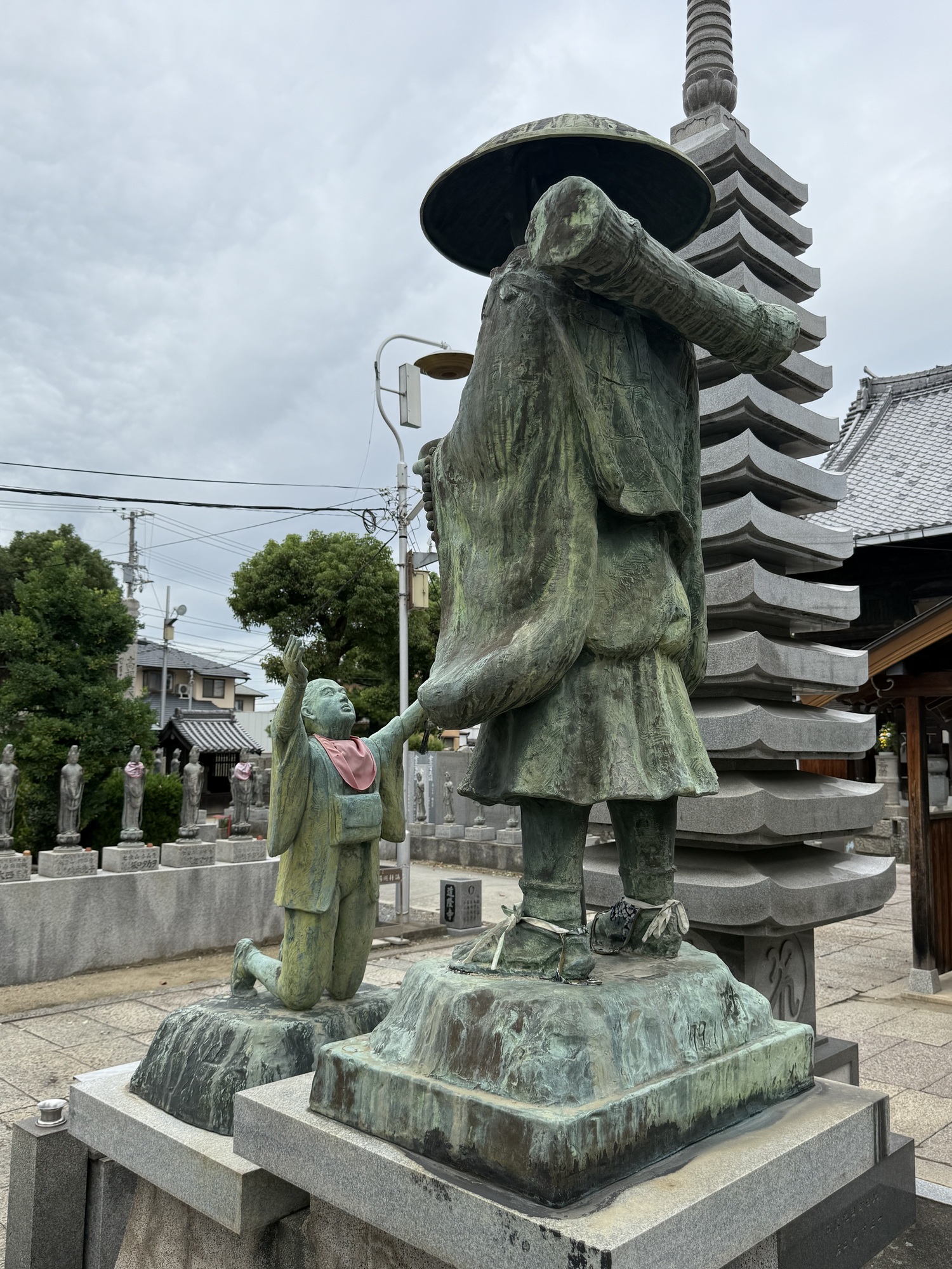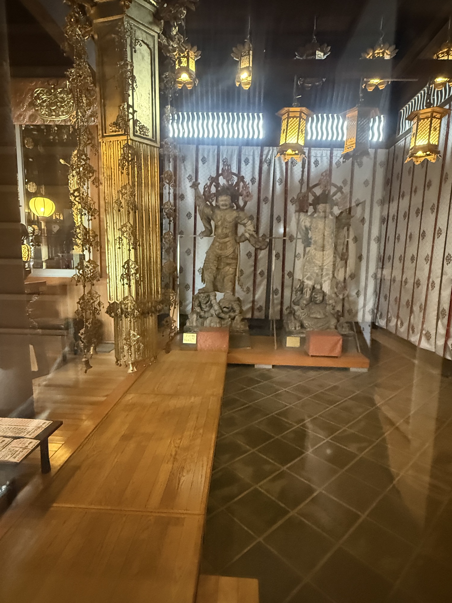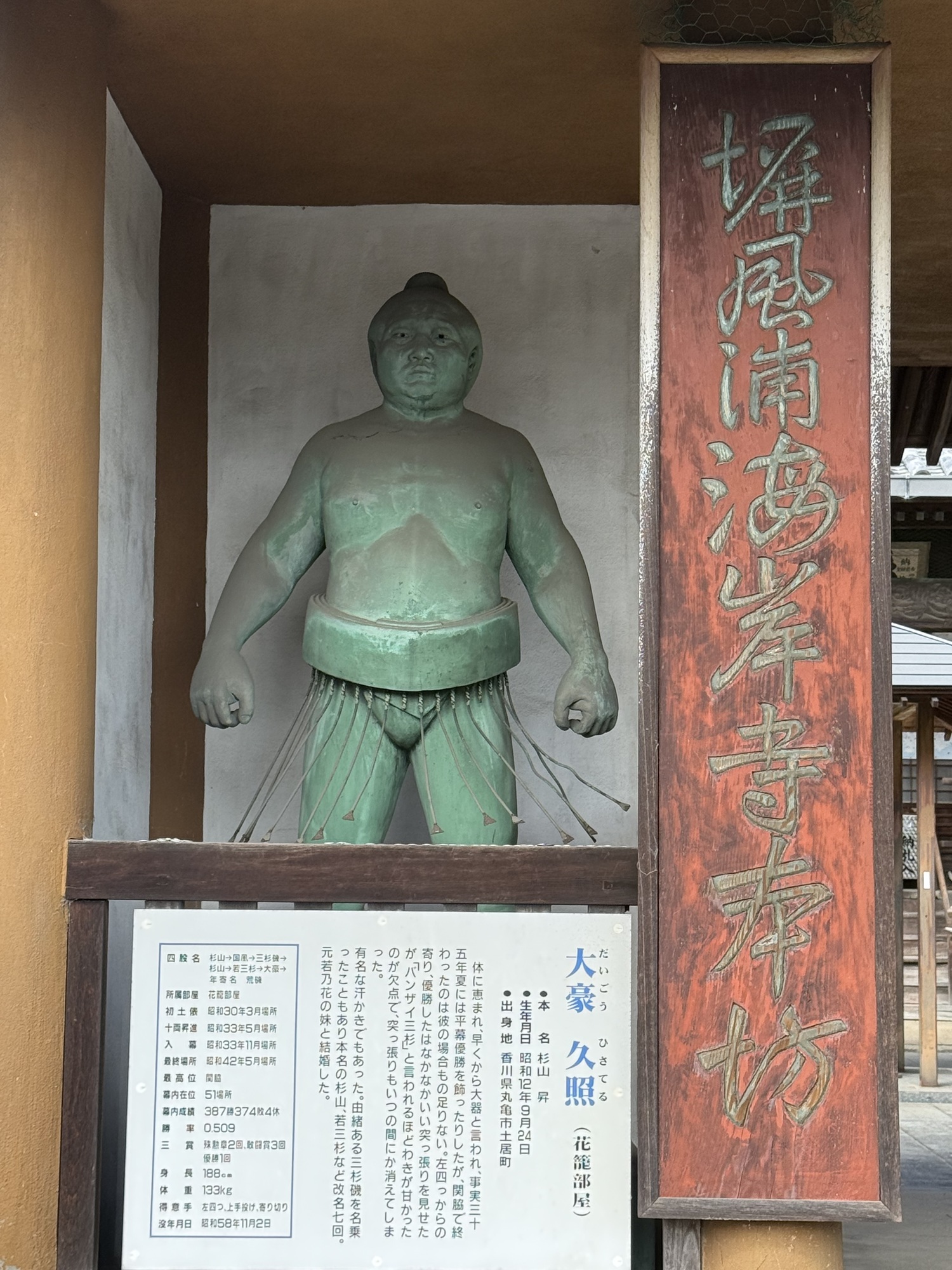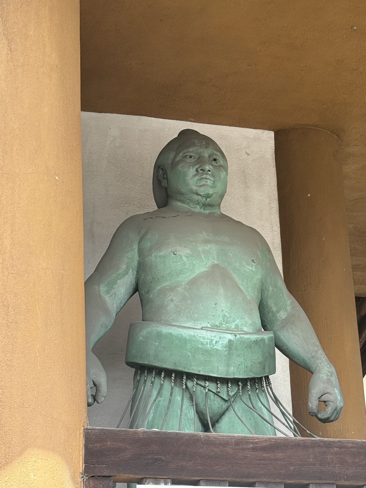 We are accustomed to seeing large statues of ferocious looking characters at the entrance gates protecting the temple. Seeing sumo wrestlers is a first for us, but it does make sense.