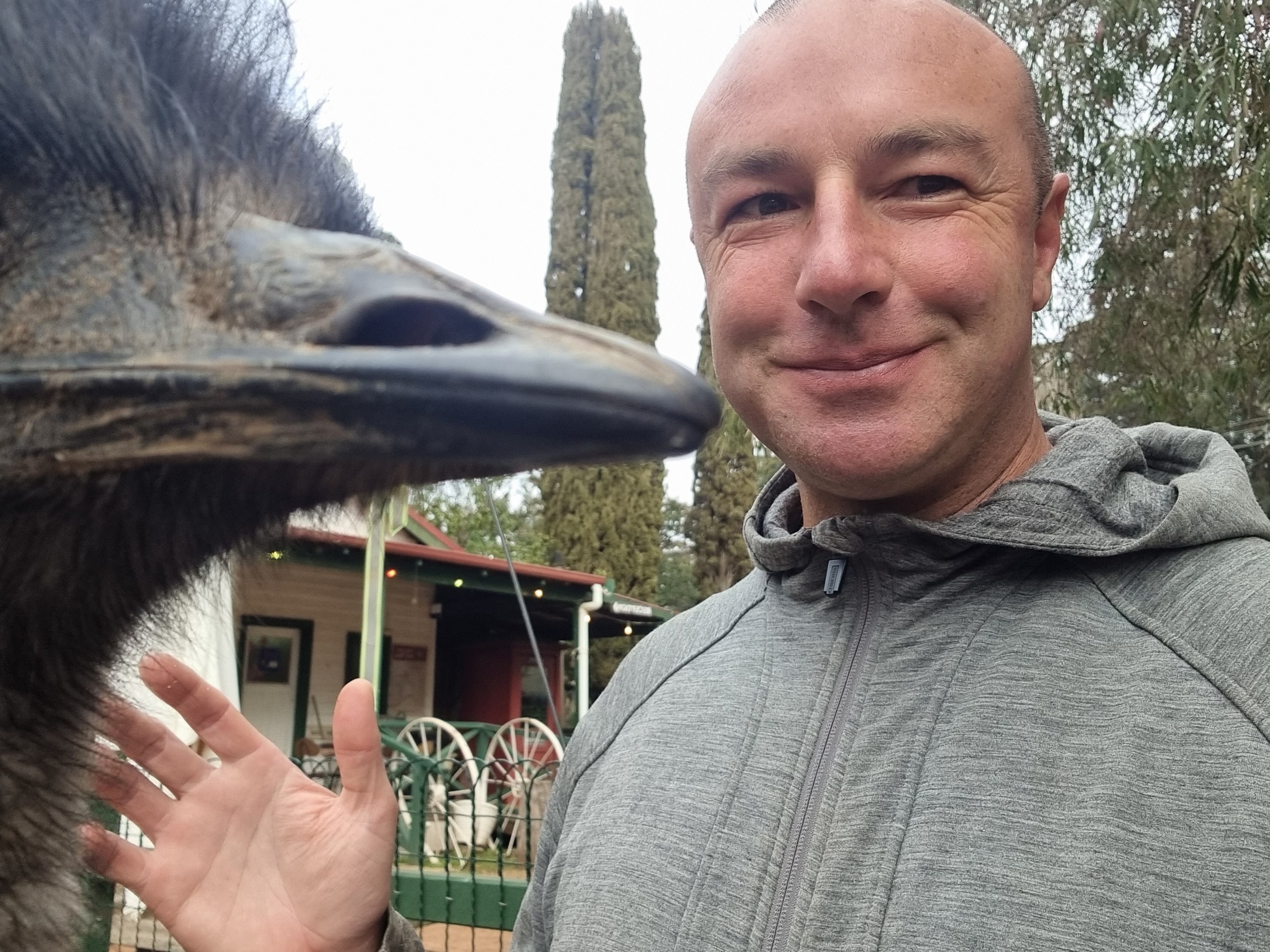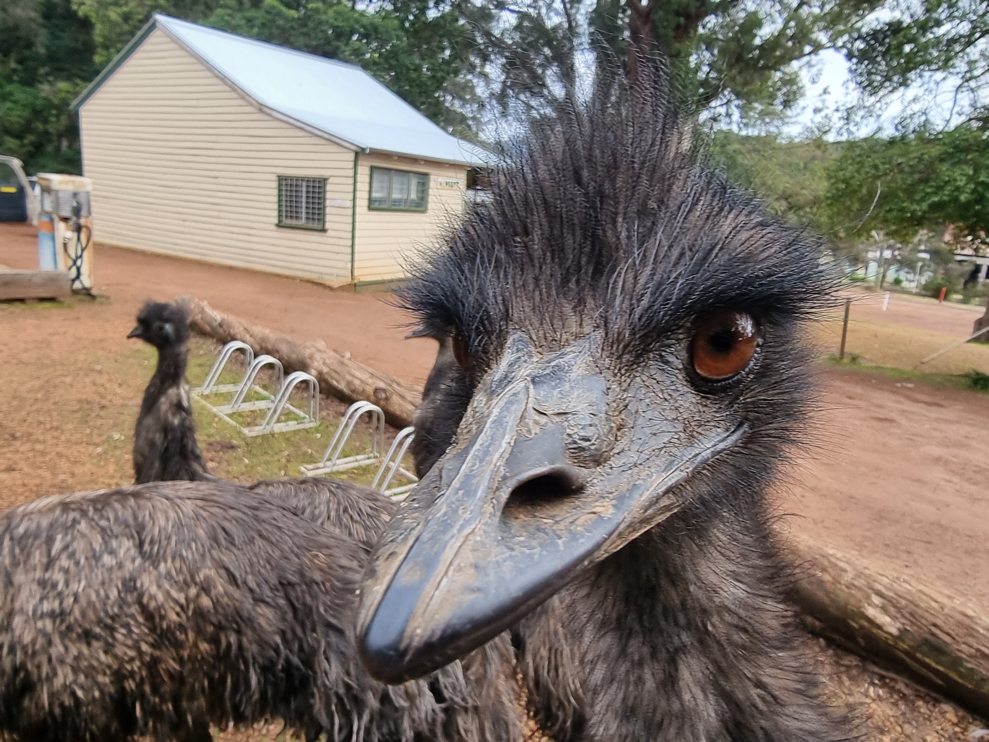 I had breakfast in the store. When I exited the store eating a biscuit, I was immediately surrounded by 6 emus...