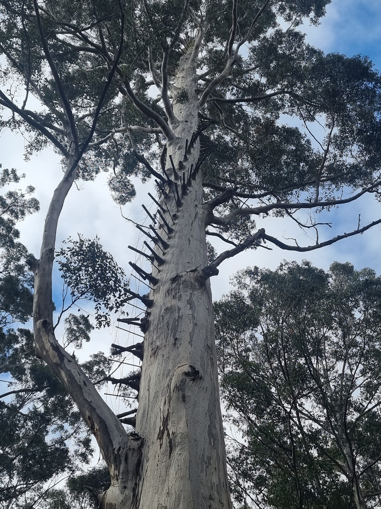 It's another old fire lookout tree. I couldn't climb this one either because the first 5 metres of the step pegs have been removed.