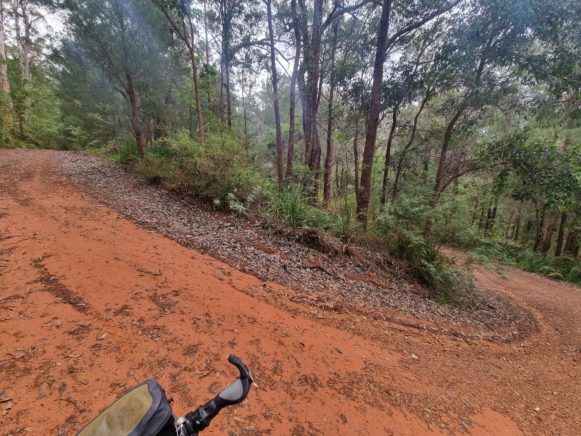It's very hard to capture the steepness of a track in a photo. I have very low gears and can pedal at 3.5km/hr. Even so I couldn't ride up this hill.