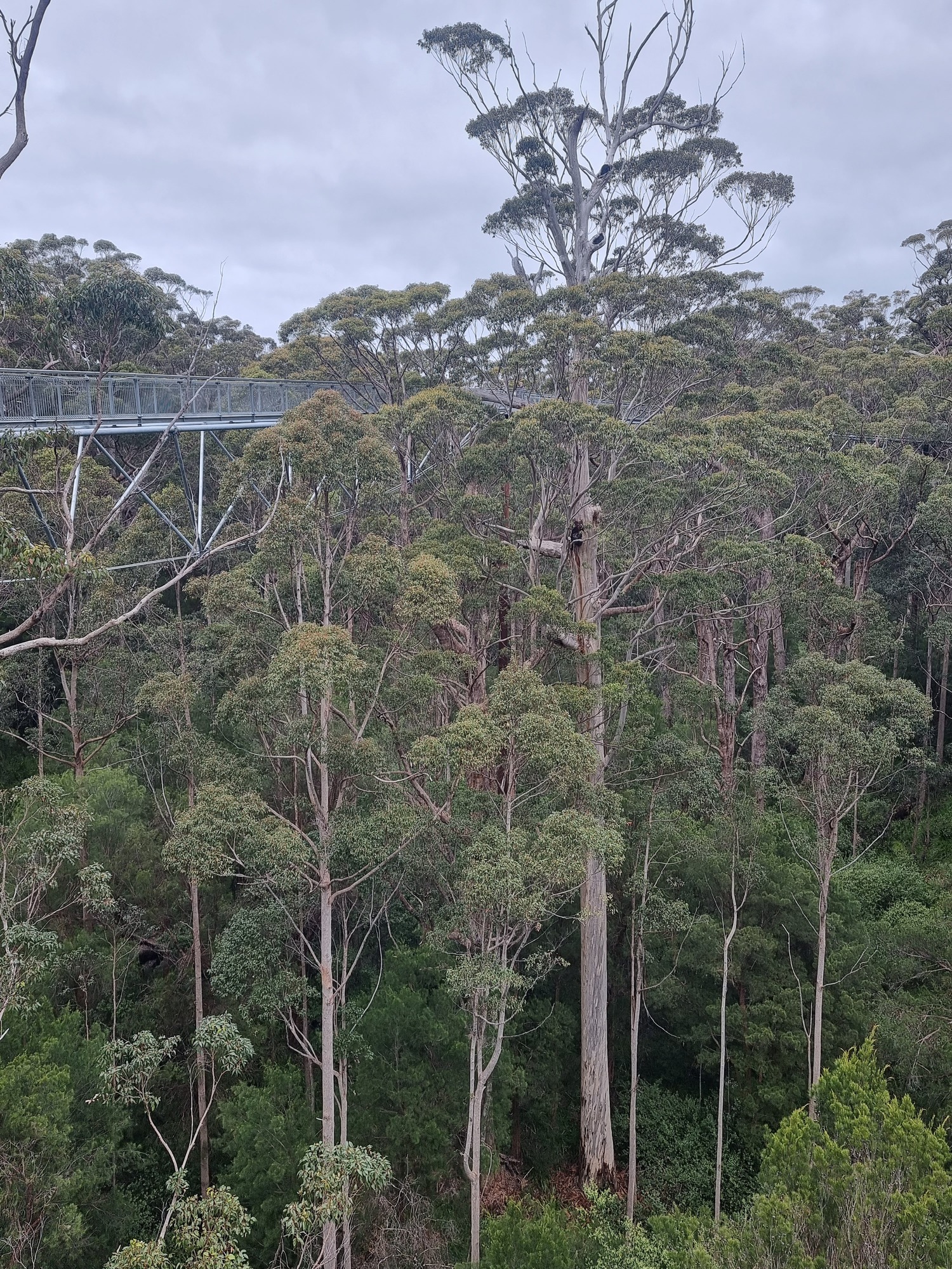 I arrived at the Valley of the Giants and did a tree top walk. It was 600m long and 40m high. It shook and swayed and was a little scary.