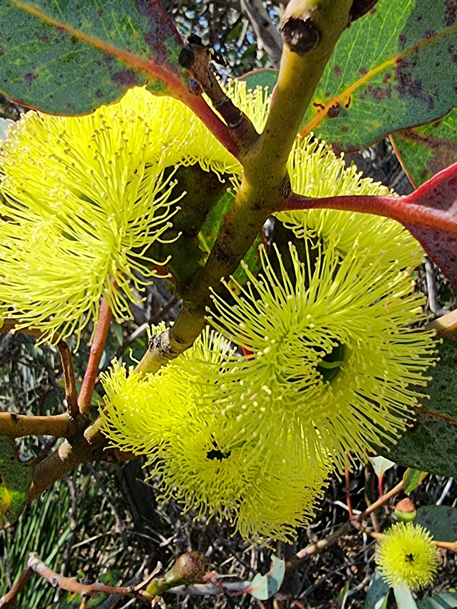 I saw 3 amazingly colourful eucalyptus flowers today: