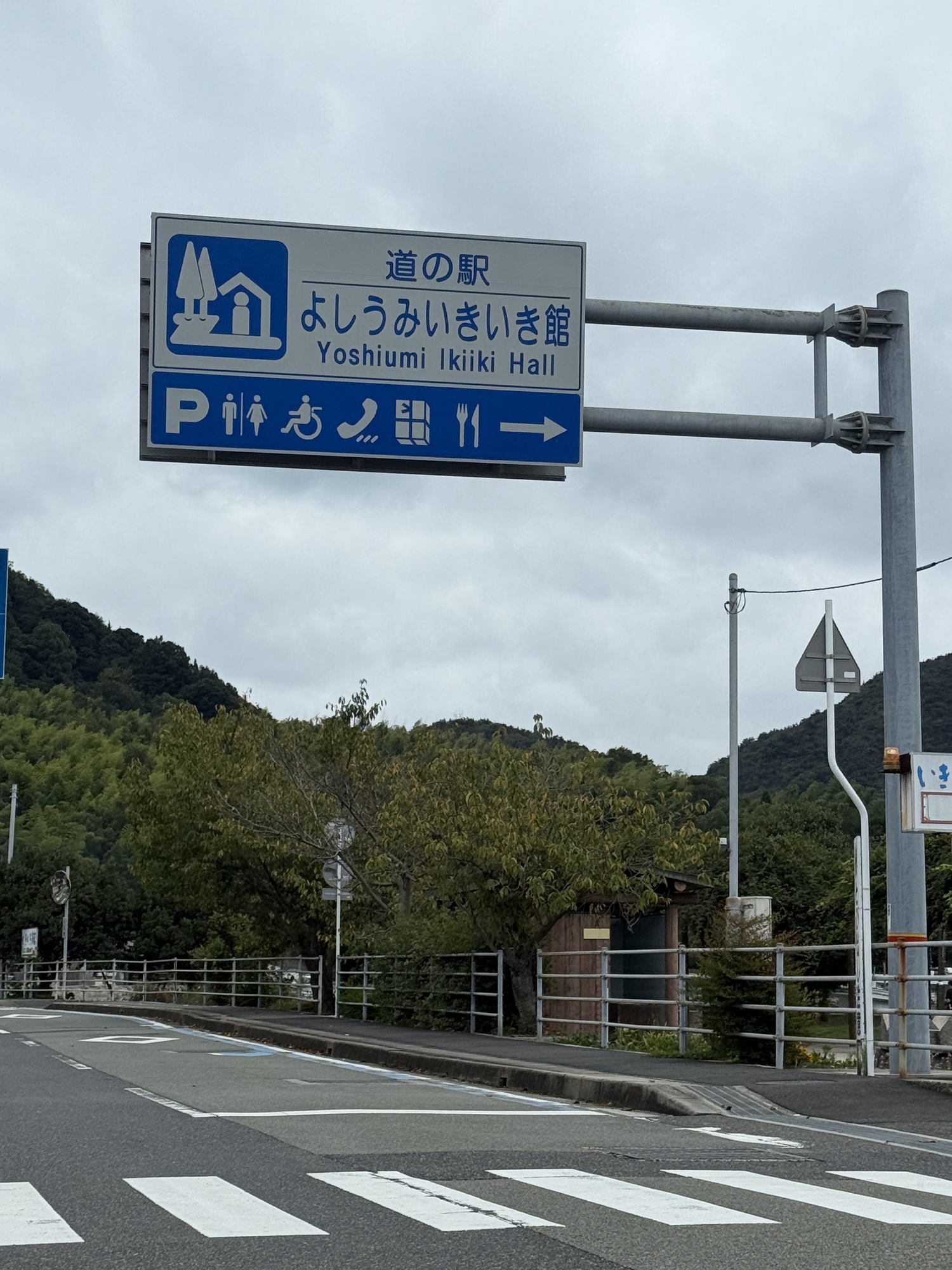 The image on the sign tells you that this is a Michi no Eki. They are throughout Japan and they celebrate local produce, crafts and interesting Japanese food typical of the area..always at a reasonable price. We love visiting them.