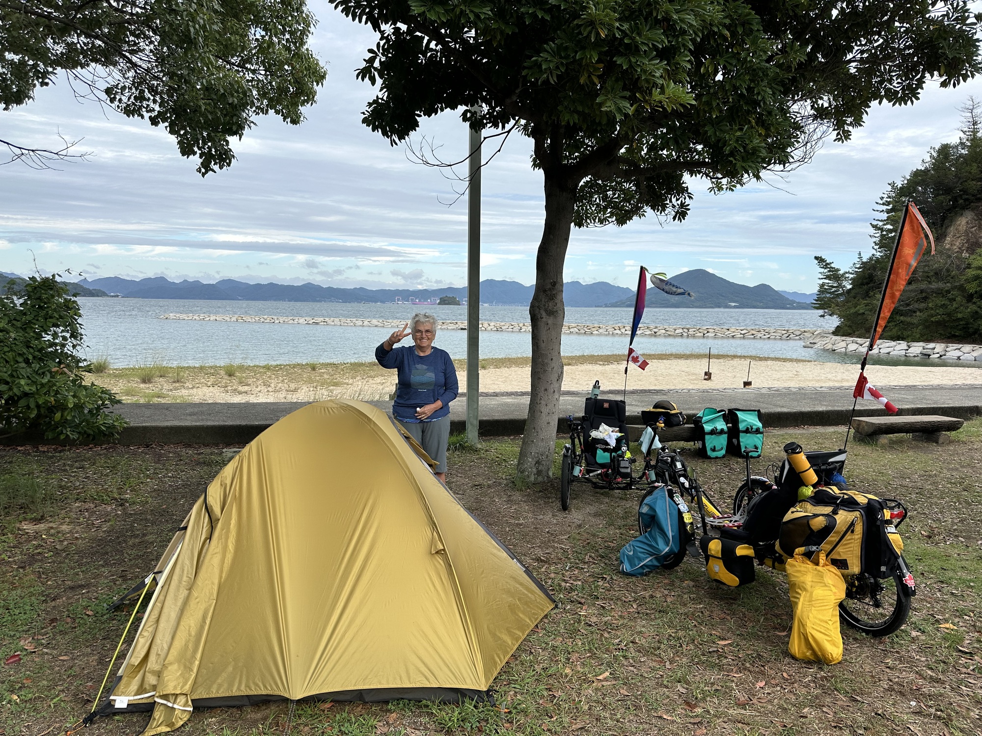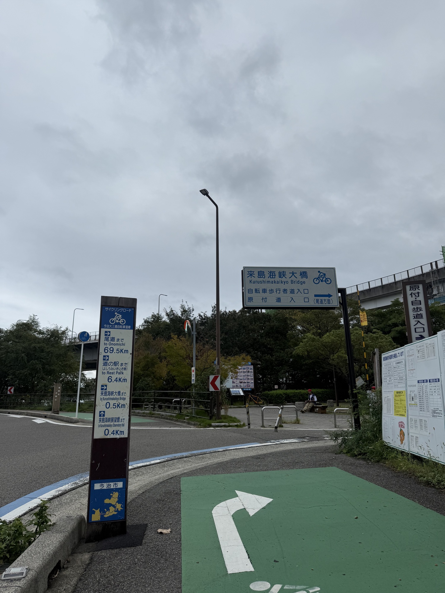 This map shows where we will be camping tonight. It is just before the Tatara Bridge and is called the Tatara Campground. We are basically below the bridge by the water. It is nicely positioned beside a Michi no Eki and a Konbini. We will have good choices for food tonight.