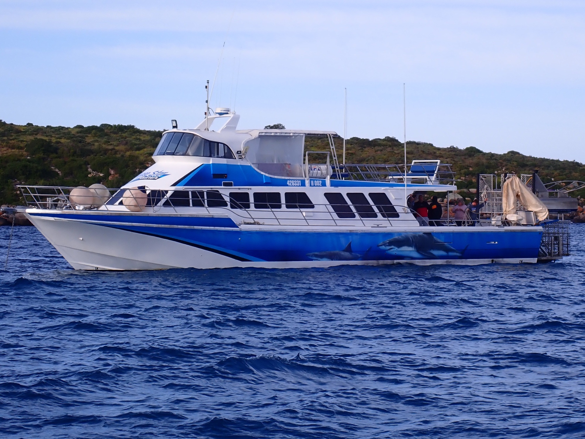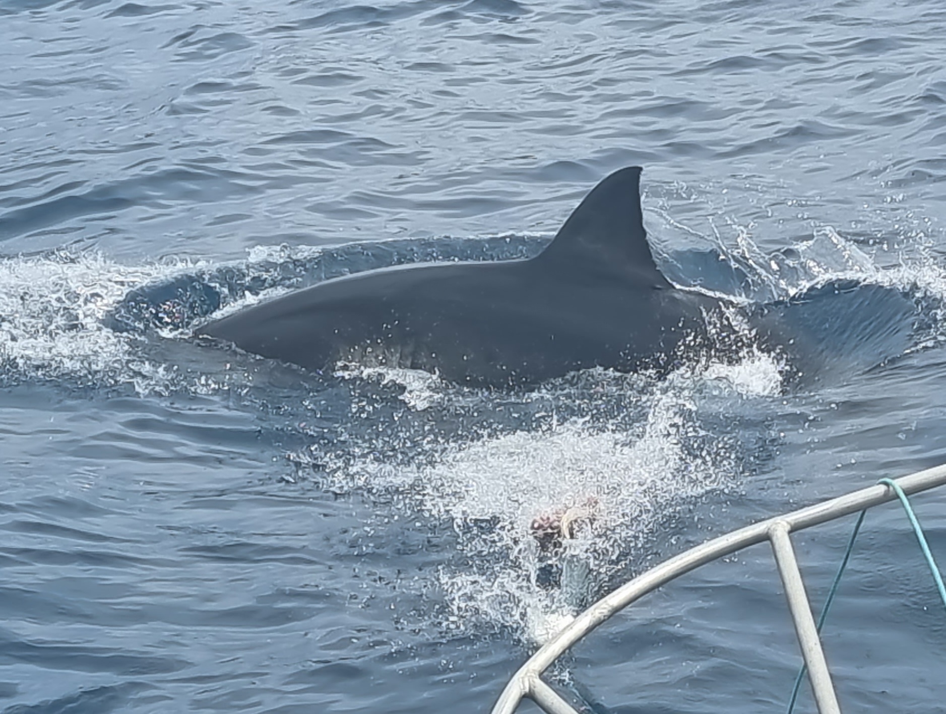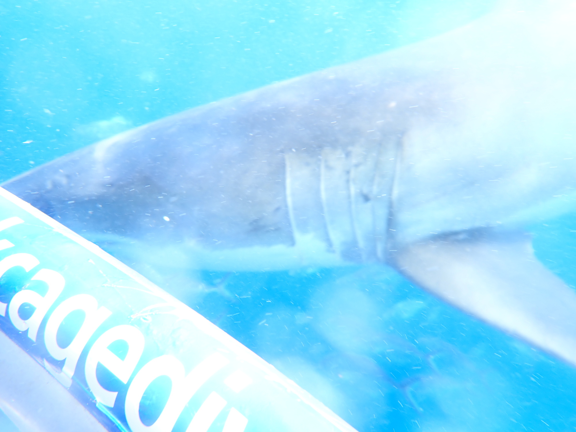 I saw a few sharks, the biggest was 'Scarface' at 4.8 metres. They were amazingly big and so fast. Most of the time they would gently cruise by about 2 metres from the cage.