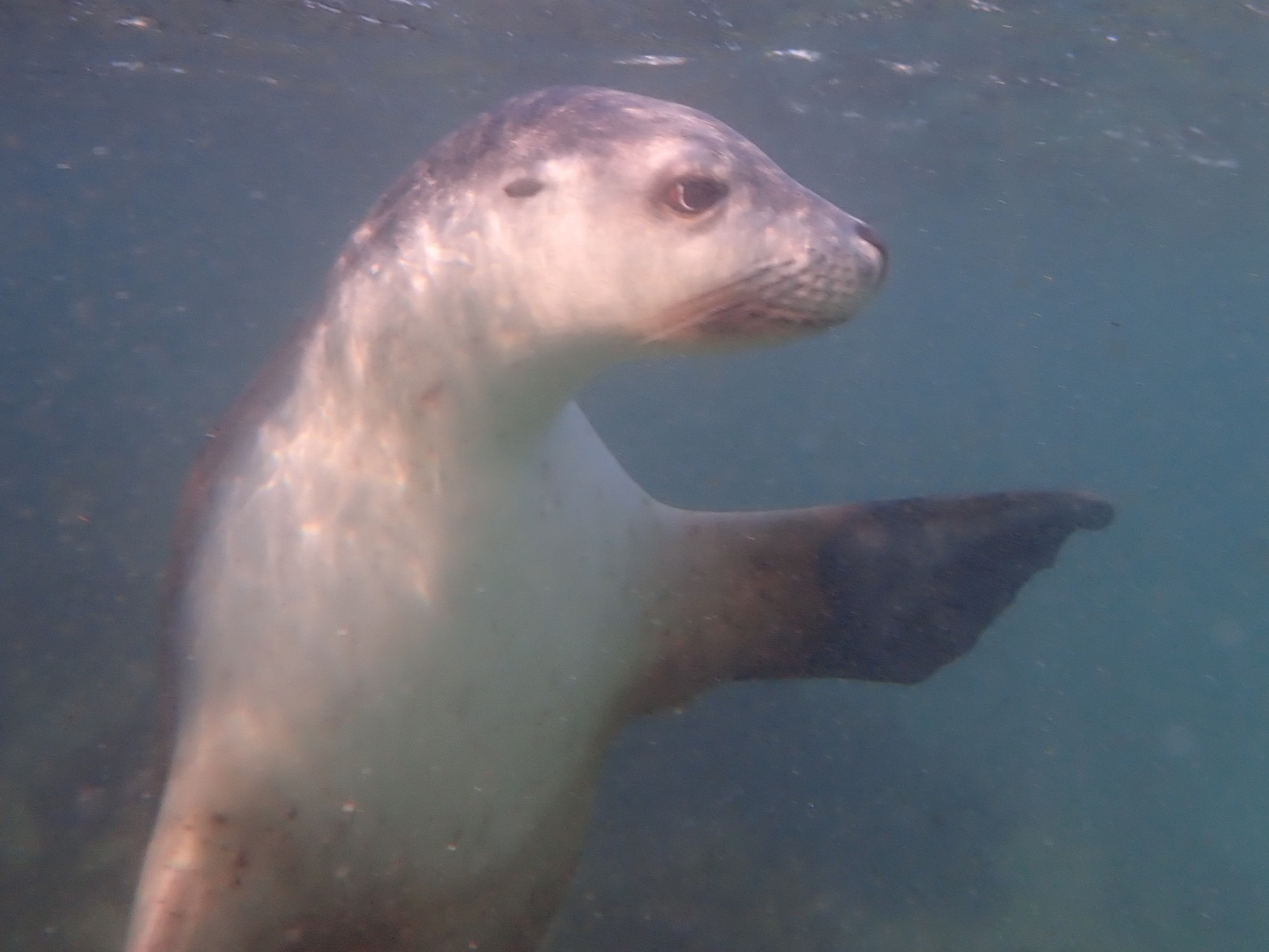 We put on 7mm thick wetsuits as the water was very cold and then jumped in the water to swim with sealions.