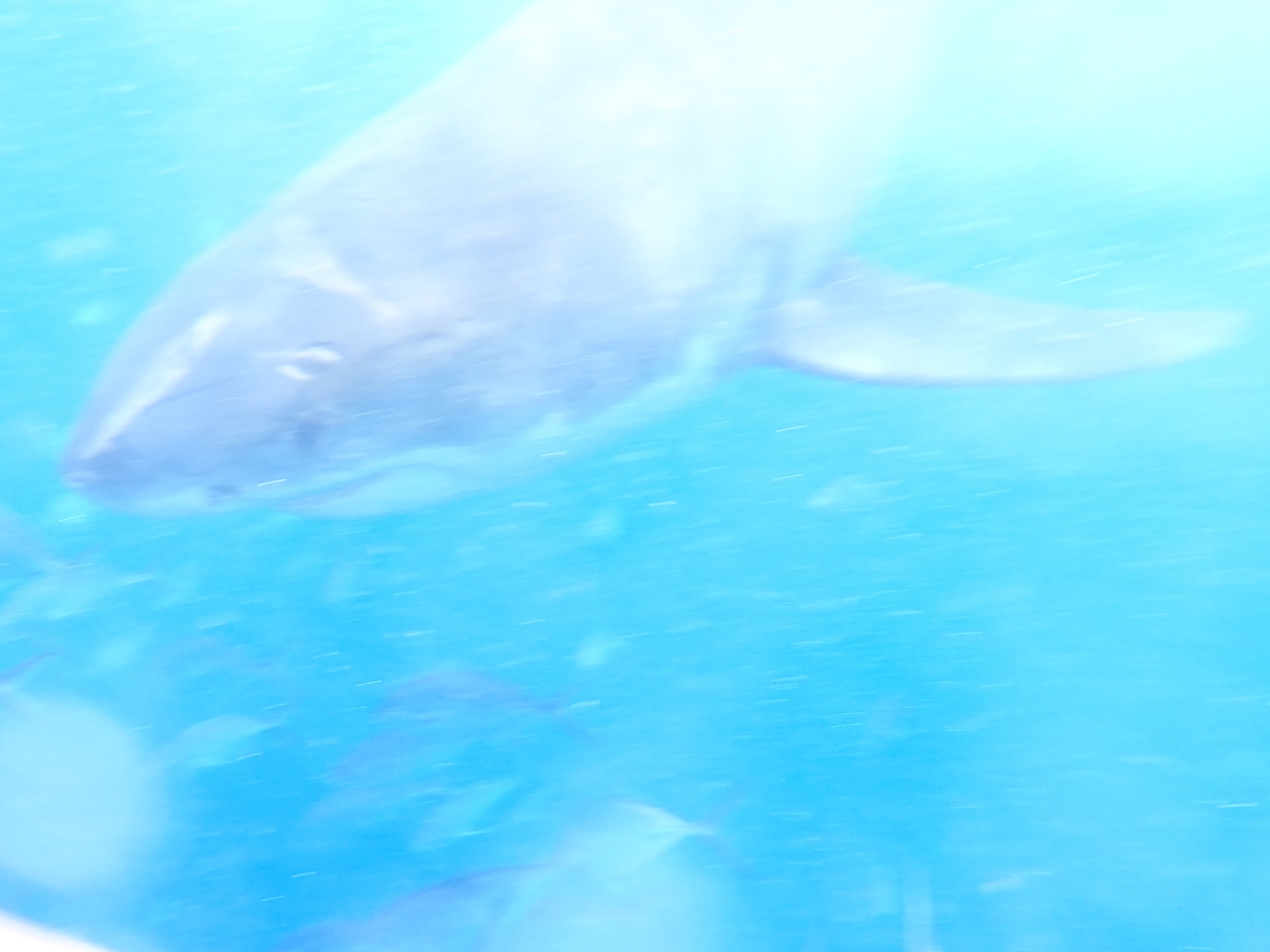 The swell was big. The top of the cage was at the water level and on floats. Unfortunately everytime a wave went by, it would create a million little bubbles making the visibility very poor.