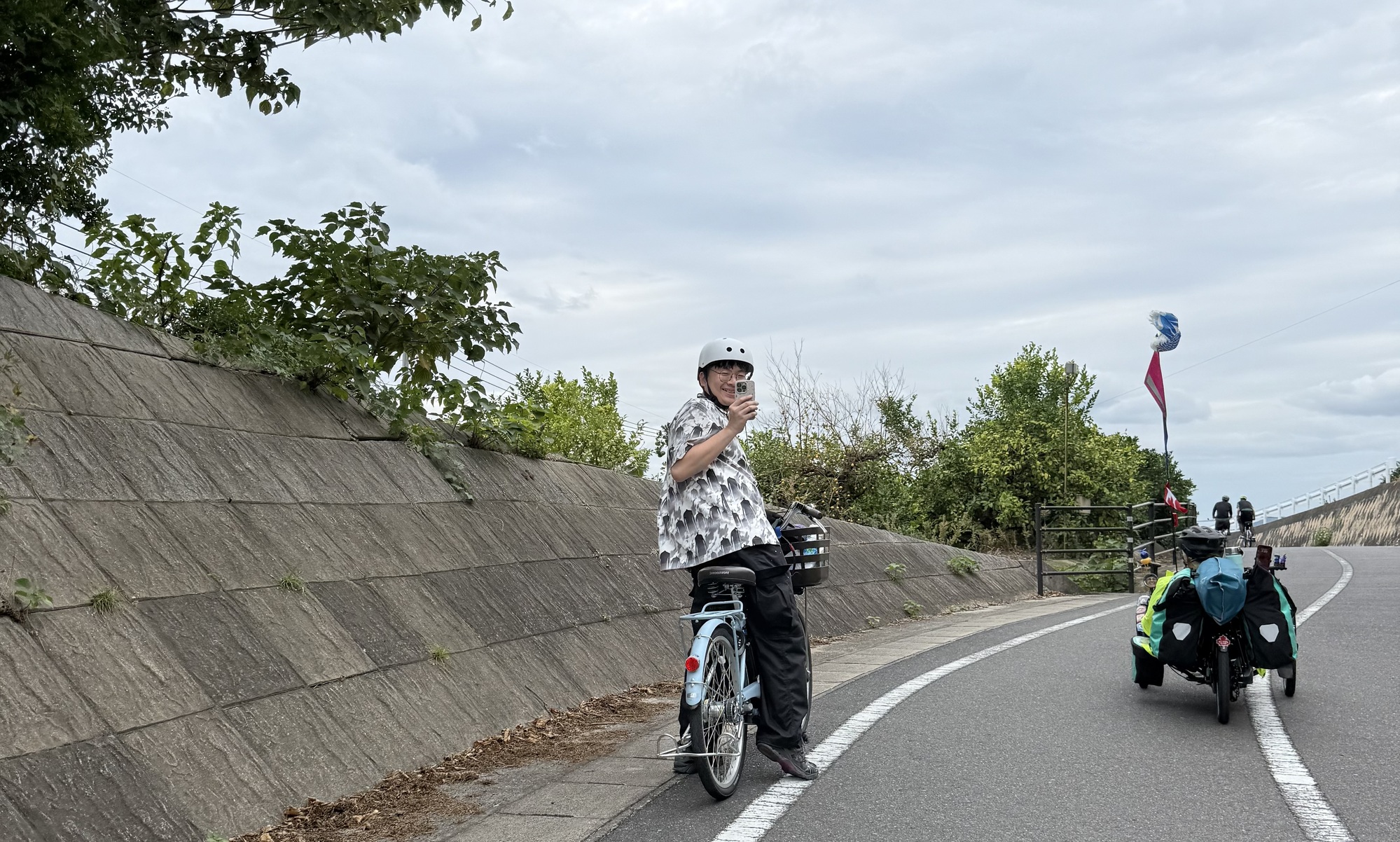 We saw a large group from Indonesia who are cycle touring the Shimanami. This woman, also from Indonesia, is one of the organizers who is leading the tour.