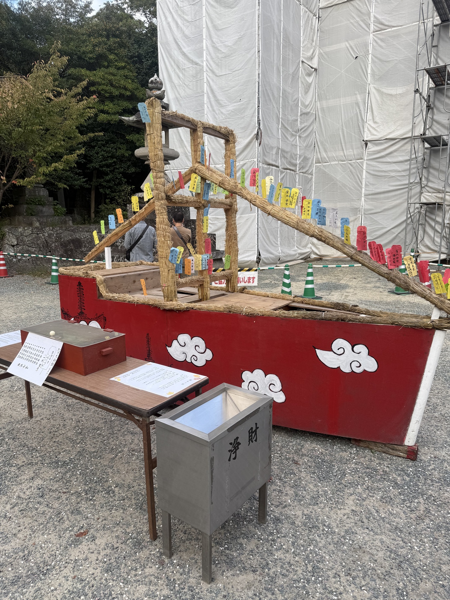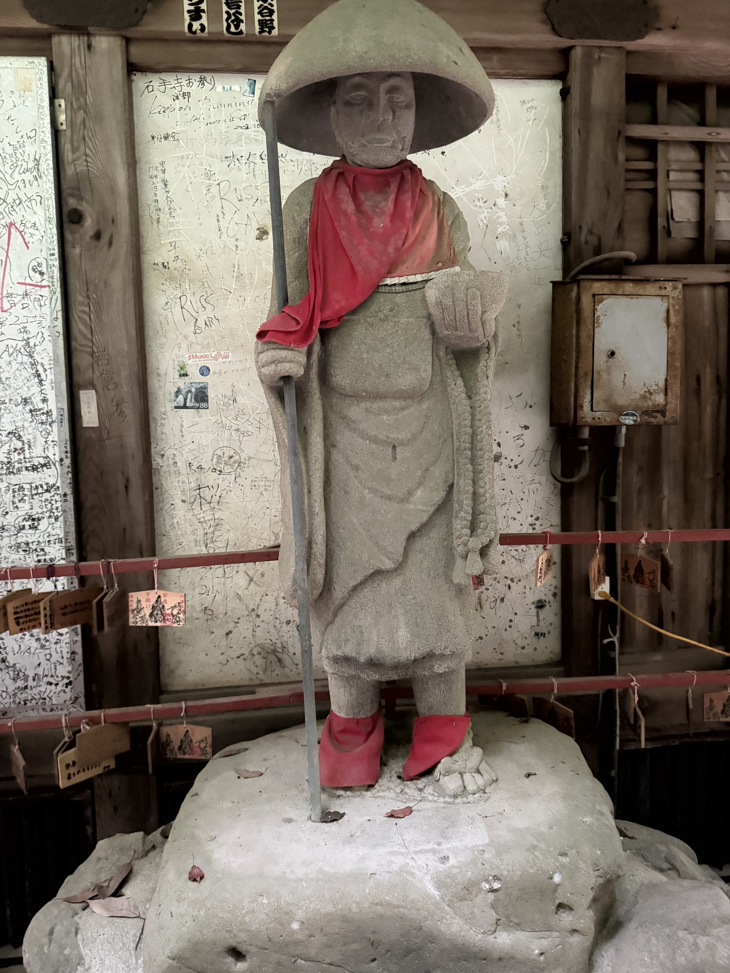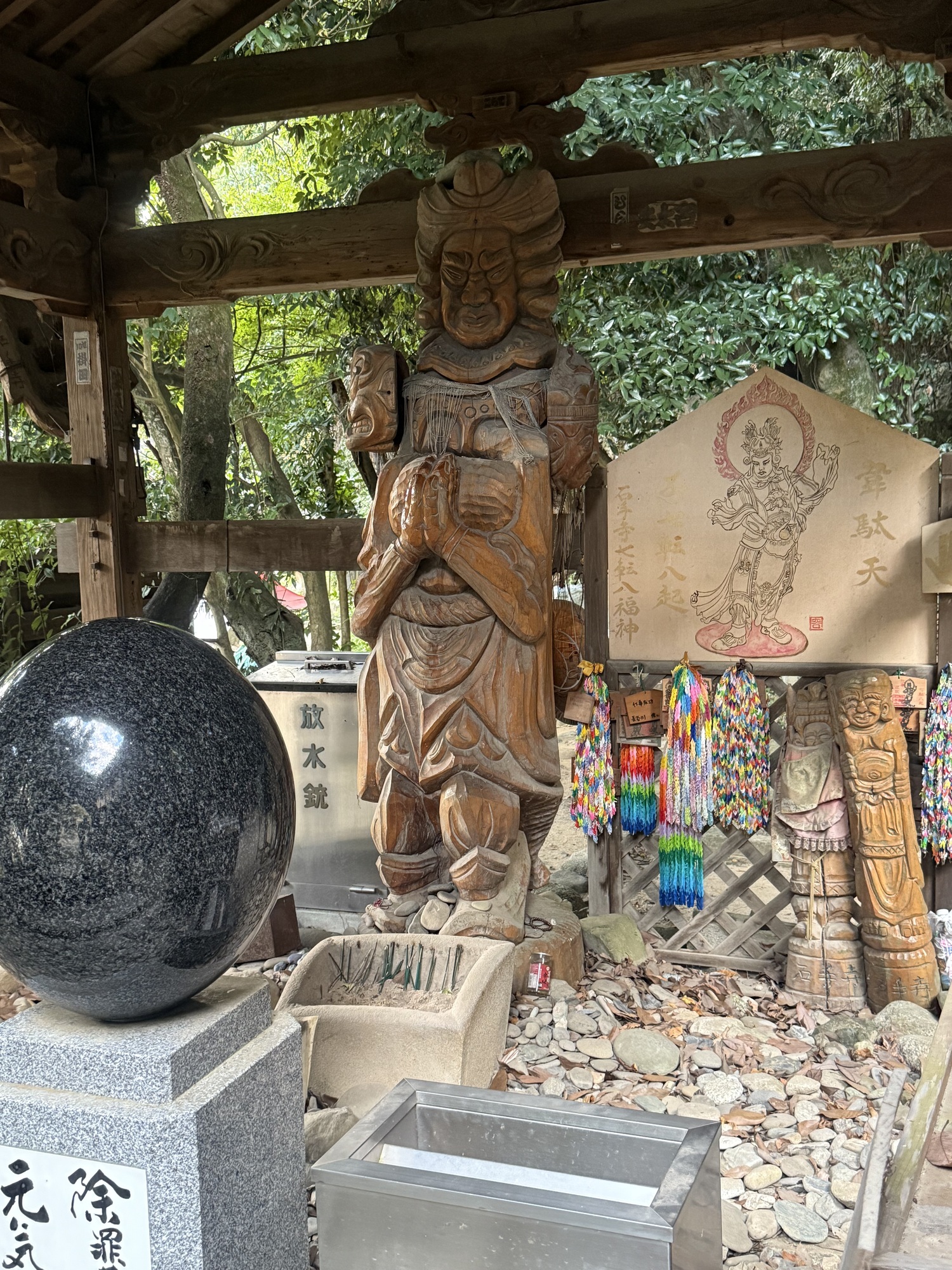 We have seen these oversized rope and straw sandals at many of the temples we have visited. We weren’t always sure what they represented as many were in disrepair. Here we learned that they indeed replicate a sandal. Legend has it that if you touch one of .these sandals you will be cured of foot ailments.