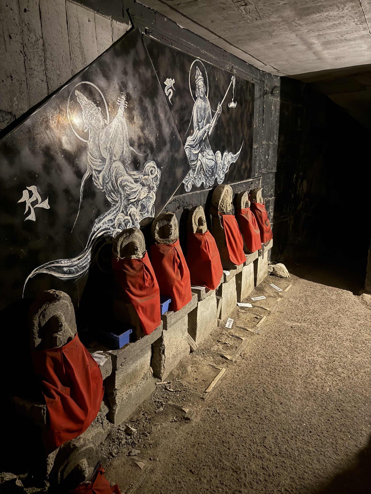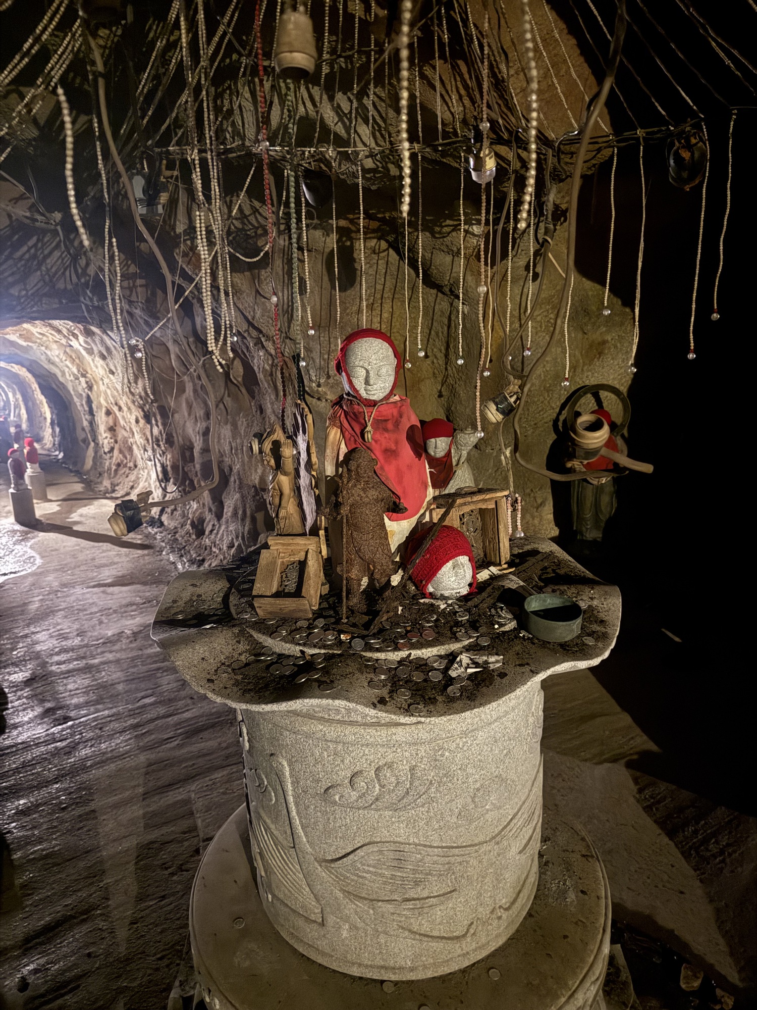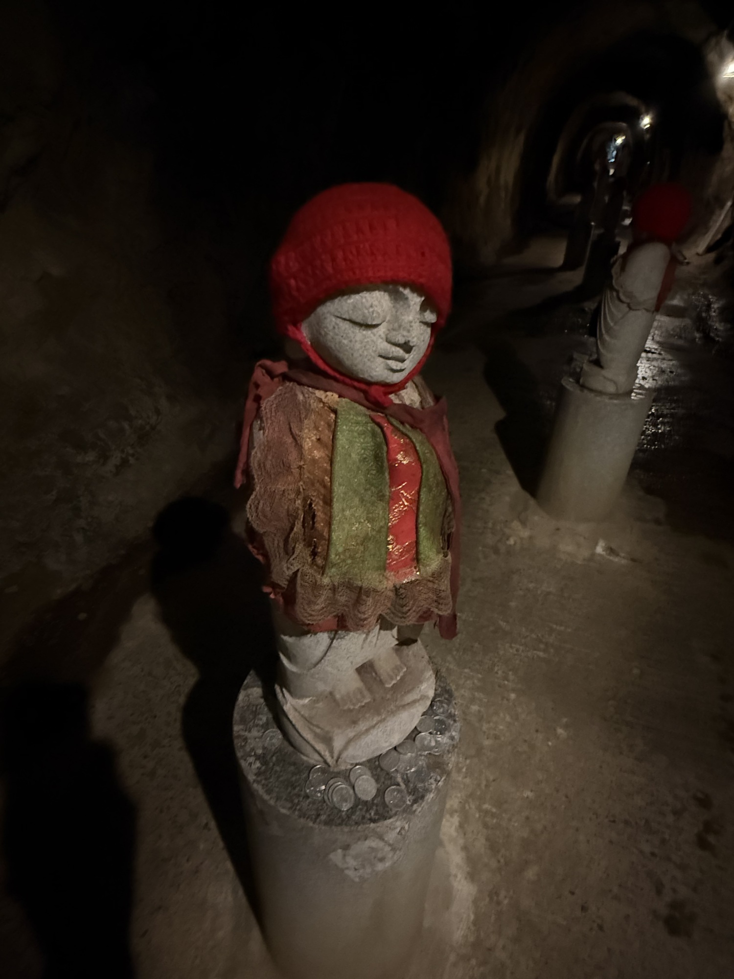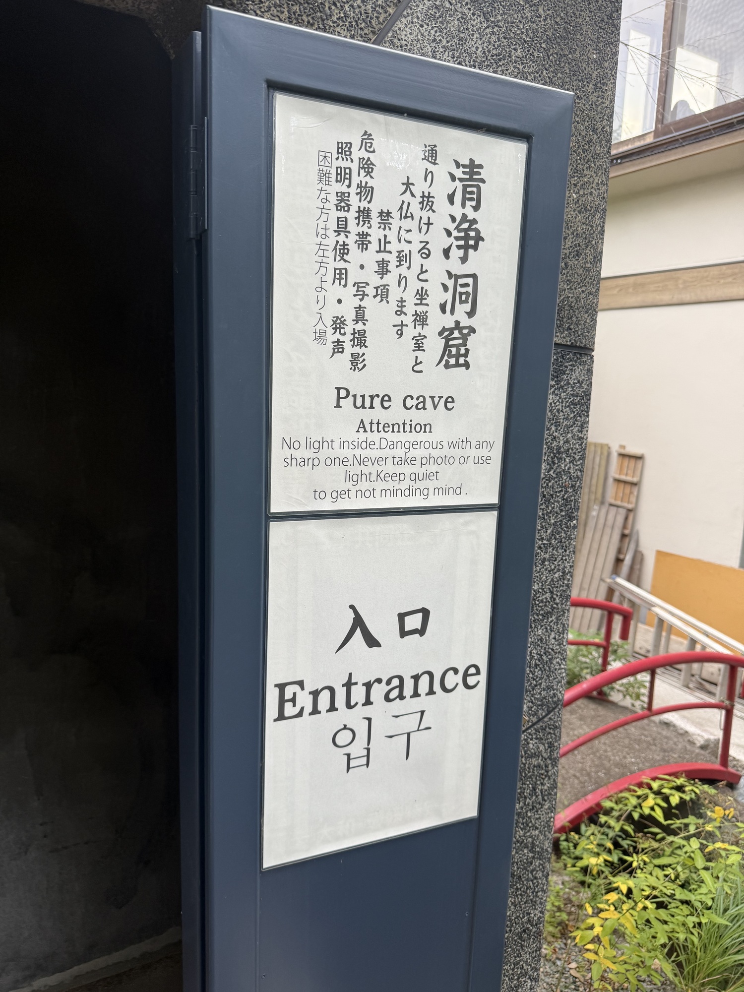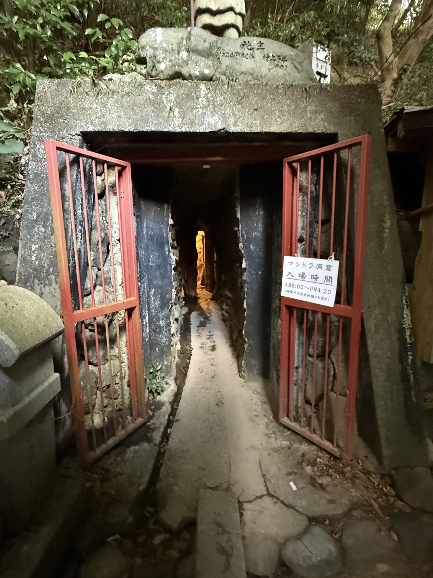 Barry walked through this cave and found it to be quite claustrophobic. It is unlit, very dark, and extremely narrow and there are steps that you have to deal with. It is designed to give you spiritual betterment by experiencing intense disorientation.