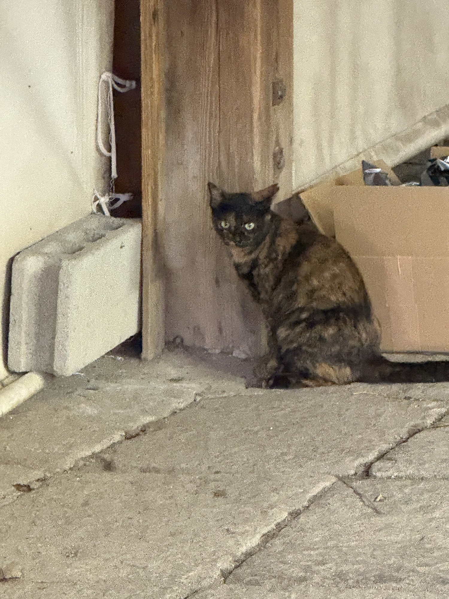 Mr. Black Cat looks quite healthy, has a clipped ear which means he has been spayed. He is responsive and curious, but retains his wild temperament. He stays close by but doesn’t’ want to be touched. A lovely cat.