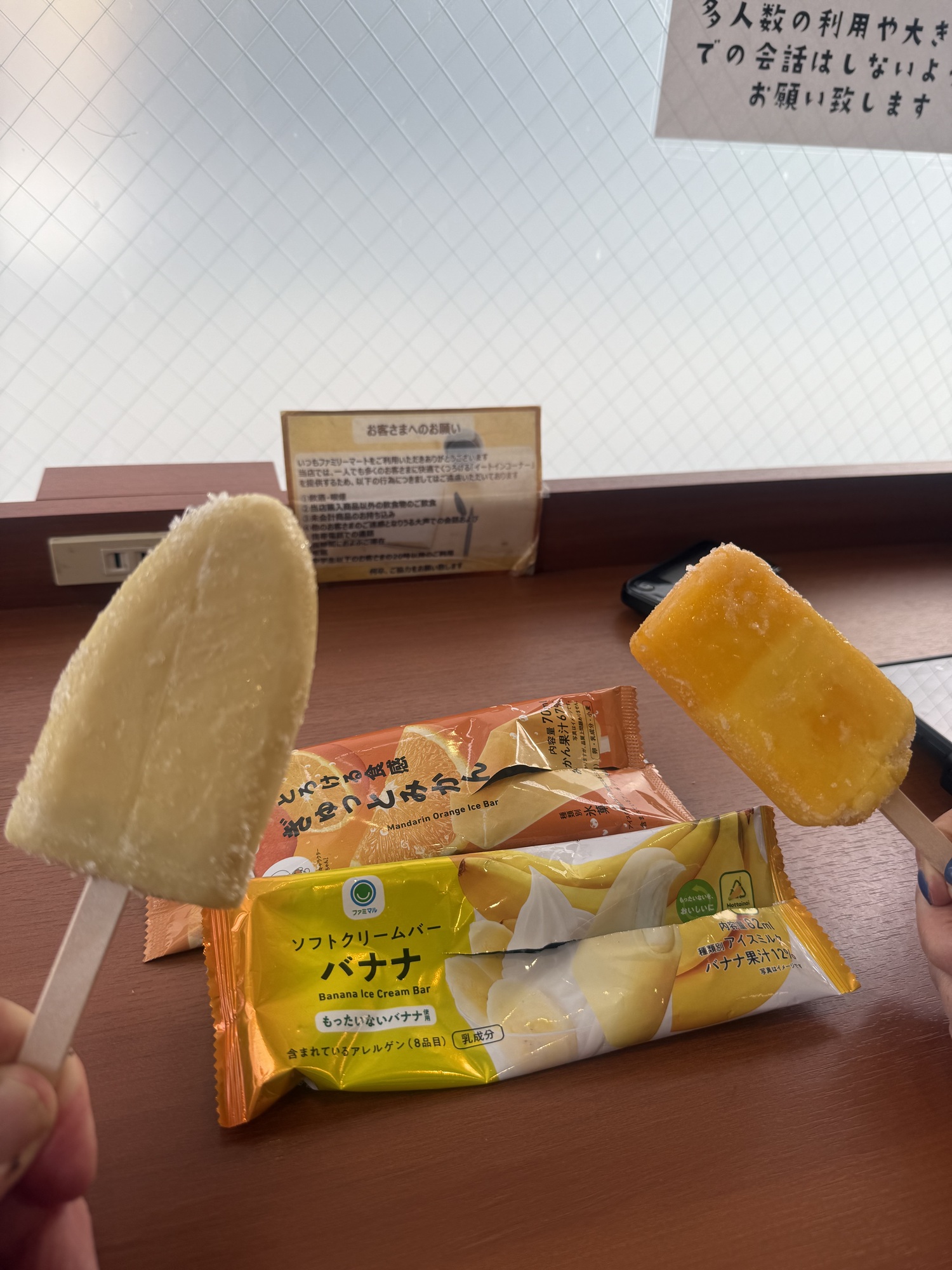 A treat to finish from the freezer, a mandarin ice bar and a banana bar.