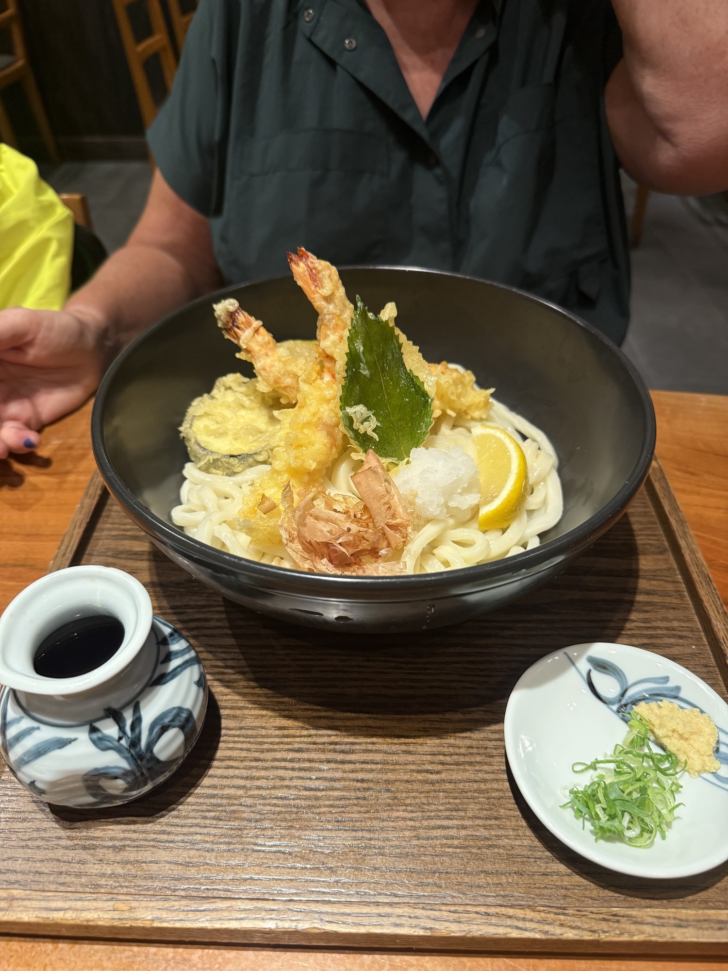 I had udon with broth, tempura shrimp, squash and various vegetables. It was delicious. This restaurant offers three sizes of udon in your bowl (1, 2 or 3 servings) and the price is the same. We went for 2 and that was a mistake…we couldn’t finish the noodles.