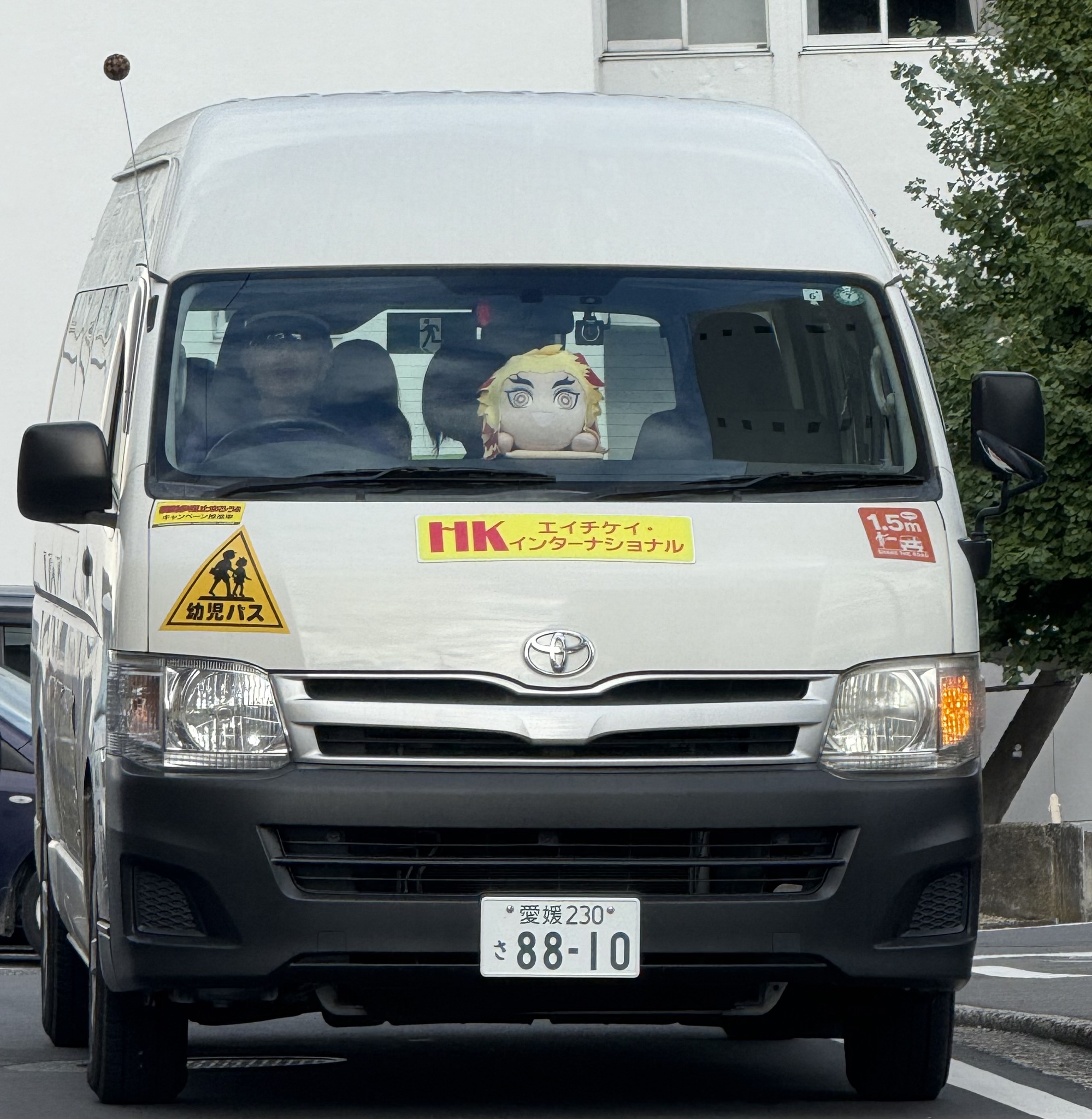 Who is this bigger than life character in the front window of the van. It kind of makes you wonder, who is driving this vehicle. As the vehicle passed us, little smiling faces appeared at the windows waving at us. It was a school bus for preschoolers.