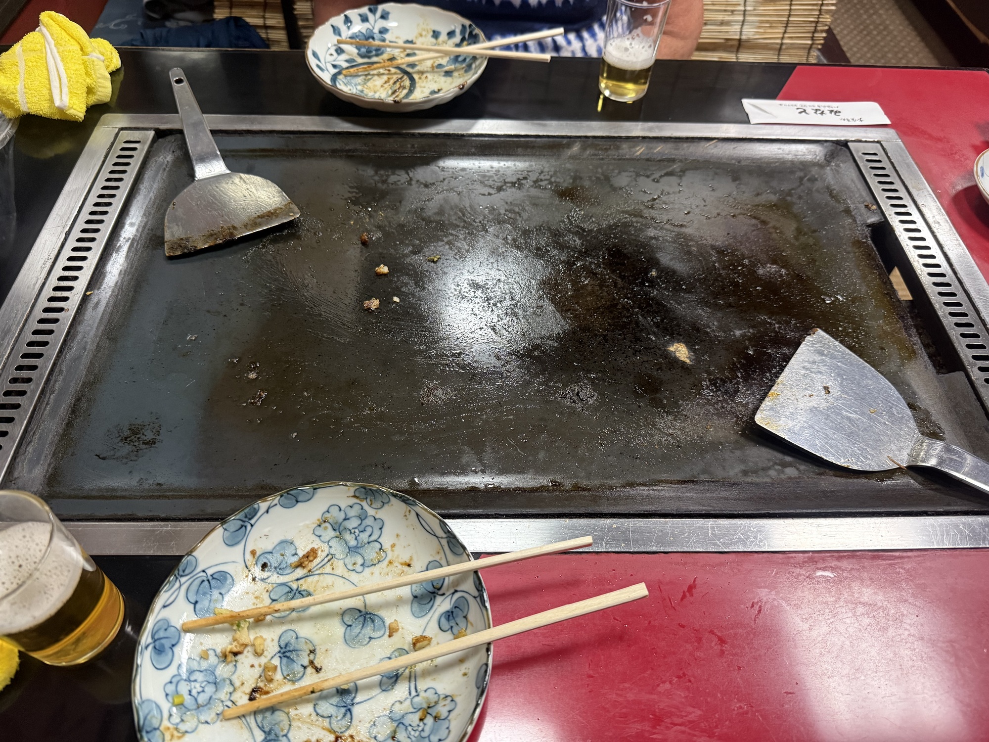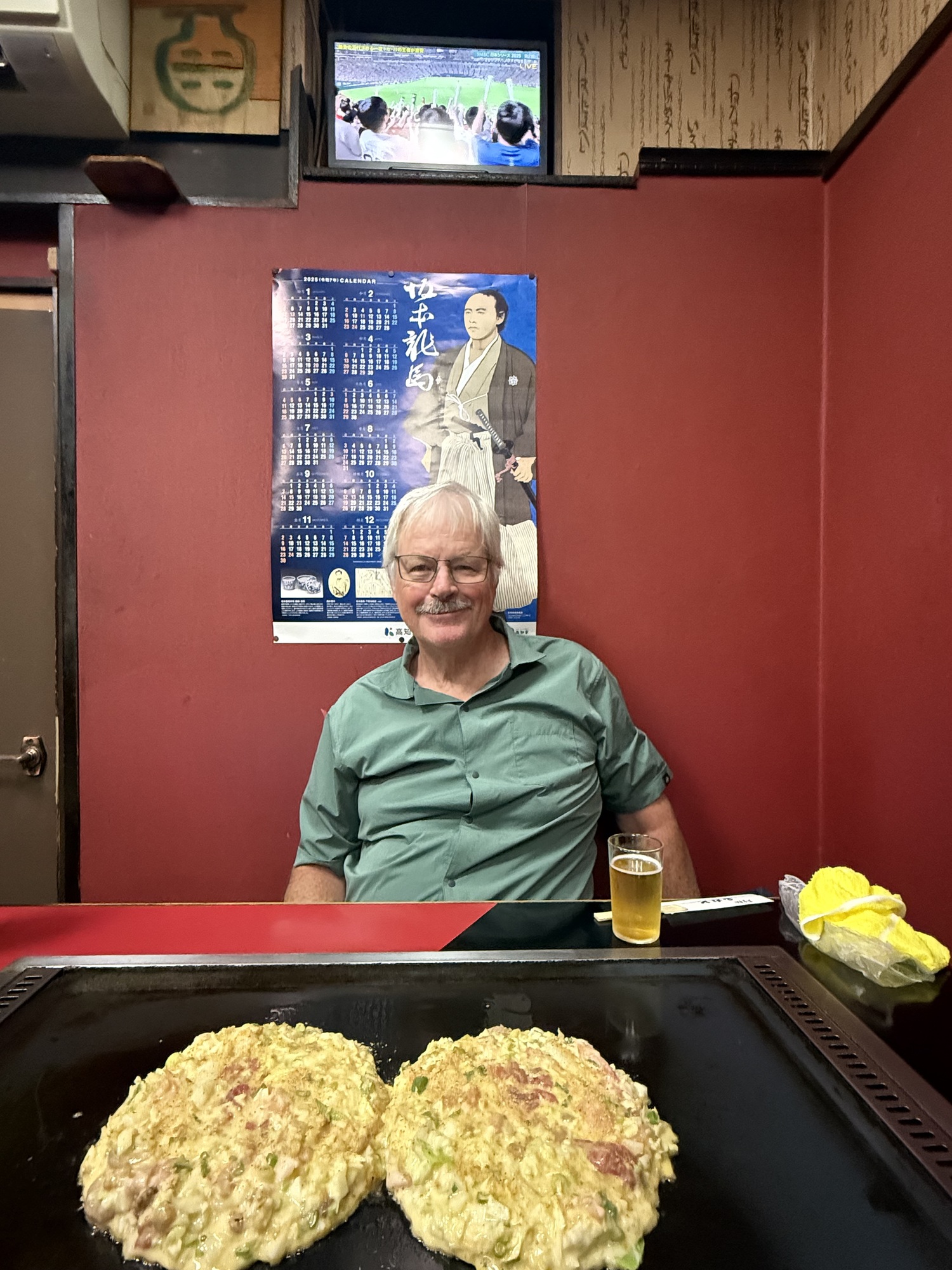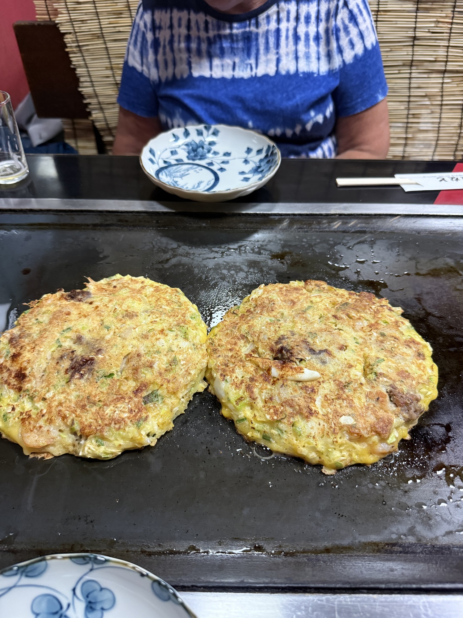 We went for dinner to a long established Izakaya in Yawatahama, run and hosted by a senior couple. An Izakaya is very small in size and is known for the quality of its food. This Izakaya is known for 2 specialities…champon noodles and Okonomiyaki. We sat in the tatami mat section where we had our own booth with a hot plate.