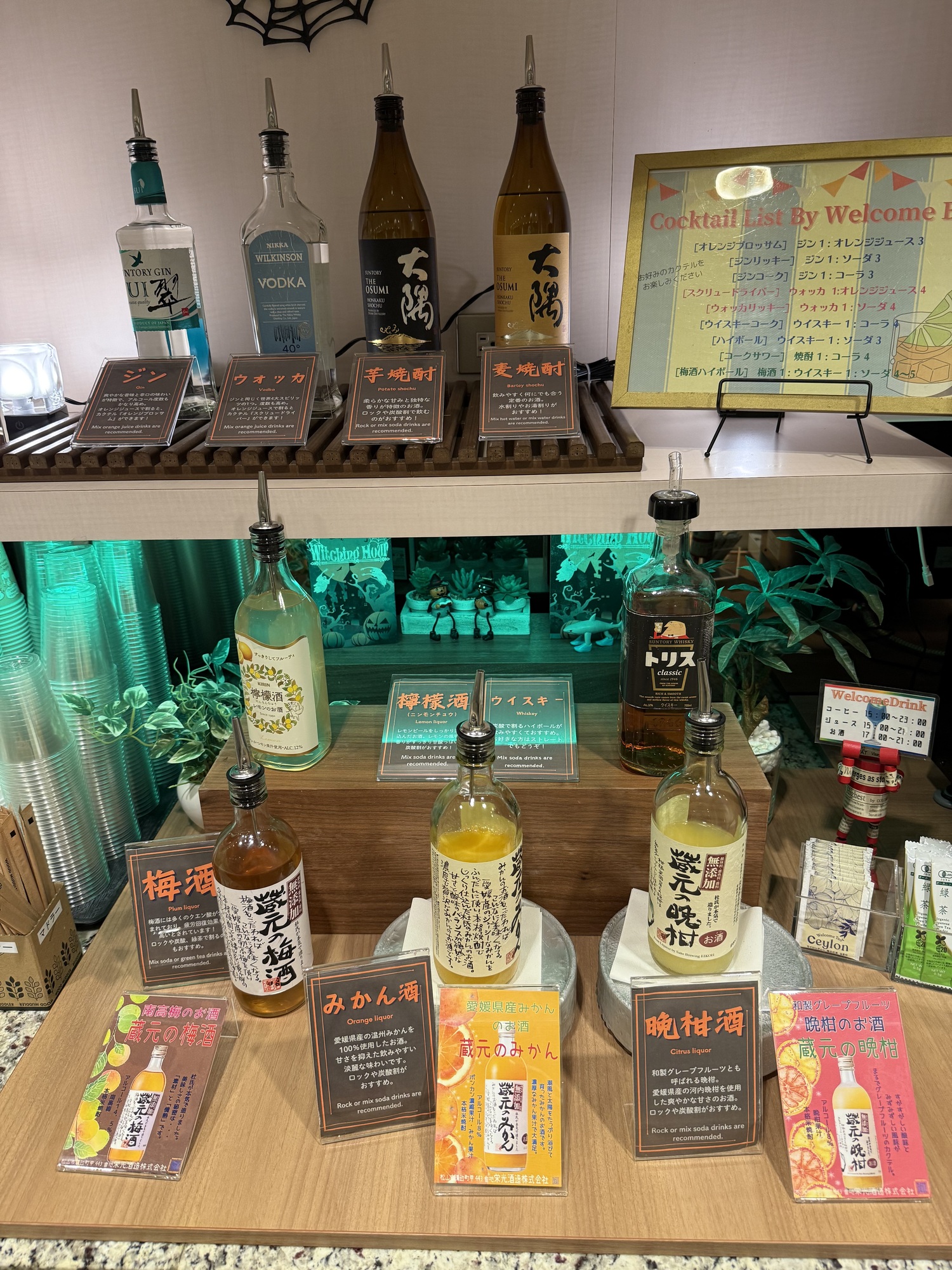 It is a fairly common practice for hotels in Japan to offer free beverages to their guests in the evening. It ranges from a wide assortment of alcoholic drinks, soft drinks and tea or coffee.