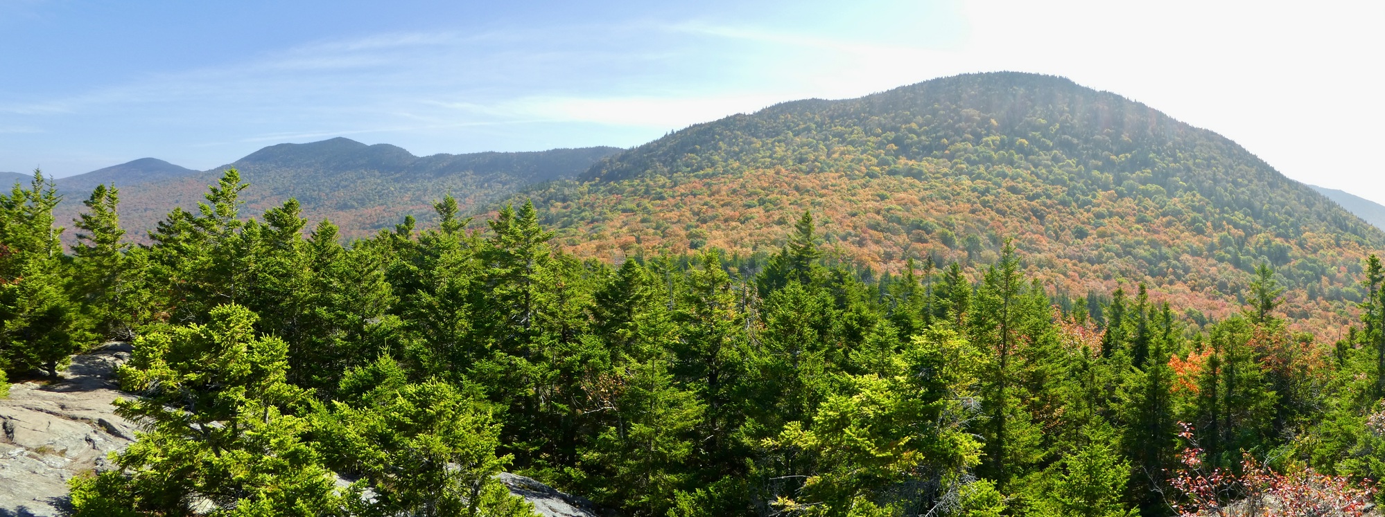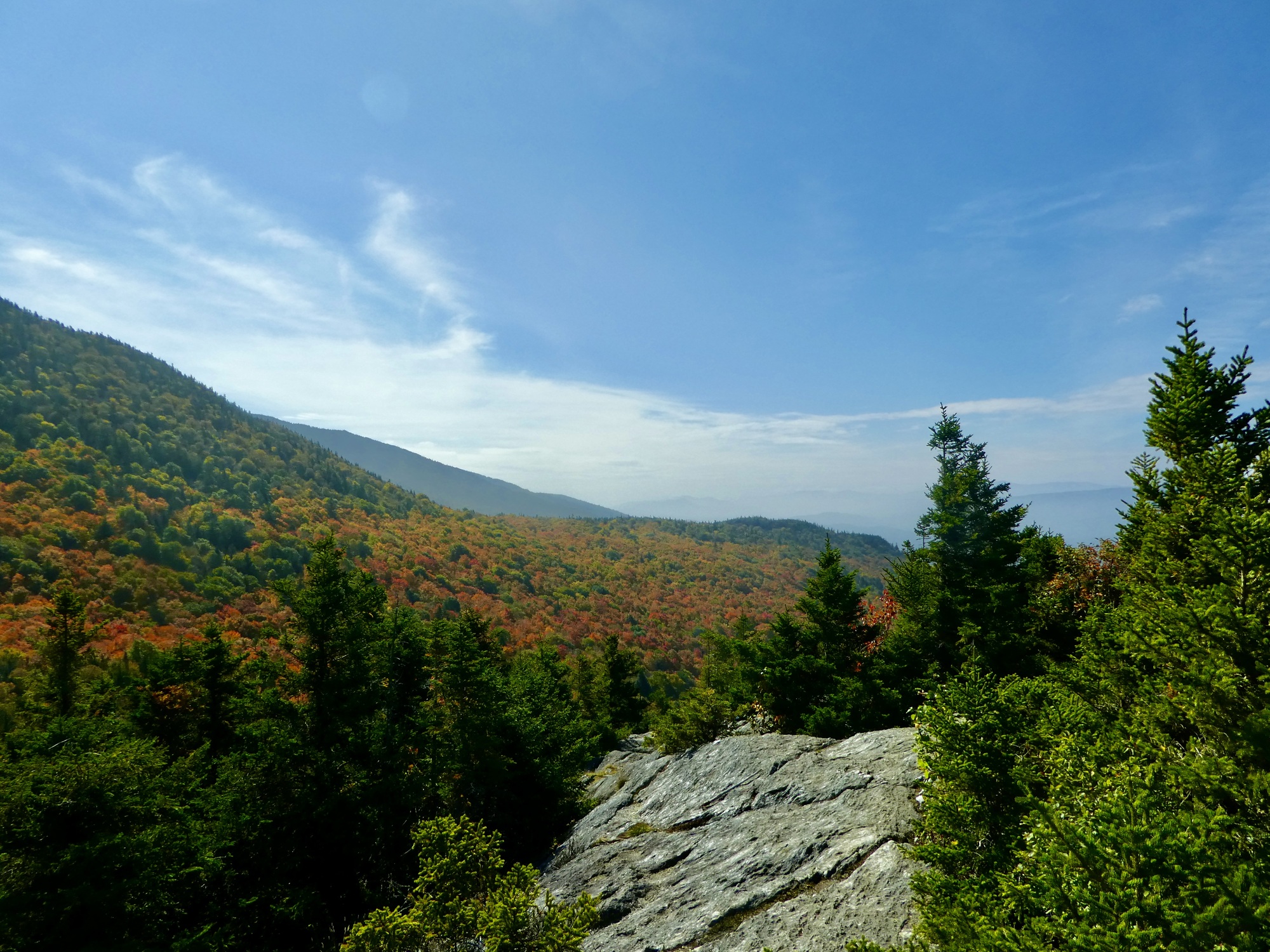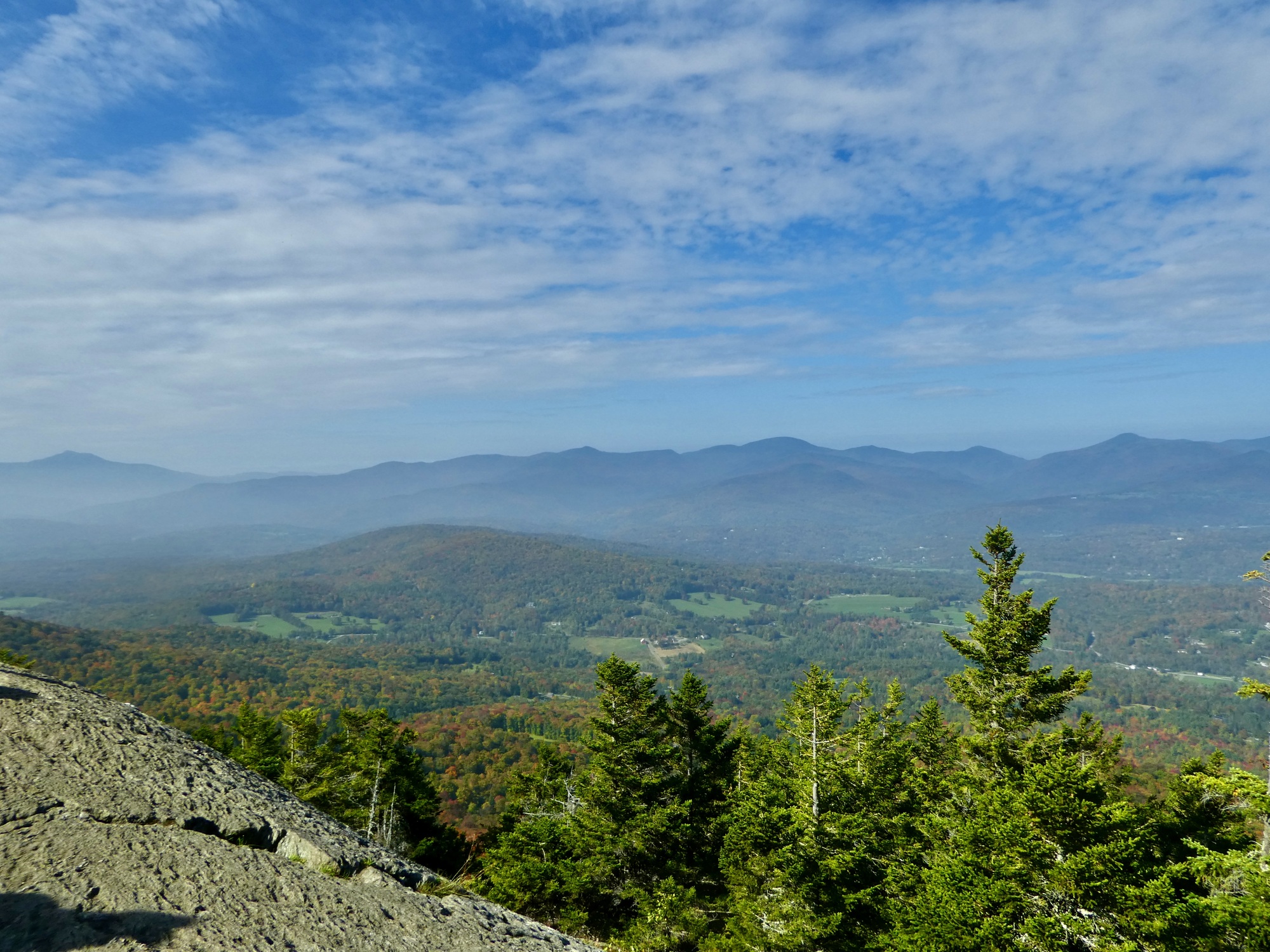 Stowe village sits in a broad valley in Vermont’s Green Mountains and the area offers a wide range of hiking options that vary in length and difficulty. We were looking for a moderate hike with views and decided on Stowe Pinnacle. It was on the short side but promised one of best views in the area, two features that contribute to its popularity. And the hike delivered – winding up through the woods before opening onto a broad outcropping with views of the valley and surrounding hillsides. The colors were popping, capturing some of what is best in a New England fall.