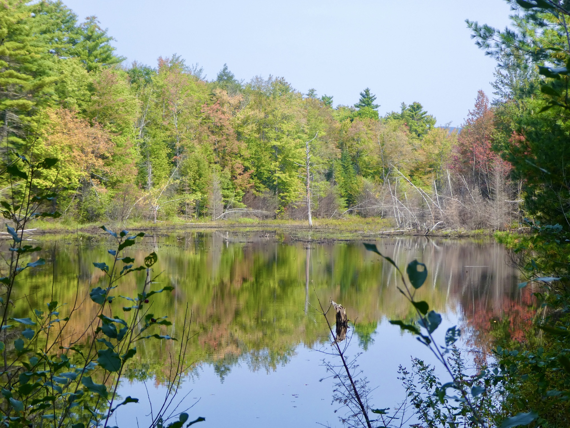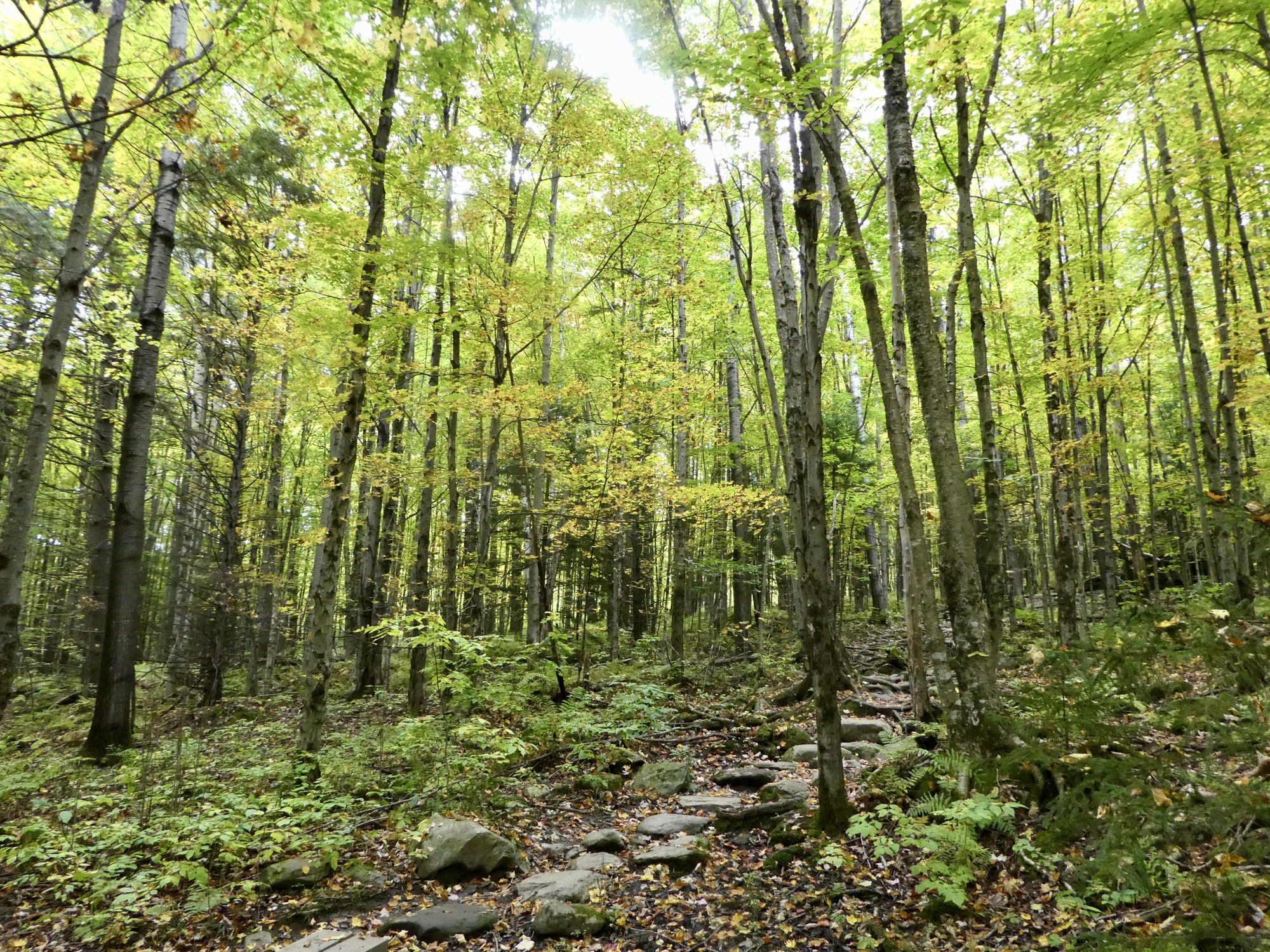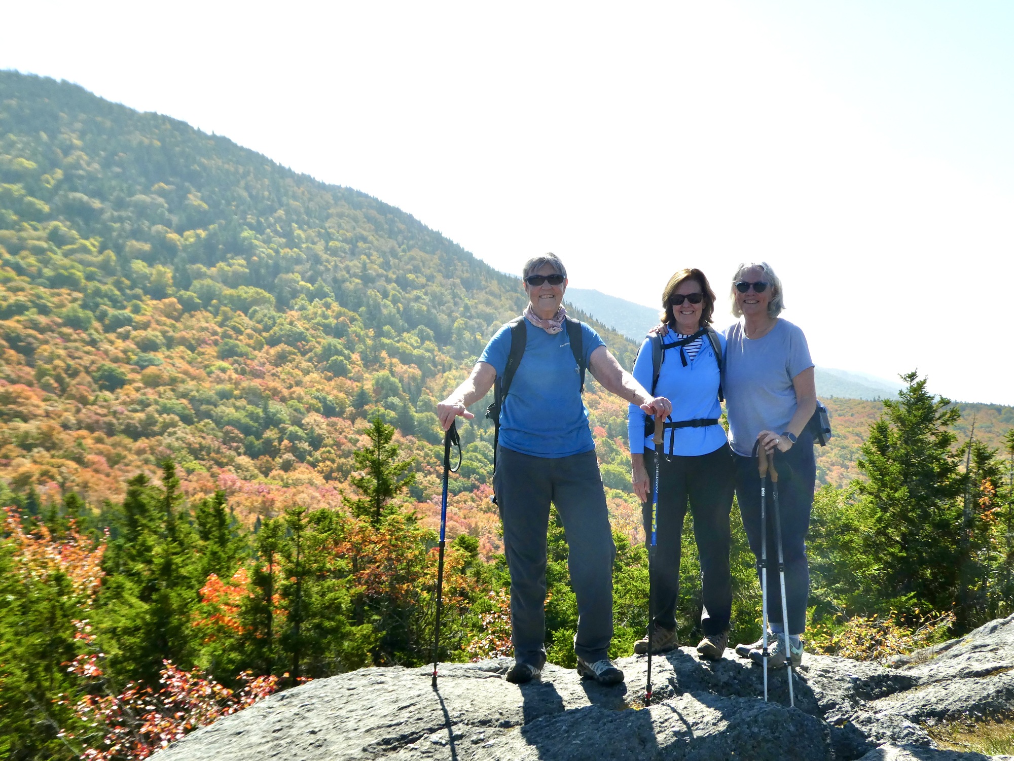 The following morning, we left our heritage behind and set off to pursue some current passions: biking and hiking. Jeanie had booked two nights at B&B outside of Andover, NH, located on the 59 mile Northern Rail Trail. I’d brought Vivien George along for trip and after picking up rental bikes for Jeanie and Ann we spent the afternoon on a 30 mile OAB along on the eastern end of the trail. It was a nice leisurely ride and although the leaves had not yet peaked, there were plenty of reds and golds to warm the heart of a former New Englander.