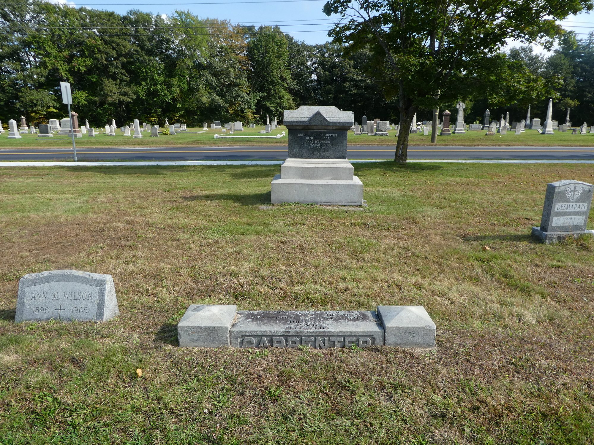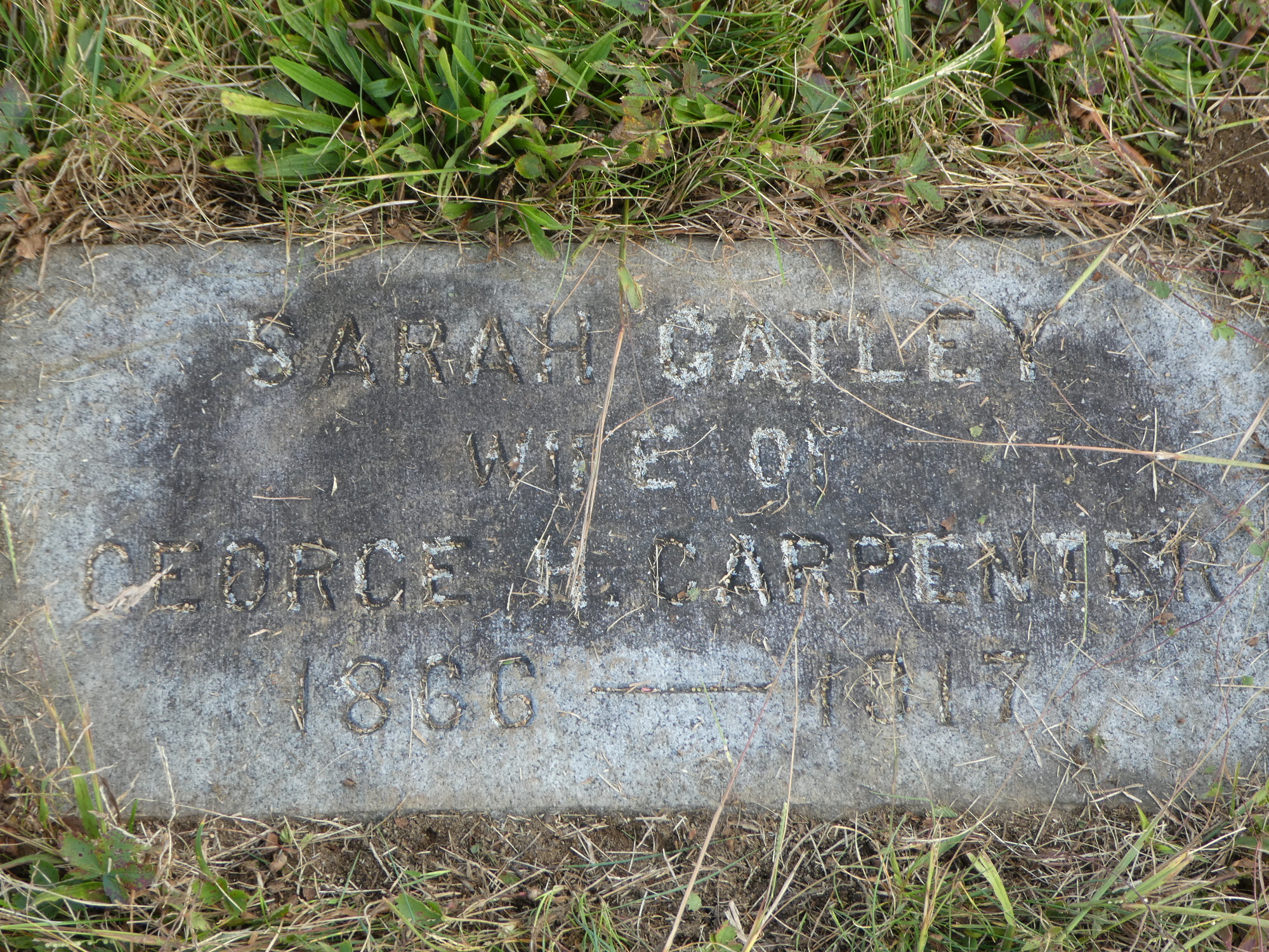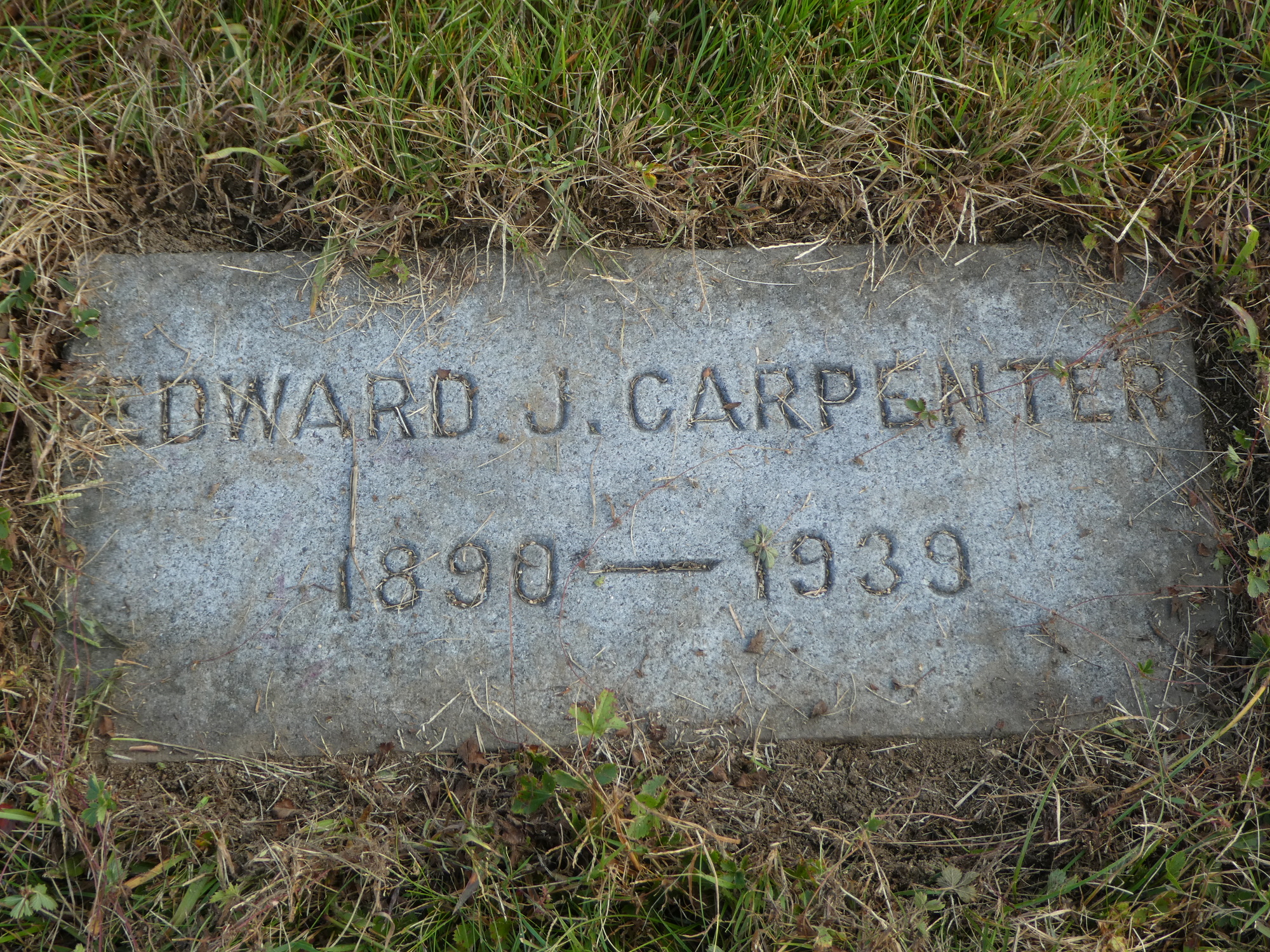 Our primary mission in Keene was locating Carpenter family burial sites in Keene’s St. Joseph’s Cemetery. There was uncertainty as to whether our grandfather Edward Joseph was interred there, but we were hoping to at find some grave markers from our line of the Keene Carpenters. Remarkably, we found not just a gravestone for our grandfather Edward, but also those of our great-grandmother Sarah Gately, our great, great-grandparents Gregory and Bridget, and several of their children, our great-great uncles.