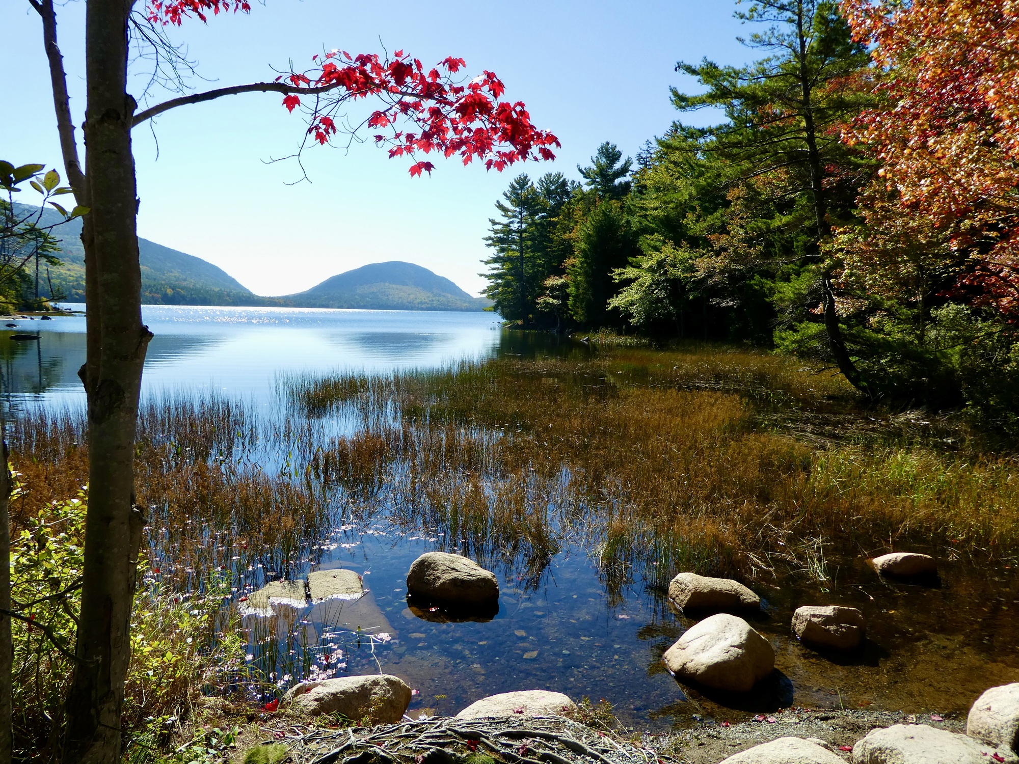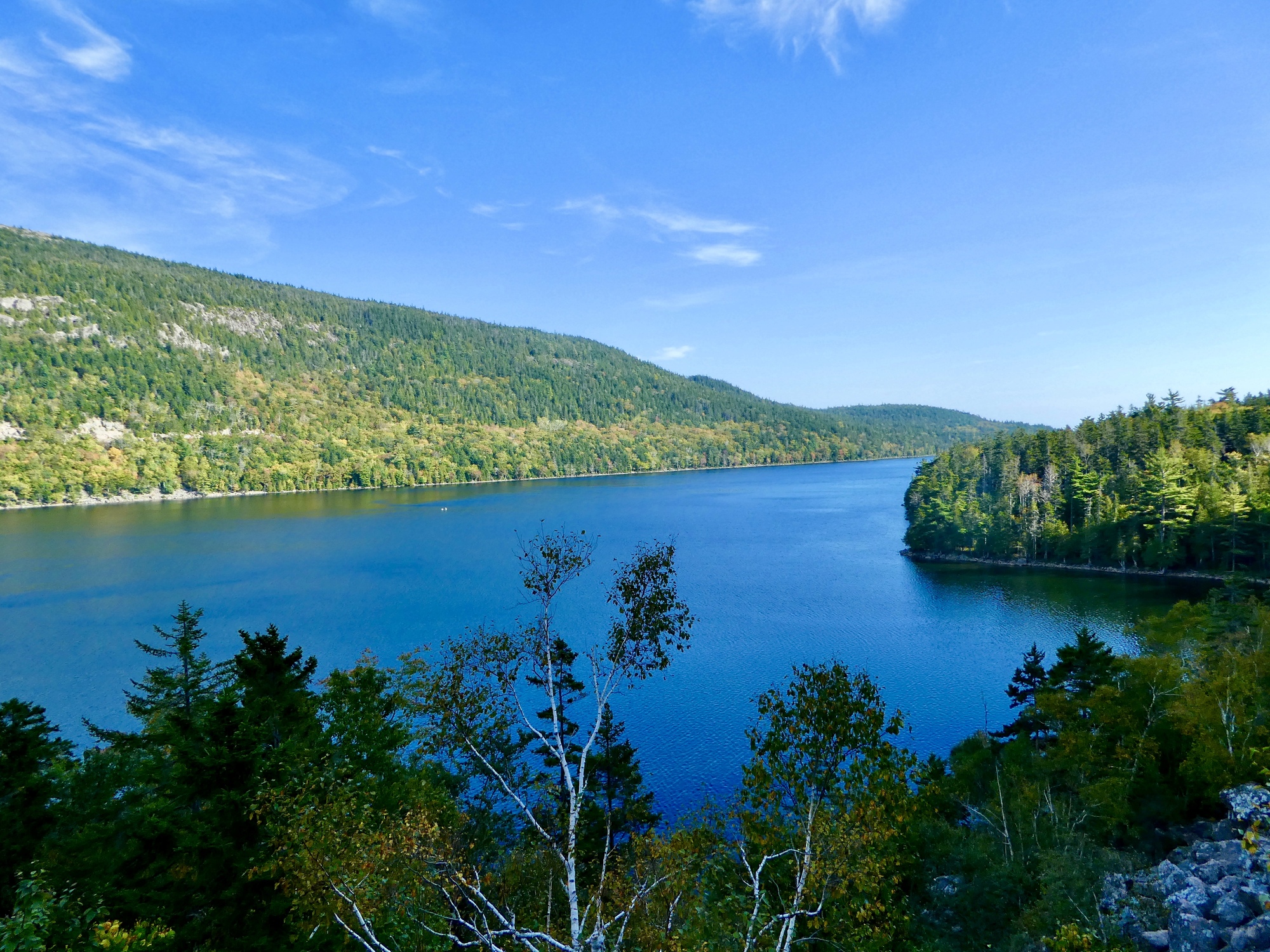 Ann and I had booked an apartment for three nights in Bar Harbor in the hope of indulging ourselves in lobster, blueberries, cycling, and hiking. Our first day was spent exploring Acadia on two wheels. After picking up Ann’s rental bike, we cycled into the park and followed the Carriage Roads down the west side of Eagle Lake, past Bubble Pond and up Day Mountain before stopping to enjoy our picnic lunch on the lawn looking over Jordan Pond. It was fantastic cycling - miles of wide, crushed-rock, car-free roads that wound up, down, and around the contours of the land.