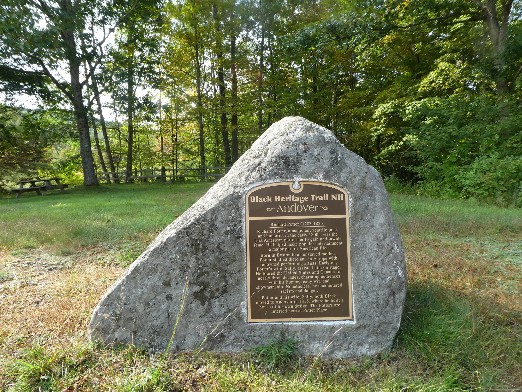 The next morning brought sunshine, a hearty breakfast, and multiple stories from our long-winded host. We finally tore away and headed west toward the Danbury Country Store and points beyond. Our first stop was the Potter Place Railroad Station, which dates from 1874 and houses the Andover Historical Society Museum. Potter Place is on the Black Heritage Trail of New Hampshire, honoring Richard Potter, an early 19th century magician and ventriloquist who gained national fame touring throughout the US and Canada with his wife Sally before settling in this small community. We spent quite a bit of time in Potter Place, visiting the small Potter family graveyard as well as the vestiges of their homestead and garden.