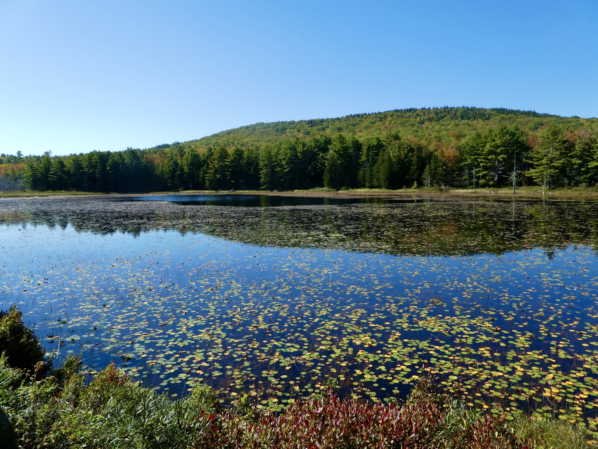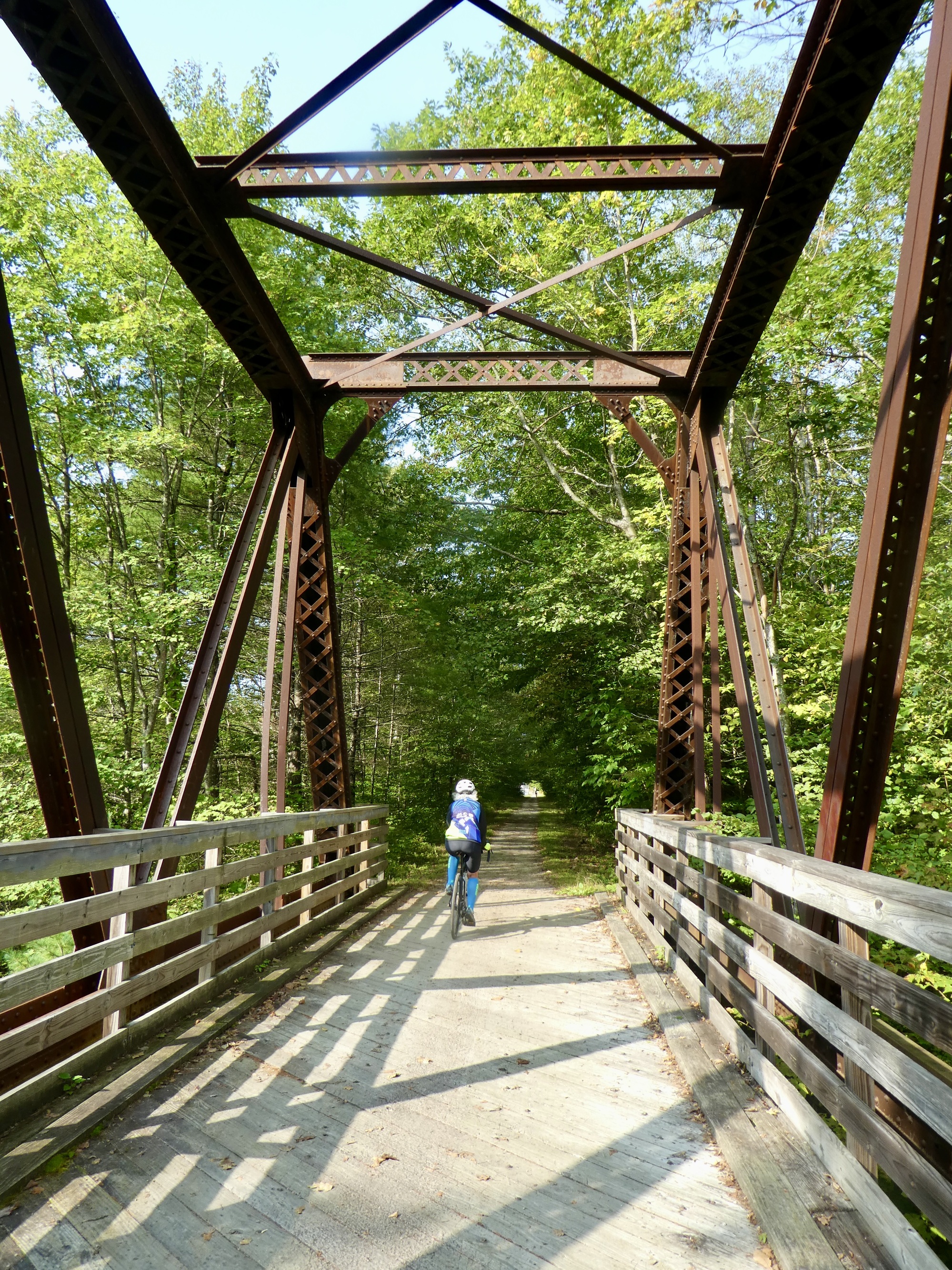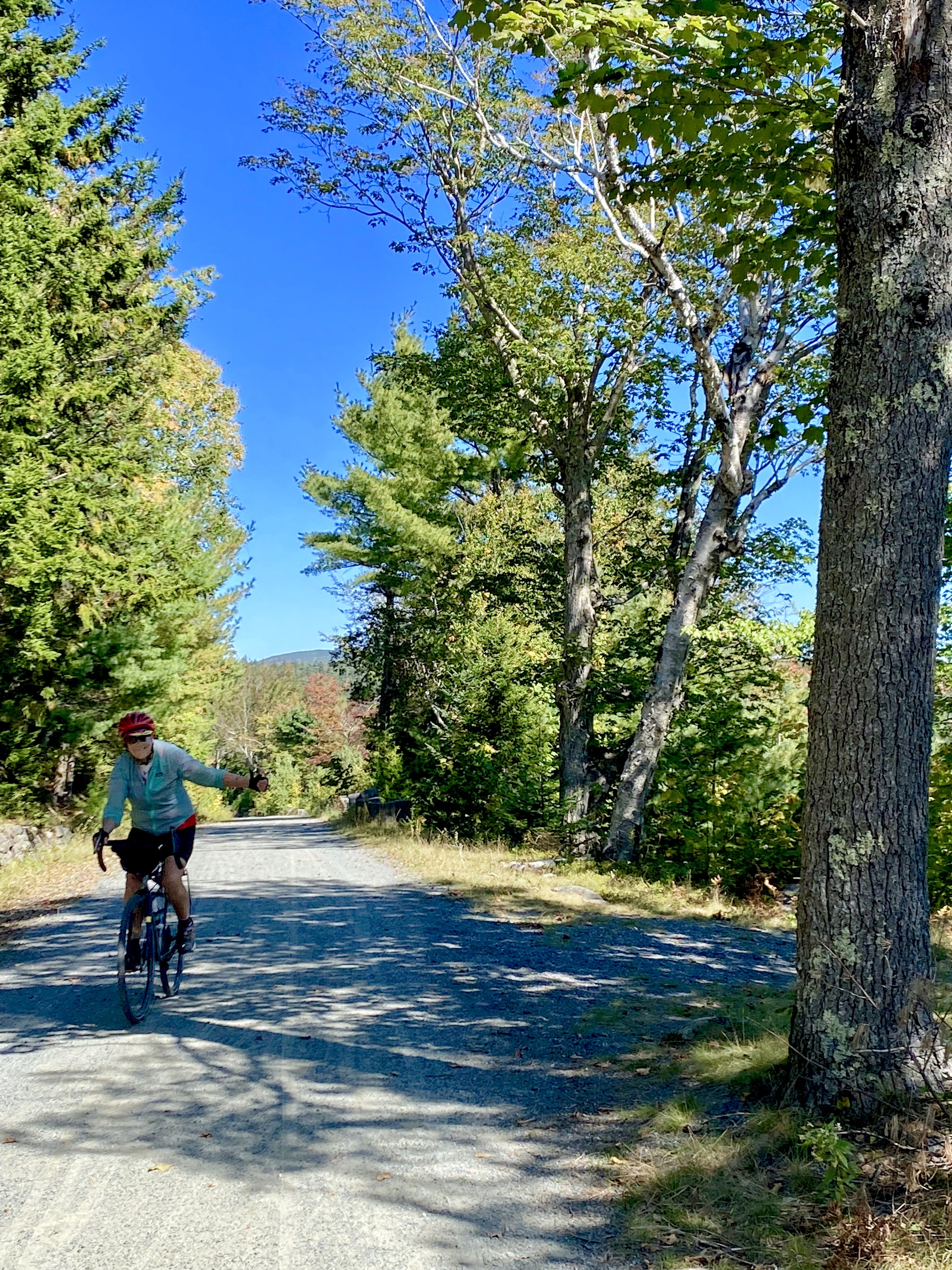Our route after lunch took us through the western section of the Carriage Roads where we encountered fewer cyclists, more rolling terrain, and Ann got a flat tire. Curiously, the rental bike did not include a repair kit, only a phone number to call for help. Luckily, we were not far from the nearest road access where help arrived with a new bike for Ann. Back en route, we ascended to the highest point of the day and had a wonderful three mile descent to the western shore of Eagle Lake. The Carriage Roads had exceeded all my expectations and I highly recommend a cycling trip to Acadia. Unfortunately, the lobster roll I had for dinner was hugely overpriced and very mediocre.