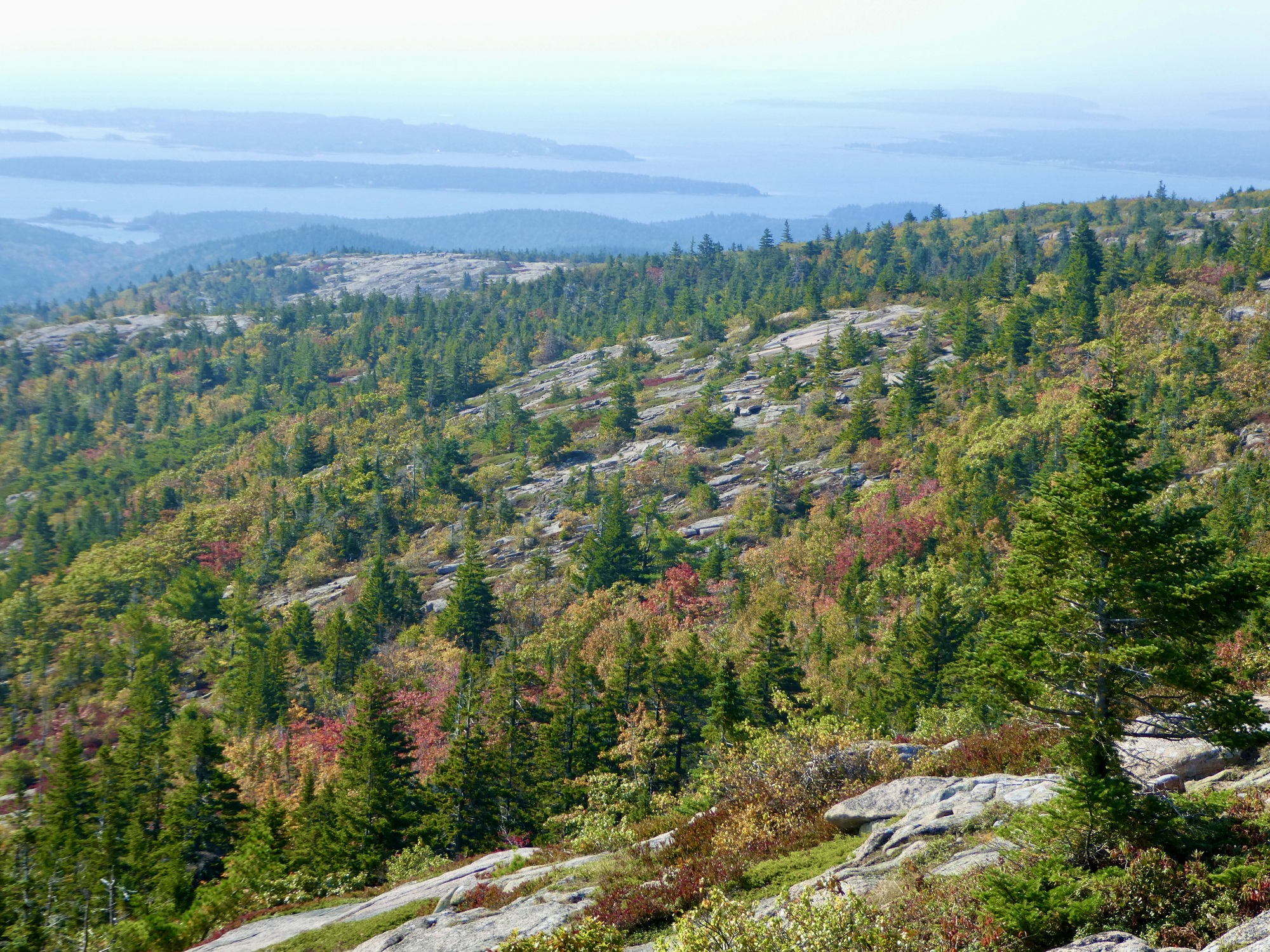 The goal for our final day in Maine was the ascent of Cadillac Mountain, the highest peak on the US Atlantic Coast. The hike was neither long nor strenuous, but I did manage to strain my knee while navigating a fairly high step. It bothered me a little at the time, but was completely forgotten by the time we were at the top, looking out over the small islands dotting the bay and the Atlantic Ocean visible in the distance. We descended fairly rapidly as we’d decided to head back to Connecticut directly after our hike. Ann caught an early flight the next morning and Vivien George and I headed back to North Carolina, dreaming of our next adventure.