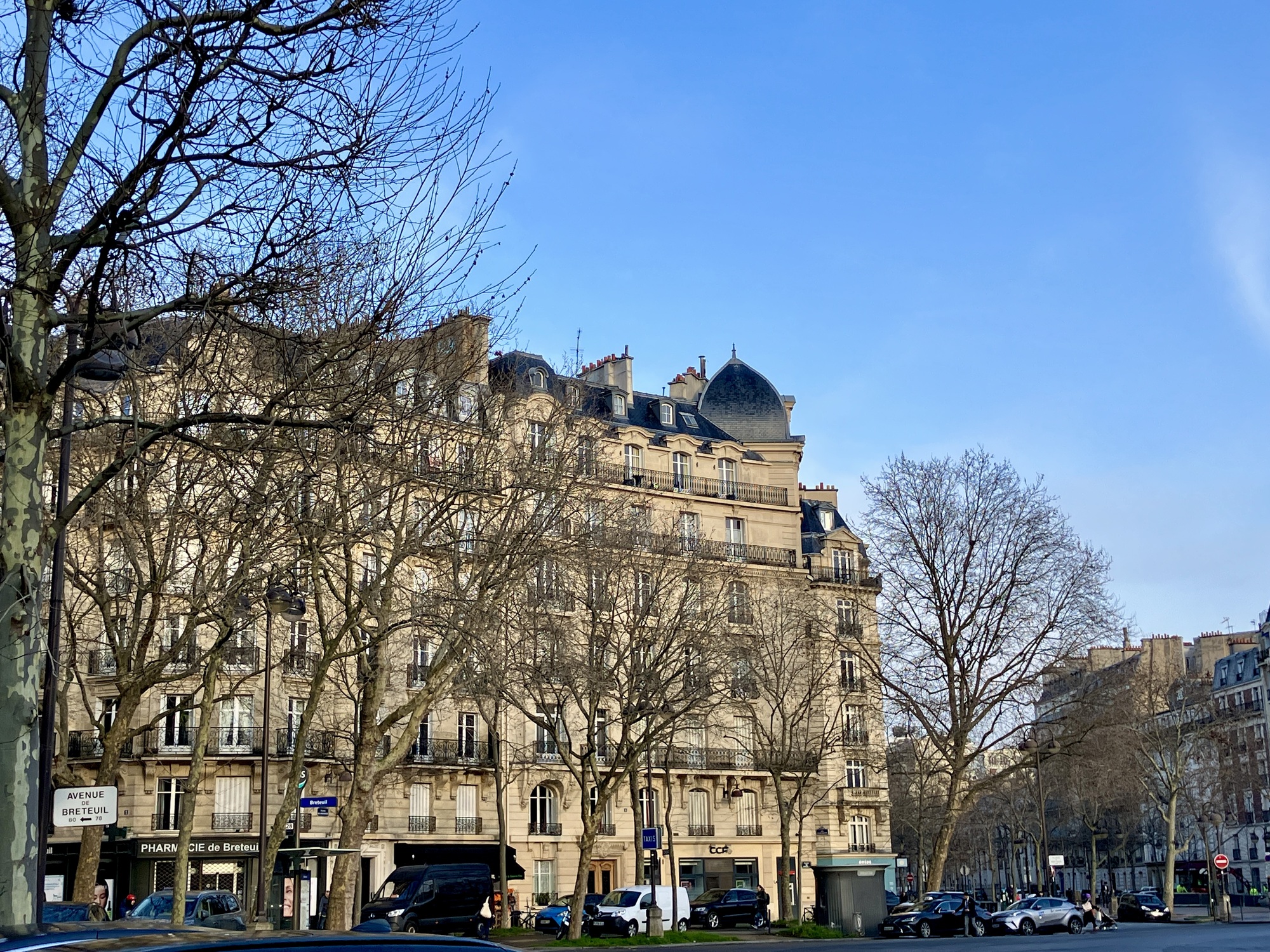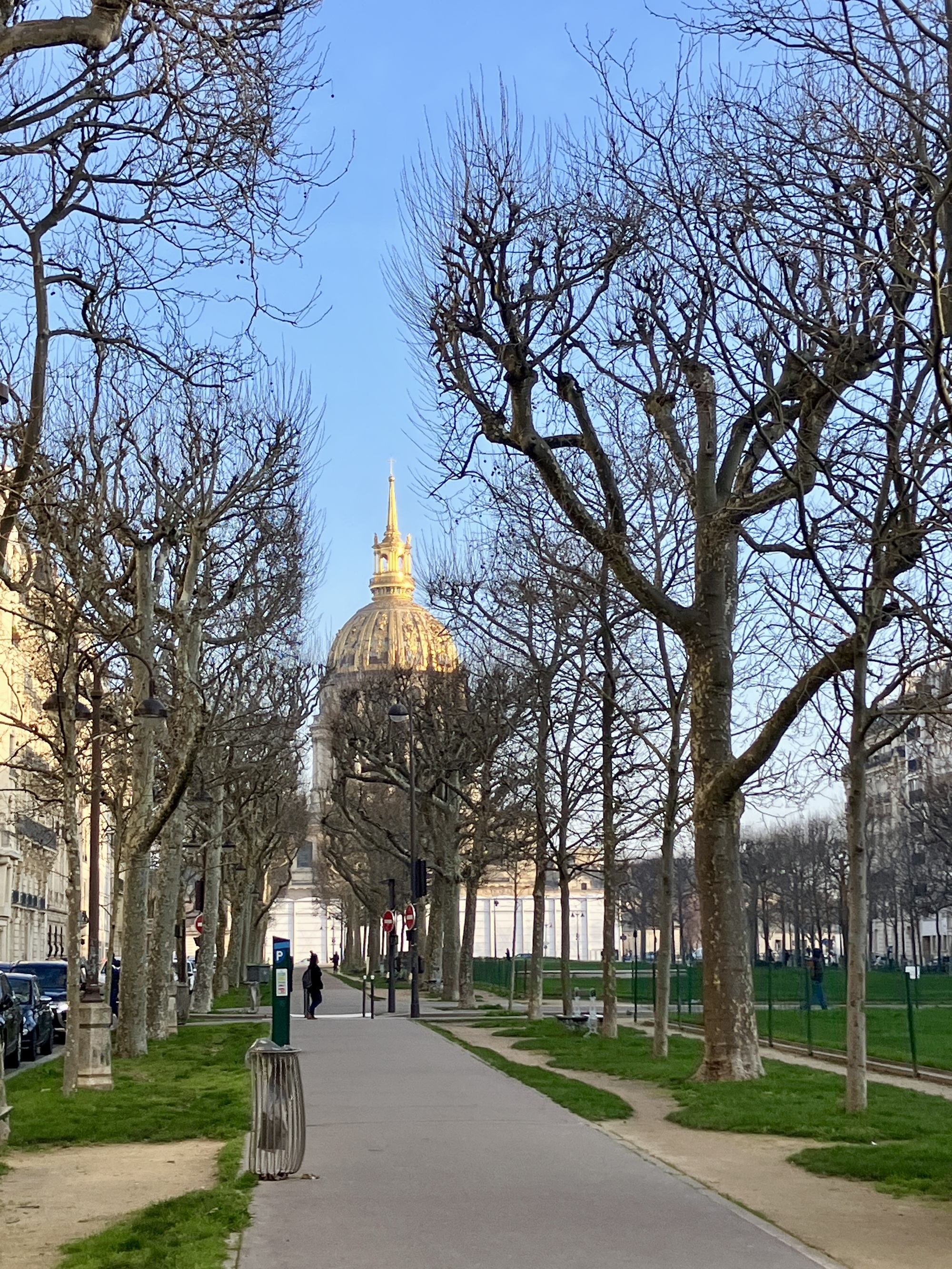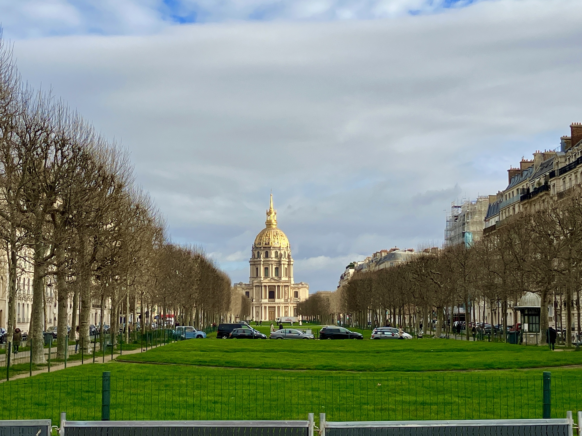 Looking across the park along L'avenue de Breteuil - the lawn area is fenced off while the grass is in "hibernation" - soon it will be full of picnickers, bathers, and children at play