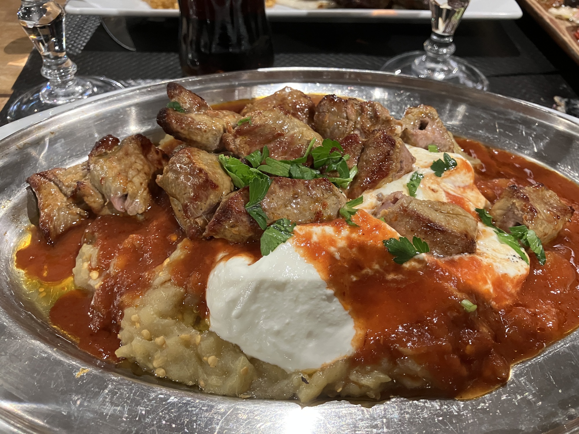 Fellow Lutece student Zerin, originally from Turkey, led a group to Restaurant Ella, her favorite Turkish restaurant in Paris. My choice was Ali Nazik, lamb brochette with garlic eggplant purée. Yum!