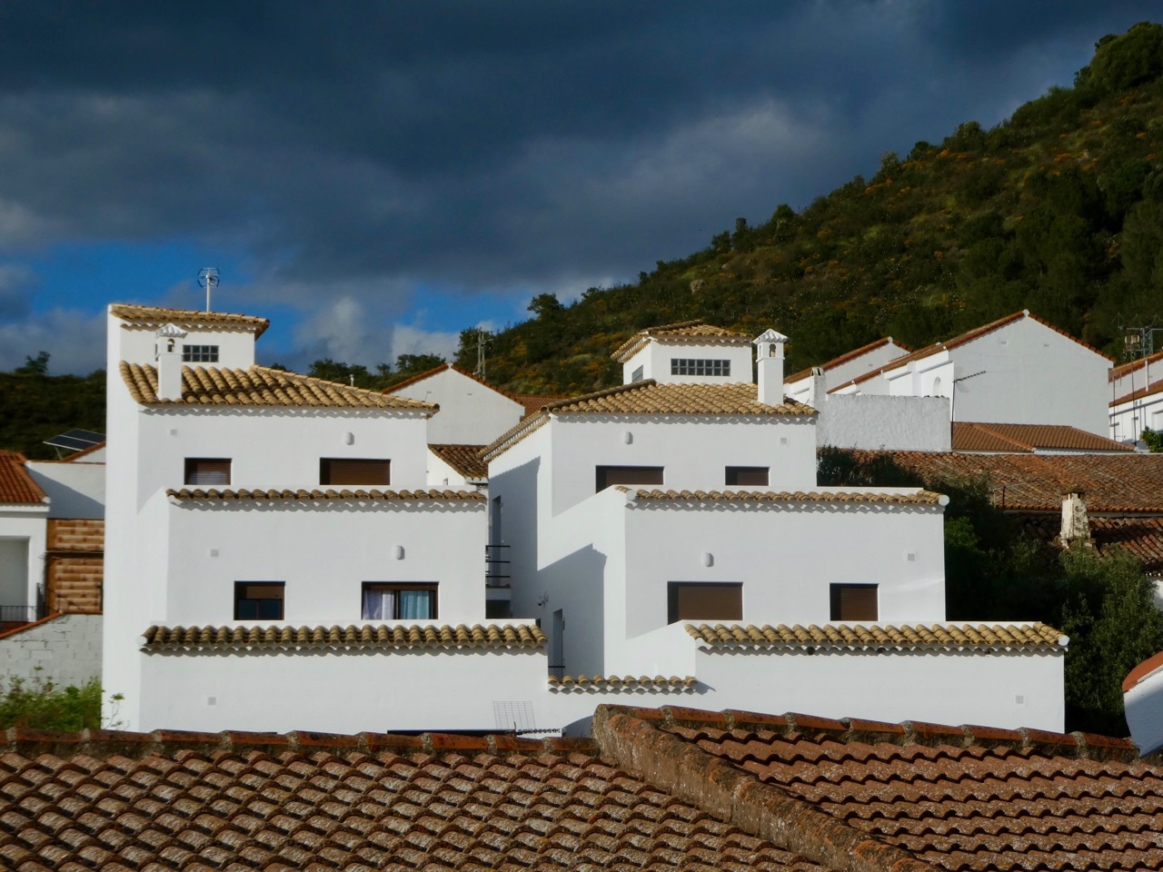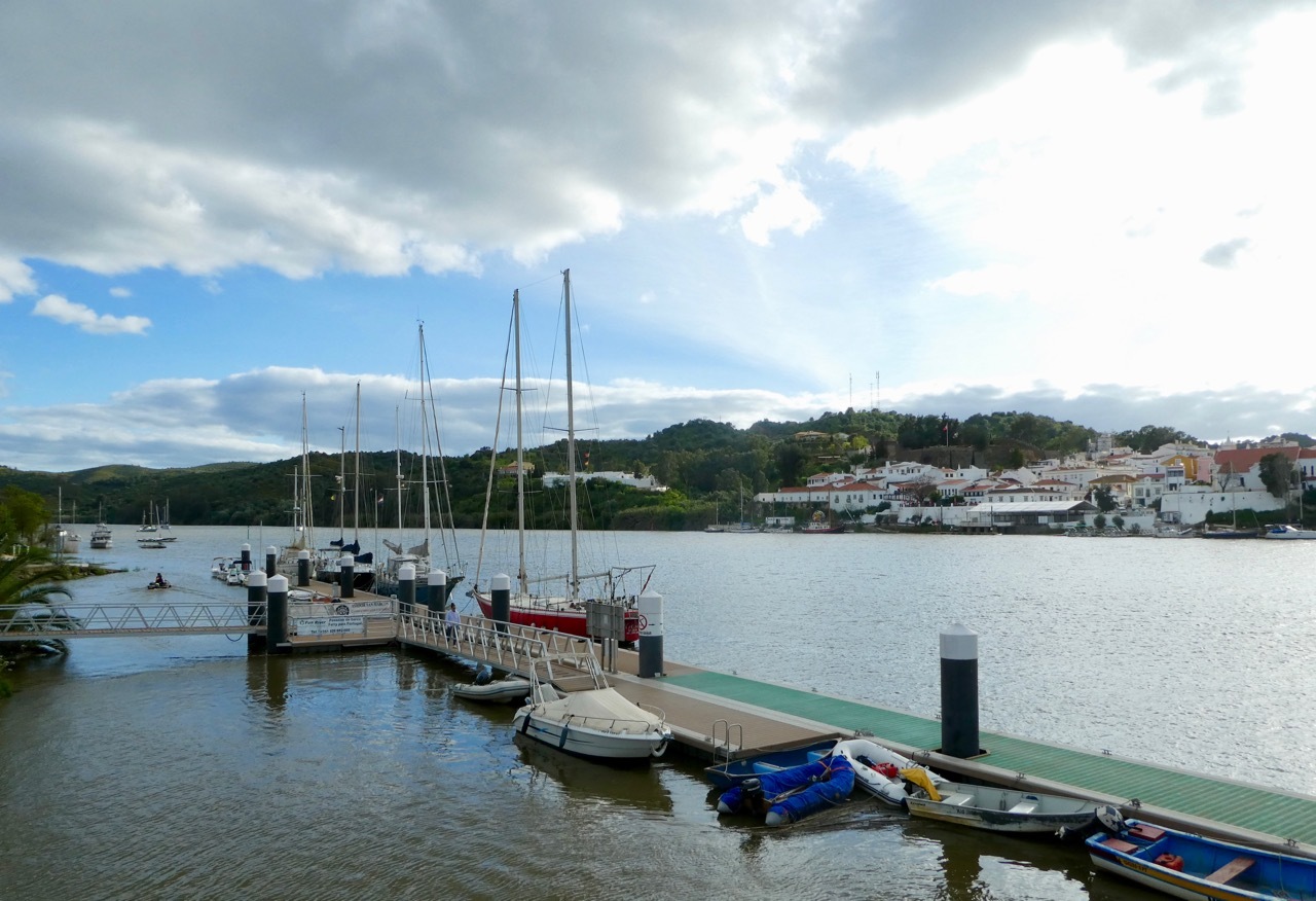 Sanlúcar de Guadiana lies on The Guadiana River, which forms the border between Spain and Portugal - Sanlúcar sits on the east bank of the river almost directly across from Alcoutim, Portugal. There is no bridge between the two towns, only a small ferry that transports people, pets, and bikes. After getting cleaned up, my top two priorities were to check out the ferry, and buy some groceries. Third on the list was to explore the town. The ferry schedule was posted at the dock, I picked up some granola and yogurt for dinner/breakfast, and then had a nice walk about town. The sun continued to poke through the clouds, illuminating this white washed town in a late afternoon glow. Though disappointed at not completing the days route, I was at peace with myself and very glad to be here. Portugal, here I come!