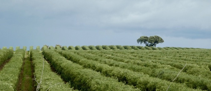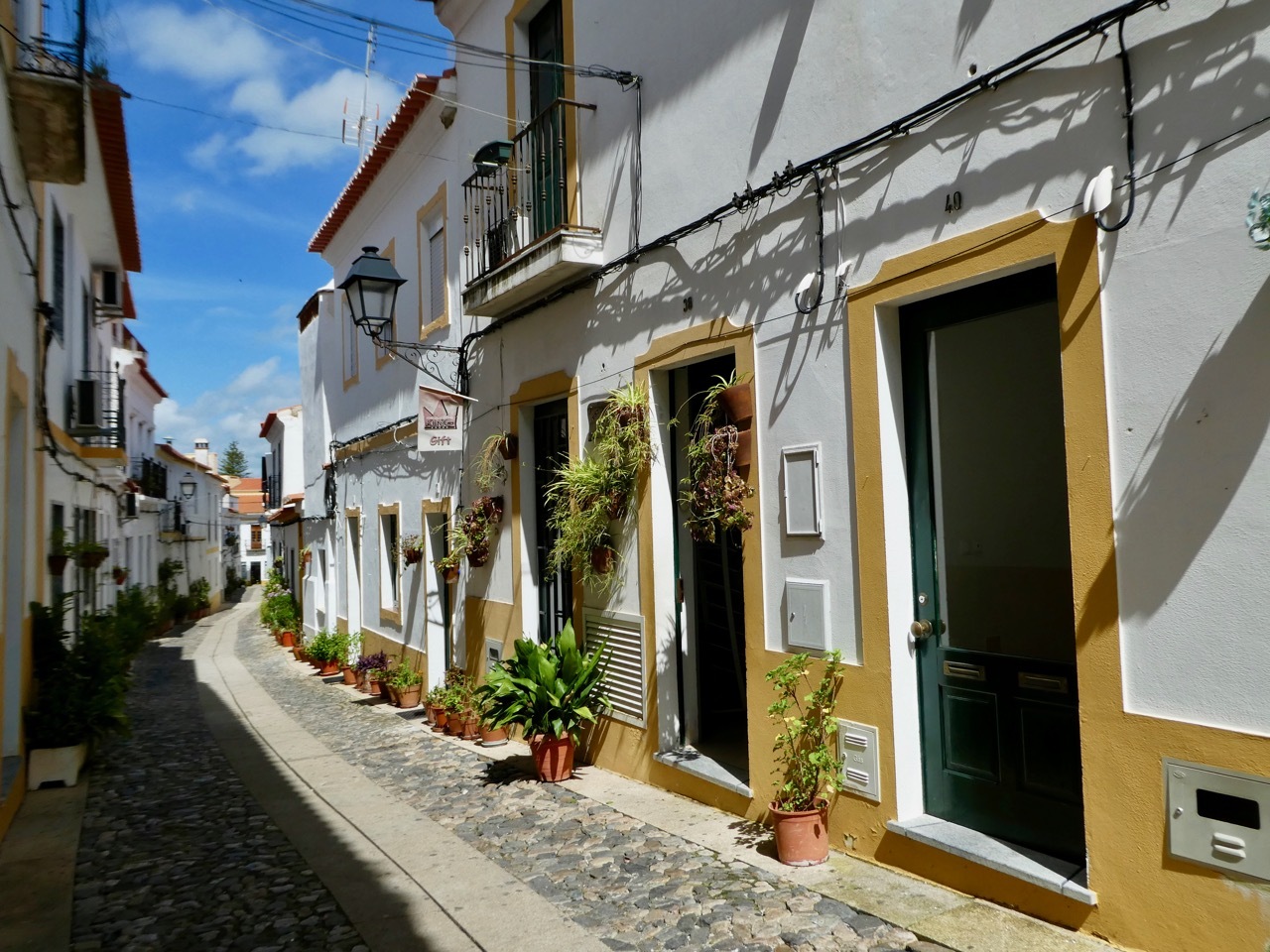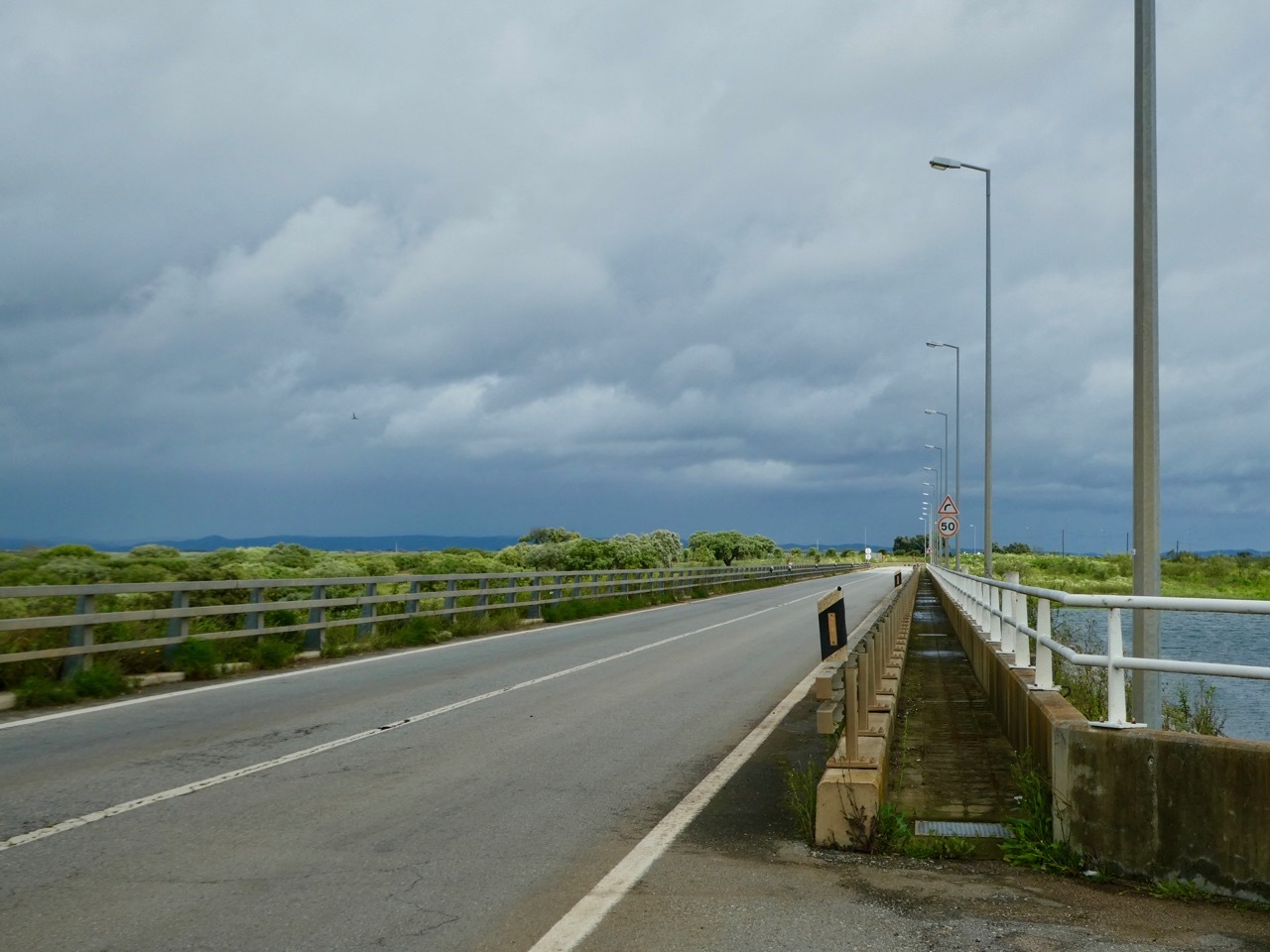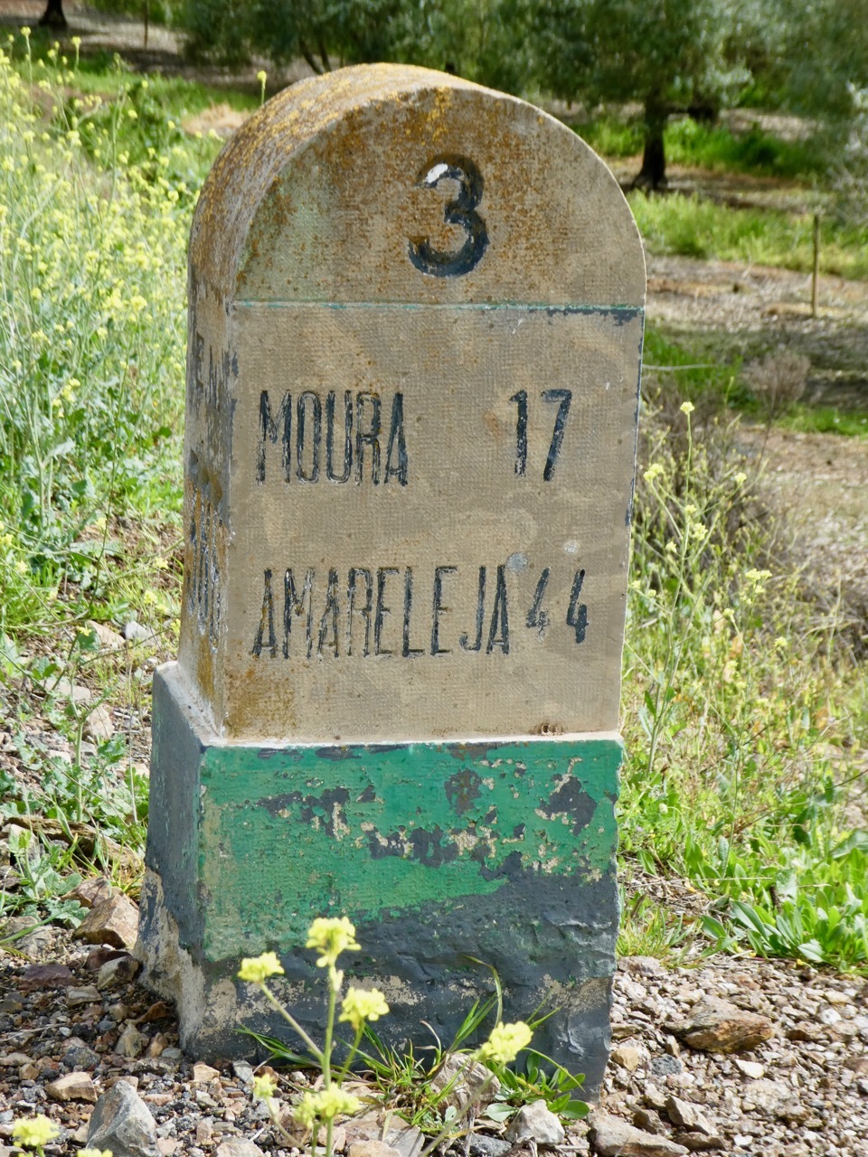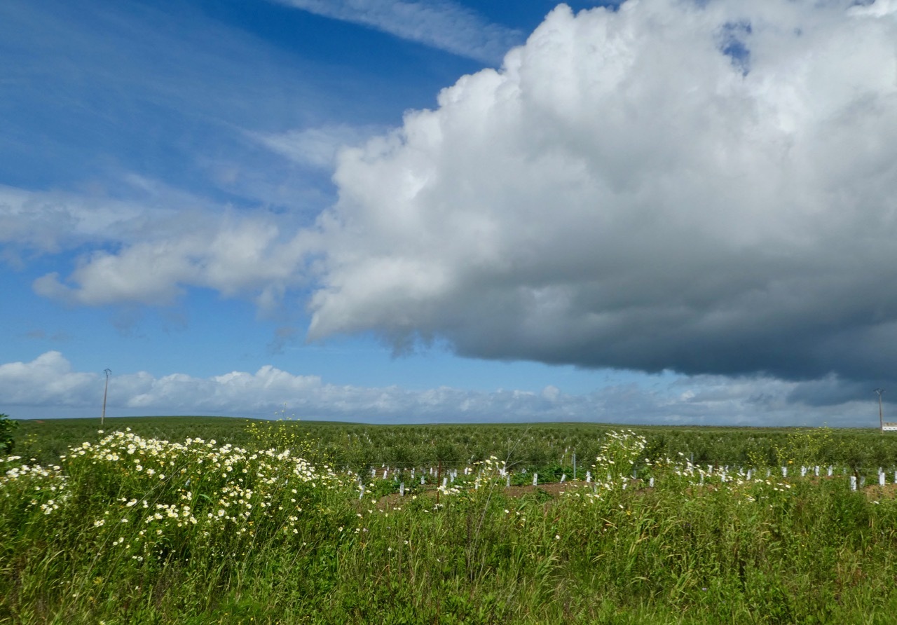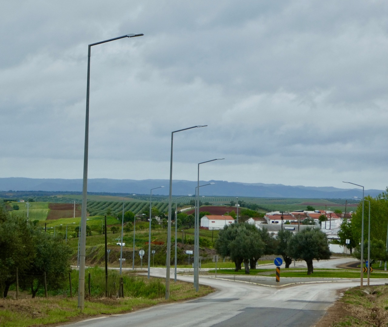 The N265 road to Brinches was a little more trafficked than I anticipated, one favored by farm trucks. However, just south of Brinches I veered off onto N386, a smaller road with virtually no traffic that took me all the way to the outskirts of Moura. Agriculture dominated the landscape, from the small shanties of farm workers to the rows upon rows upon rows of olive trees. Blue sky and sun made their appearance, and it sometimes seemed as if I travelling in a narrow strip between storm fronts. As it so often does, the sun was energizing, and I rolled along to Moura with nary a care in the world.