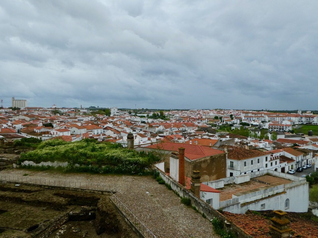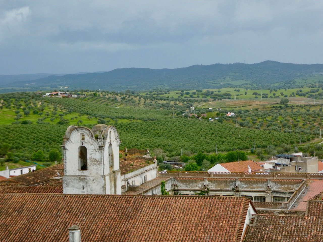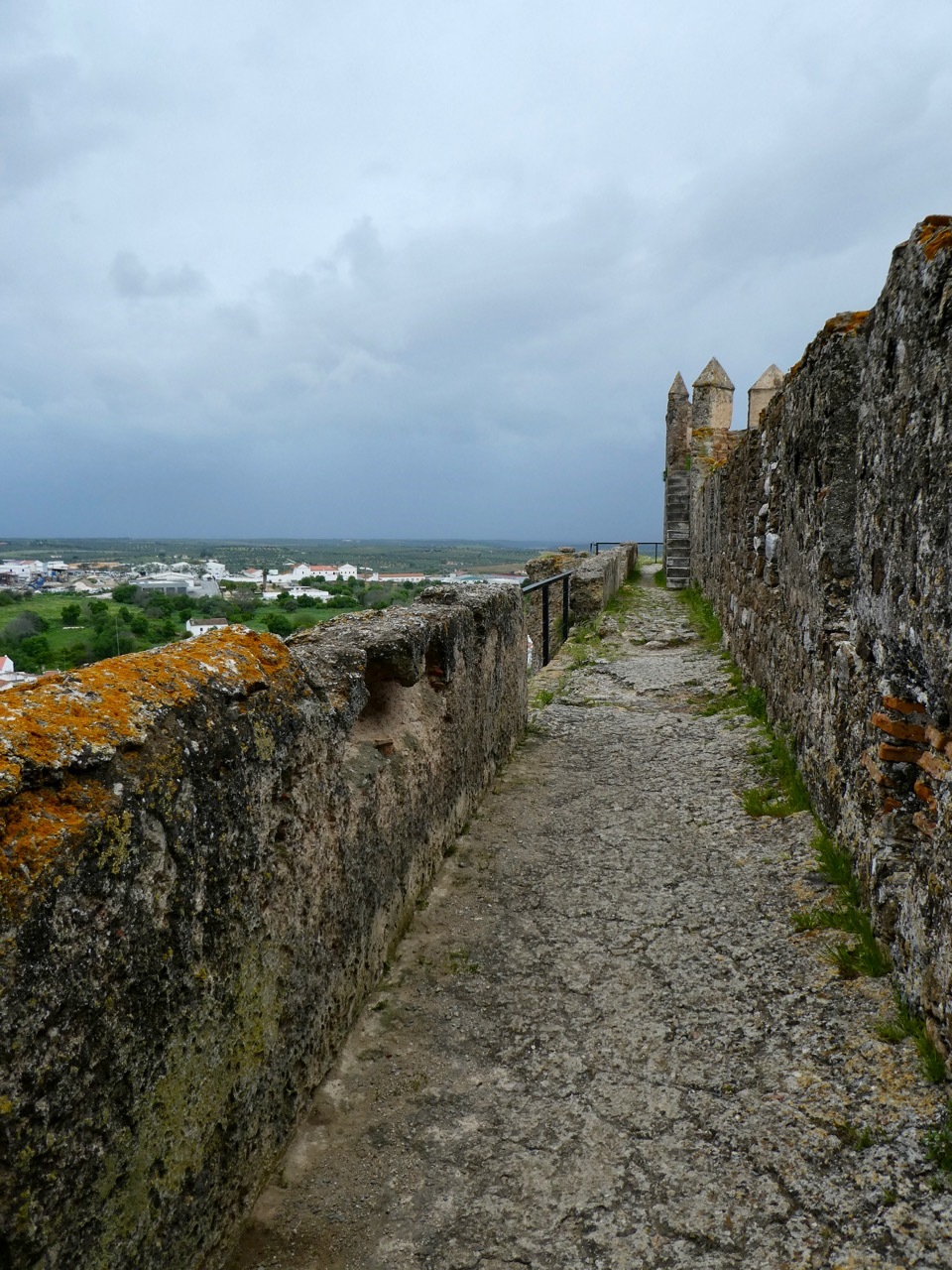 By late afternoon, the off-again, on-again rains had stopped so I ventured out to see the Castillo de Moura, which “was for centuries the civic, political, religious, and military center of the city.” Though it had grown quite blustery, I decided to climb up on the walls for a panoramic view over the city and surrounding country side. As I made my way down and exited the castle walls, the rain began in earnest. I quickly donned my raincoat, but was cold and damp by the time I made it back to the hotel. I spent the rest of the evening under the covers, fighting off a cough, and wishing for the warm Iberian sunshine that I so enjoyed last spring.