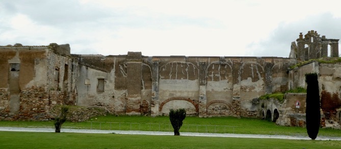 It was a short ride today to Moura, just over 20 miles with what promised to be a mostly brisk tailwind. Though still quite gusty, the winds were predicted to gradually lessen over the next few days, though the rains were persisting through the end of the week. It seemed though, that I would be able to get to Moura without getting a good sopping. After thanking the very kind staff at the Beatriz, I made my way through the streets of Serpa, heading towards Brinches under grey skies.