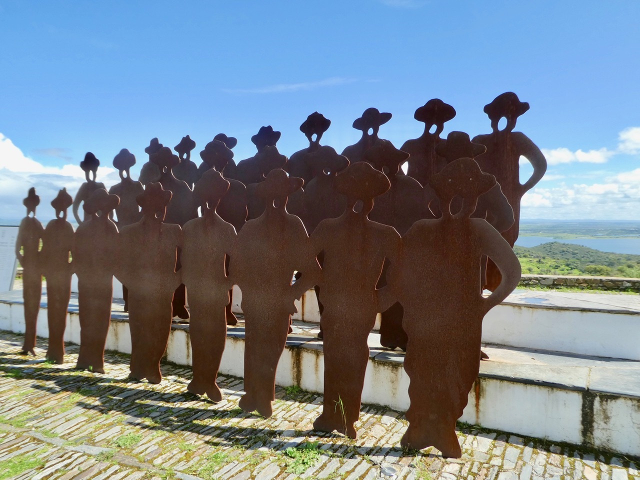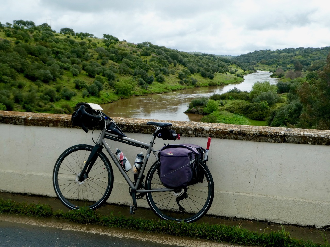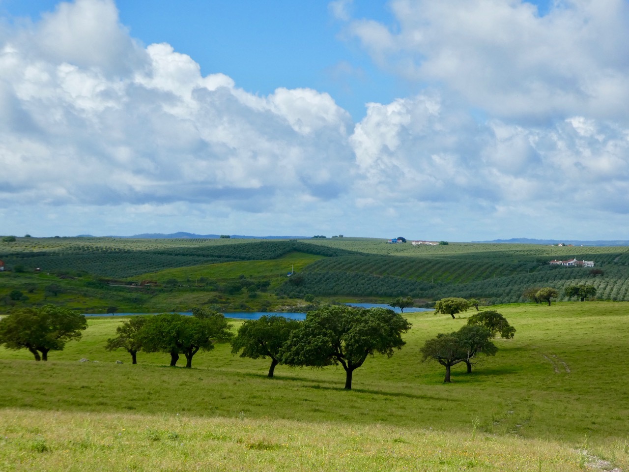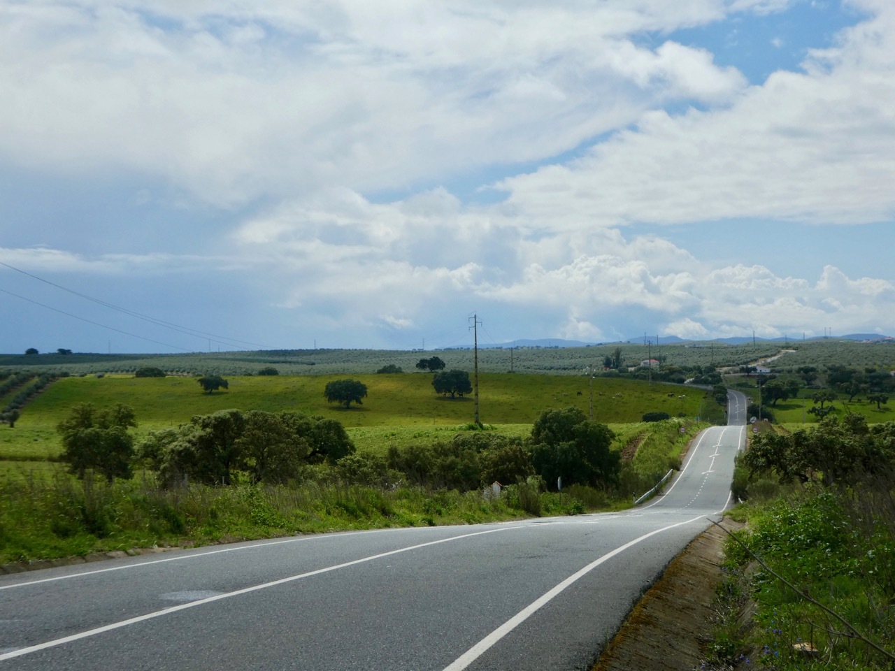 The next twelve miles north to Maurão were a mixed bag – internal misery countered by uplifting scenery. First, the good news. The gently rolling terrain, lush landscape and quiet, well-surfaced road made for an outstanding ride. I passed across sections the Grande Lago Alqueva, the largest man-made lake in Europe, a reservoir formed by “impounding” the Guadiana River. The bad news was that I was feverish, alternating between being too hot and too cold. A cloudburst hit a few miles outside of Maurão had me limping into the city, wandering through narrow, one way alleyways that are characteristic of many places in Portugal. I didn’t find the hot coffee and pastry I was seeking, but did find a sunny spot in a small park where I nourished soul and my stomach with my picnic sandwich.
