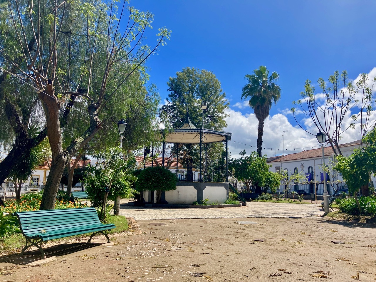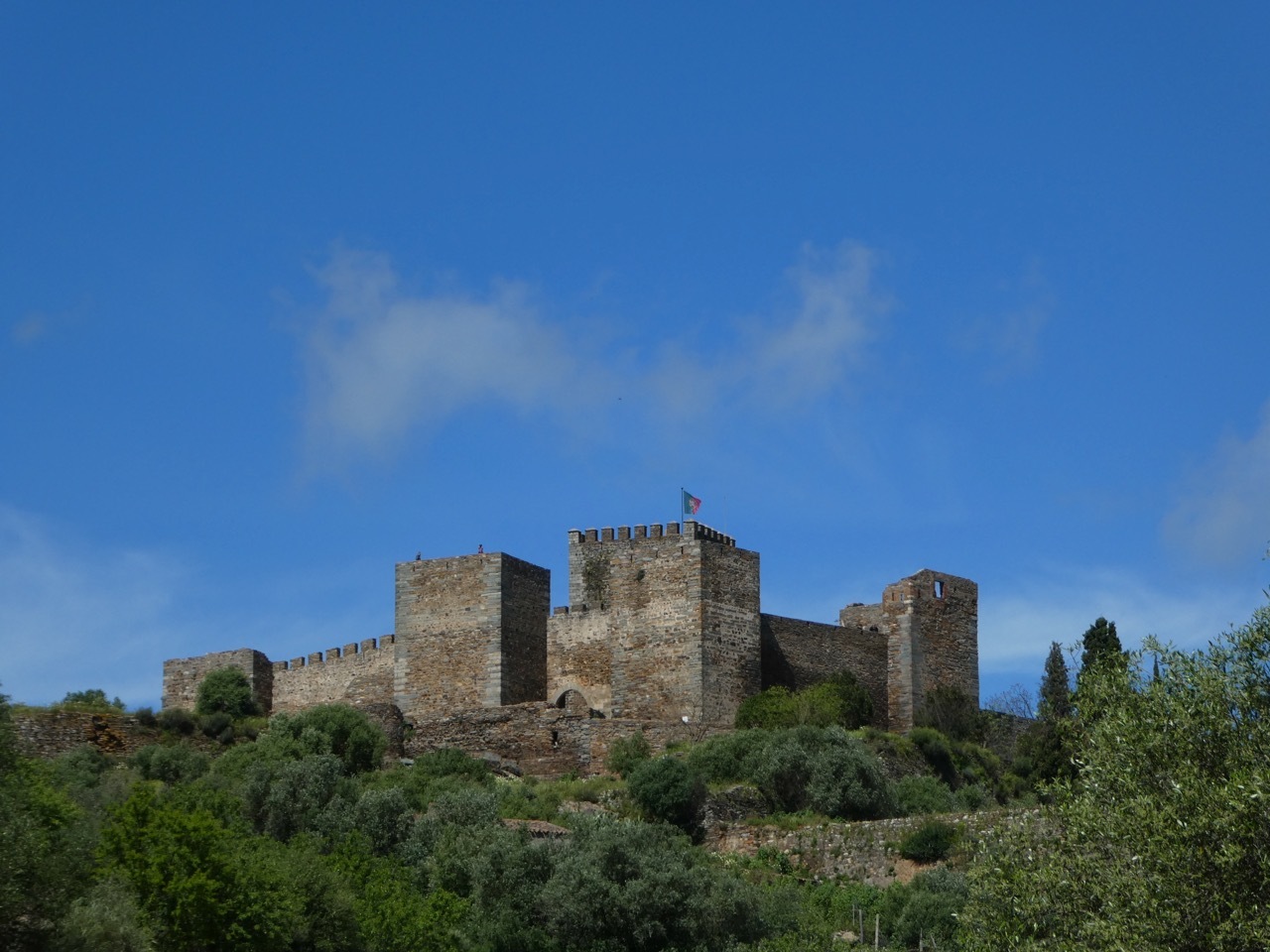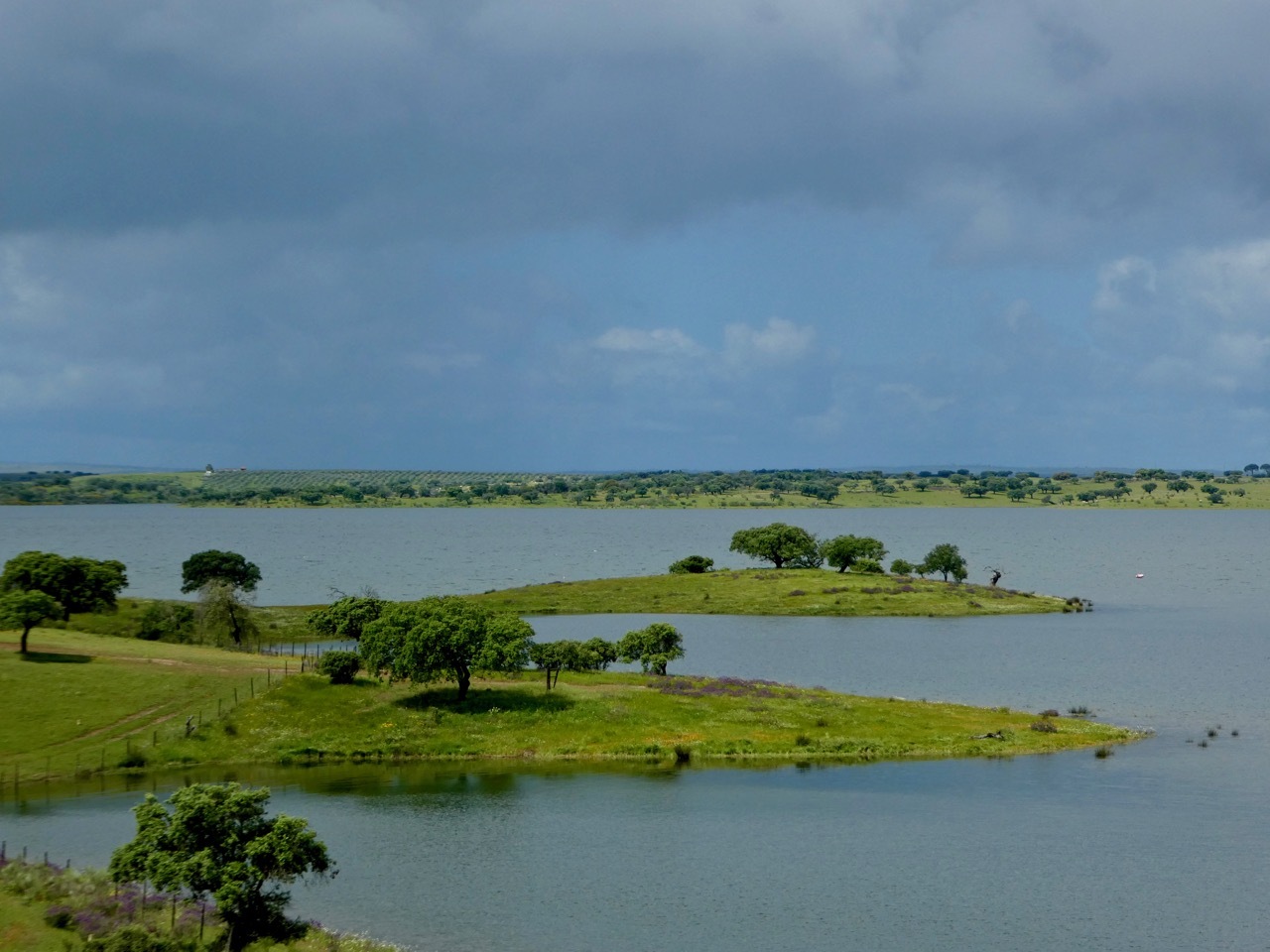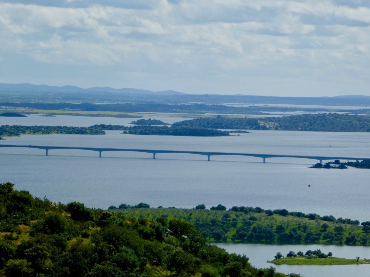 The next twelve miles north to Maurão were a mixed bag – internal misery countered by uplifting scenery. First, the good news. The gently rolling terrain, lush landscape and quiet, well-surfaced road made for an outstanding ride. I passed across sections the Grande Lago Alqueva, the largest man-made lake in Europe, a reservoir formed by “impounding” the Guadiana River. The bad news was that I was feverish, alternating between being too hot and too cold. A cloudburst hit a few miles outside of Maurão had me limping into the city, wandering through narrow, one way alleyways that are characteristic of many places in Portugal. I didn’t find the hot coffee and pastry I was seeking, but did find a sunny spot in a small park where I nourished soul and my stomach with my picnic sandwich.