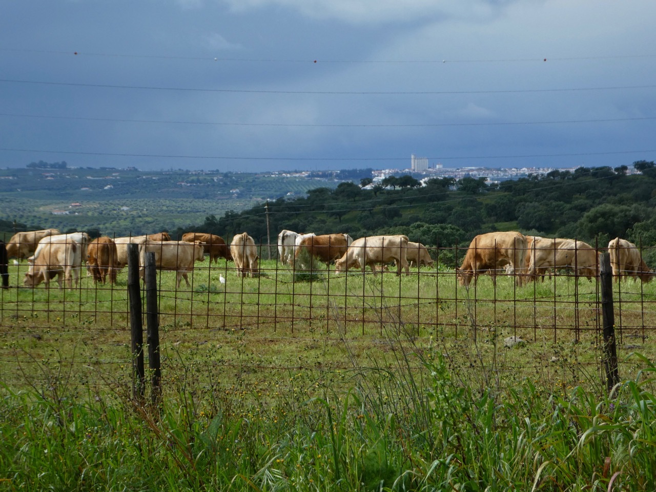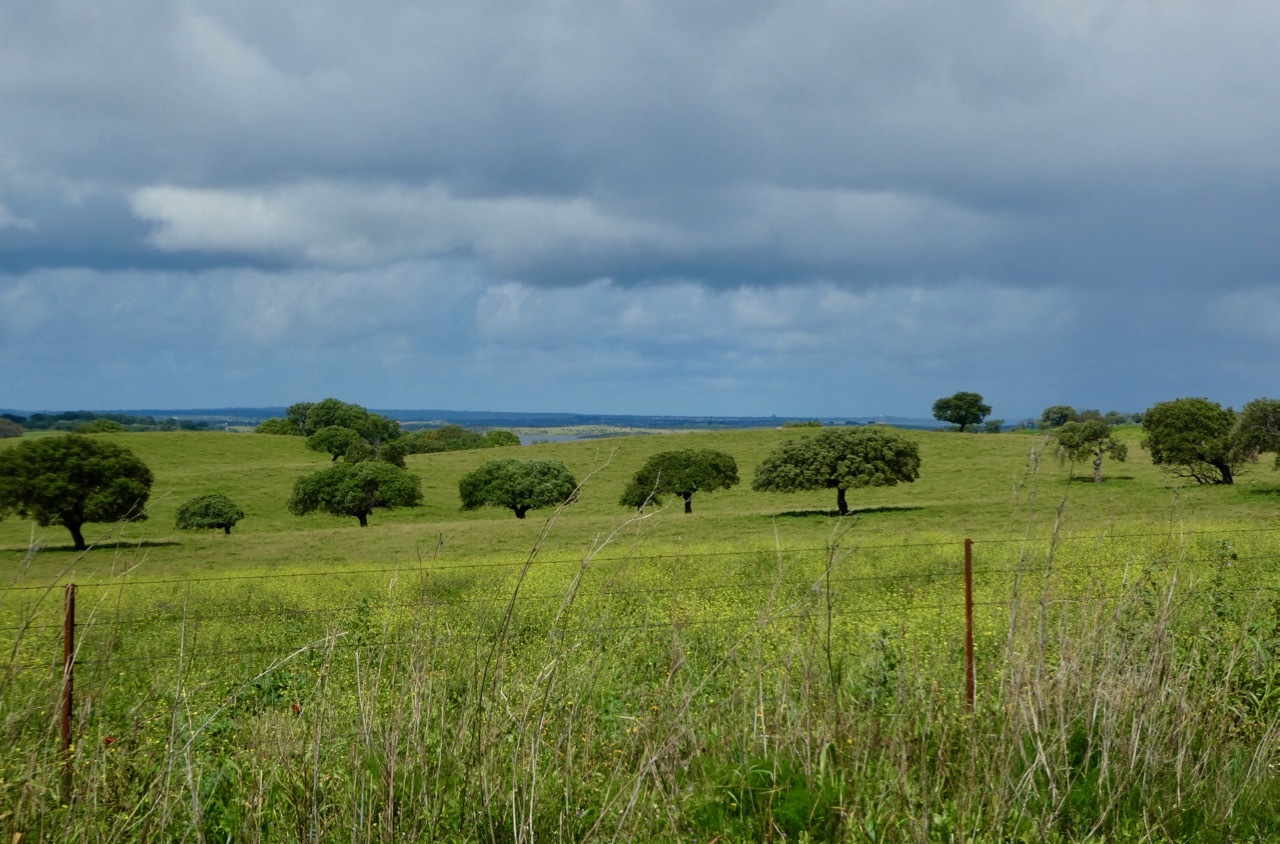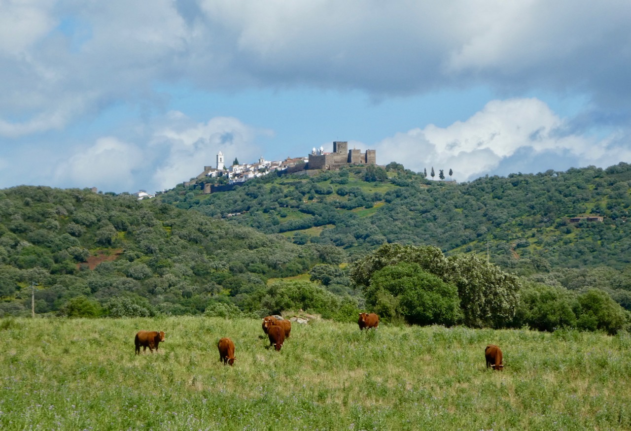 I woke this morning feeling sluggish after a fitful night of coughing – in hindsight I probably should have stayed off the walls of the Moura Castle. It was to be another day of intermittent rain and cold winds in the 15-20 mph range. I filled up on breakfast and set out for Monsaraz under gray cloudy skies, hoping that splotches of sunshine would light up my day.