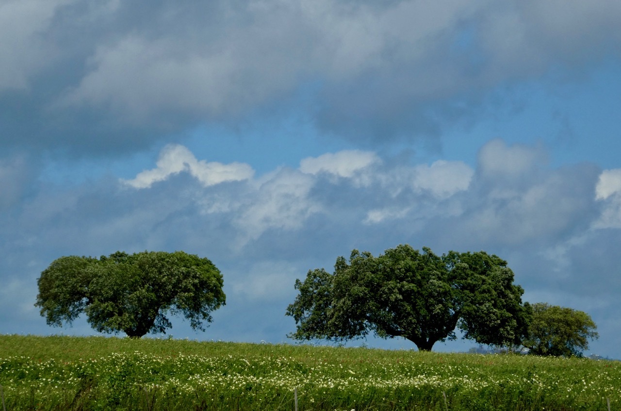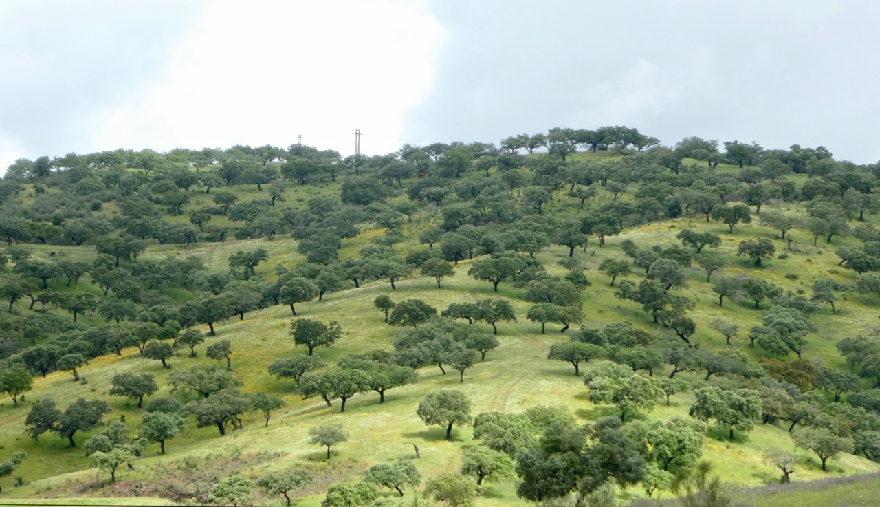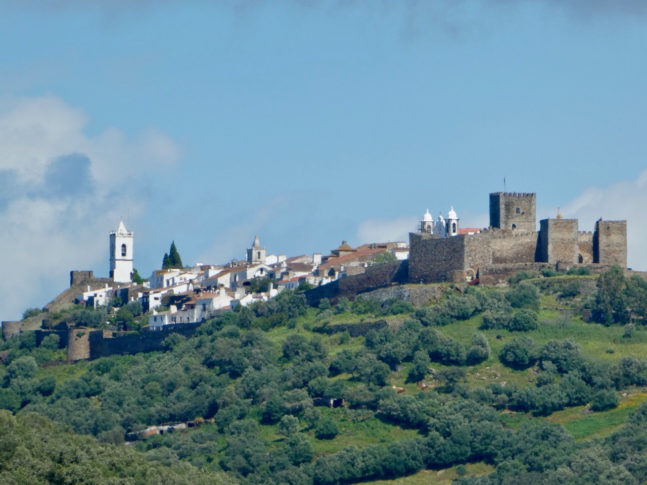 I woke this morning feeling sluggish after a fitful night of coughing – in hindsight I probably should have stayed off the walls of the Moura Castle. It was to be another day of intermittent rain and cold winds in the 15-20 mph range. I filled up on breakfast and set out for Monsaraz under gray cloudy skies, hoping that splotches of sunshine would light up my day.