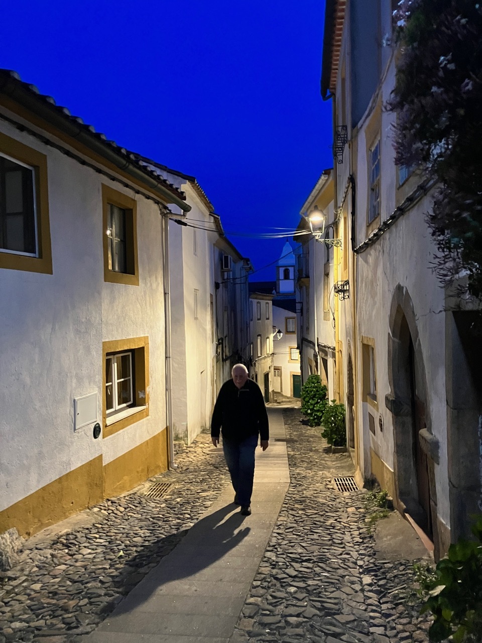 At first, the trail was a two-track dirt road that wound through small farms and residences. It later narrowed, becoming a small path that sometimes disappeared in the high grass. There weren’t really any views, until I rounded a corner and saw…the castle of Castelo de Vide. I was headed in the wrong direction!! I was hot and getting hungry and not inclined to reverse course. So I continued on my way, eventually passing through the gates of Castelo de Vide. I made my way up the hill to the town center, where I found Janos and Suzanne just finishing their lunch. I joined them for a cold fanta and a few laughs.