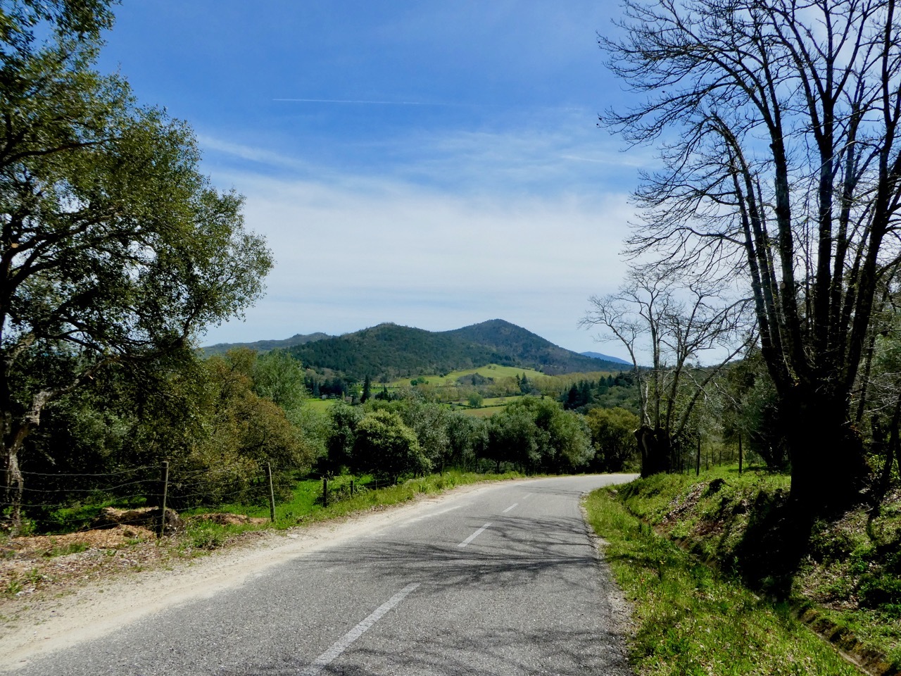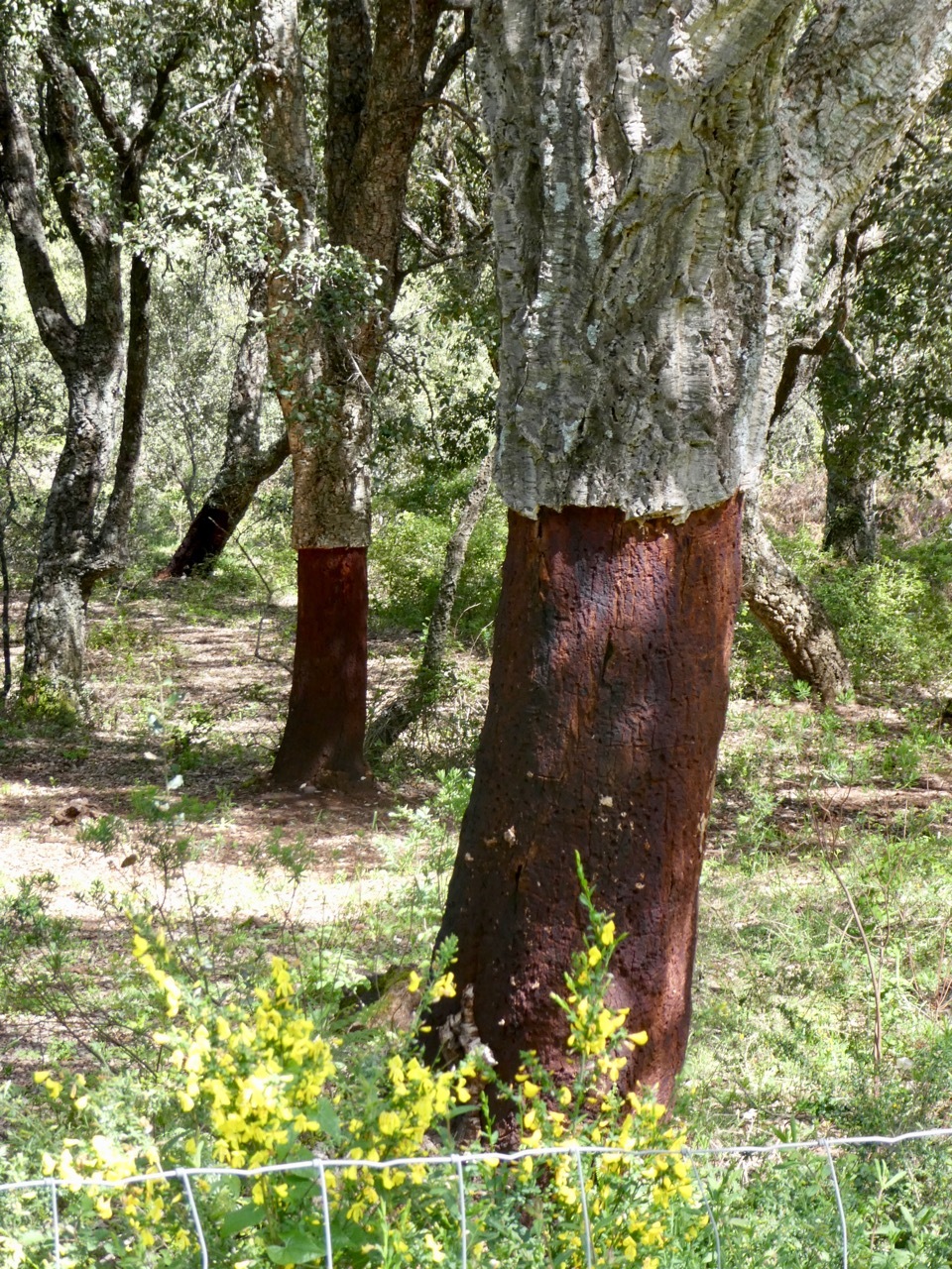 The route continued down pleasant roads, past cork-out stands and fields of sheep. The All Trails description indicated the route was a mix of road and trails, but after 1.3 miles I’d not left paved roads. Frustrated, with the RWGPS paved route, I turned to All Trails and discovered 1) that it was tracking me, and 2) that I was less than half a mile from the trail junction. I soon found the trail sign and was so excited that I just snapped a picture and turned down the trail, not paying too much attention as to what the sign said.