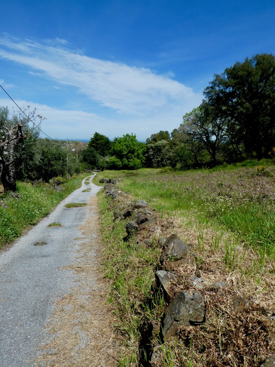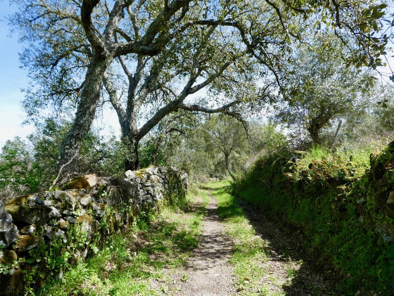 Before setting out, I plotted a route on RWGPS. Not having much experience in using the OSM Outdoor mapping function, I just ask it to plot me a walking route between the two towns. I also downloaded the route from All Trails, but it began in Marvão and I couldn’t figure out how to reverse it. Thus armed with some sketchy routing, I set out – first through the streets on Castelo and then along small roads on the outskirts of town. Along the way I met Charlotte, a young French woman from Colmar who was spending a month exploring the Alentejo by car. She was out for a day hike, and headed off in a different direction soon after we parted.